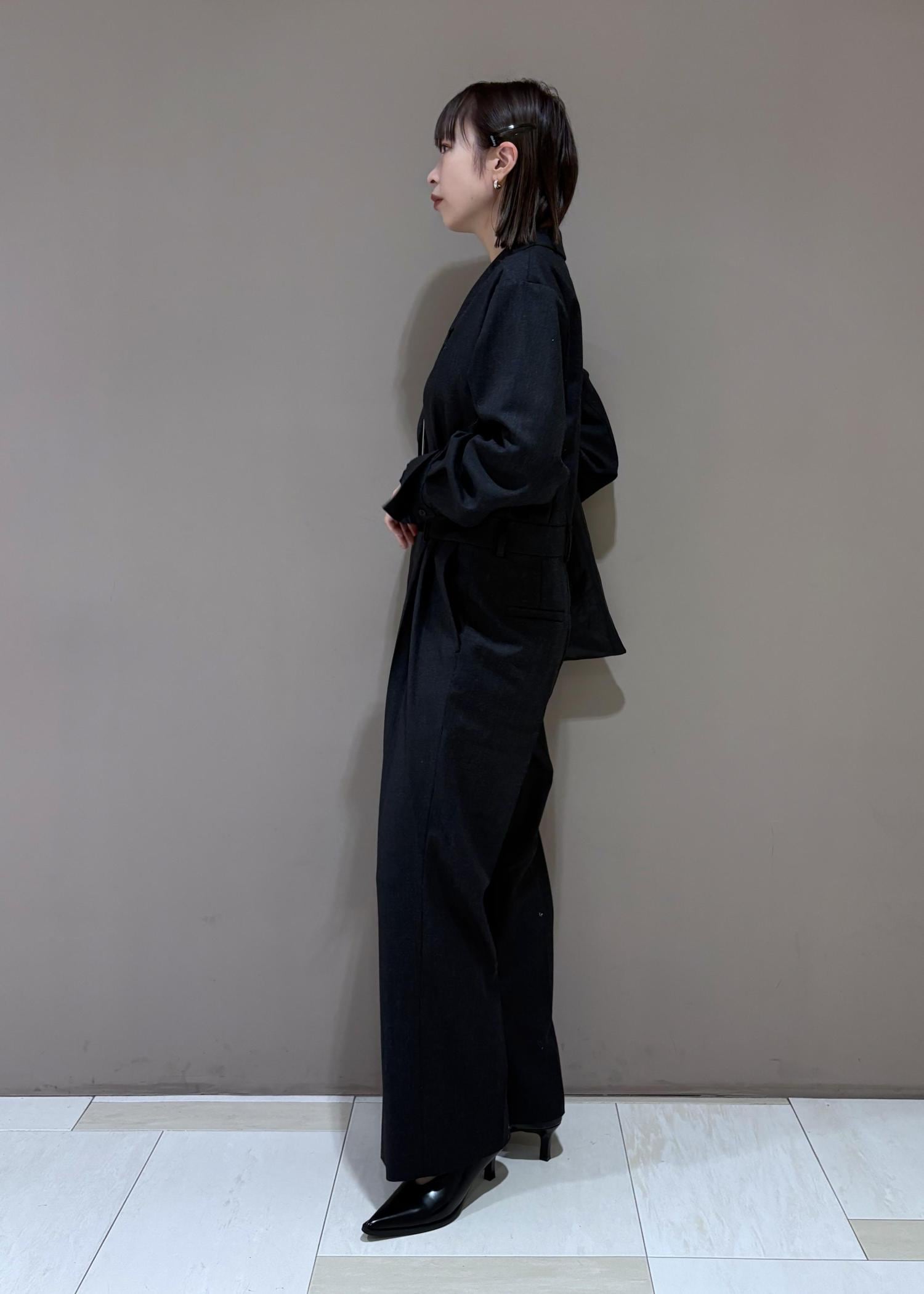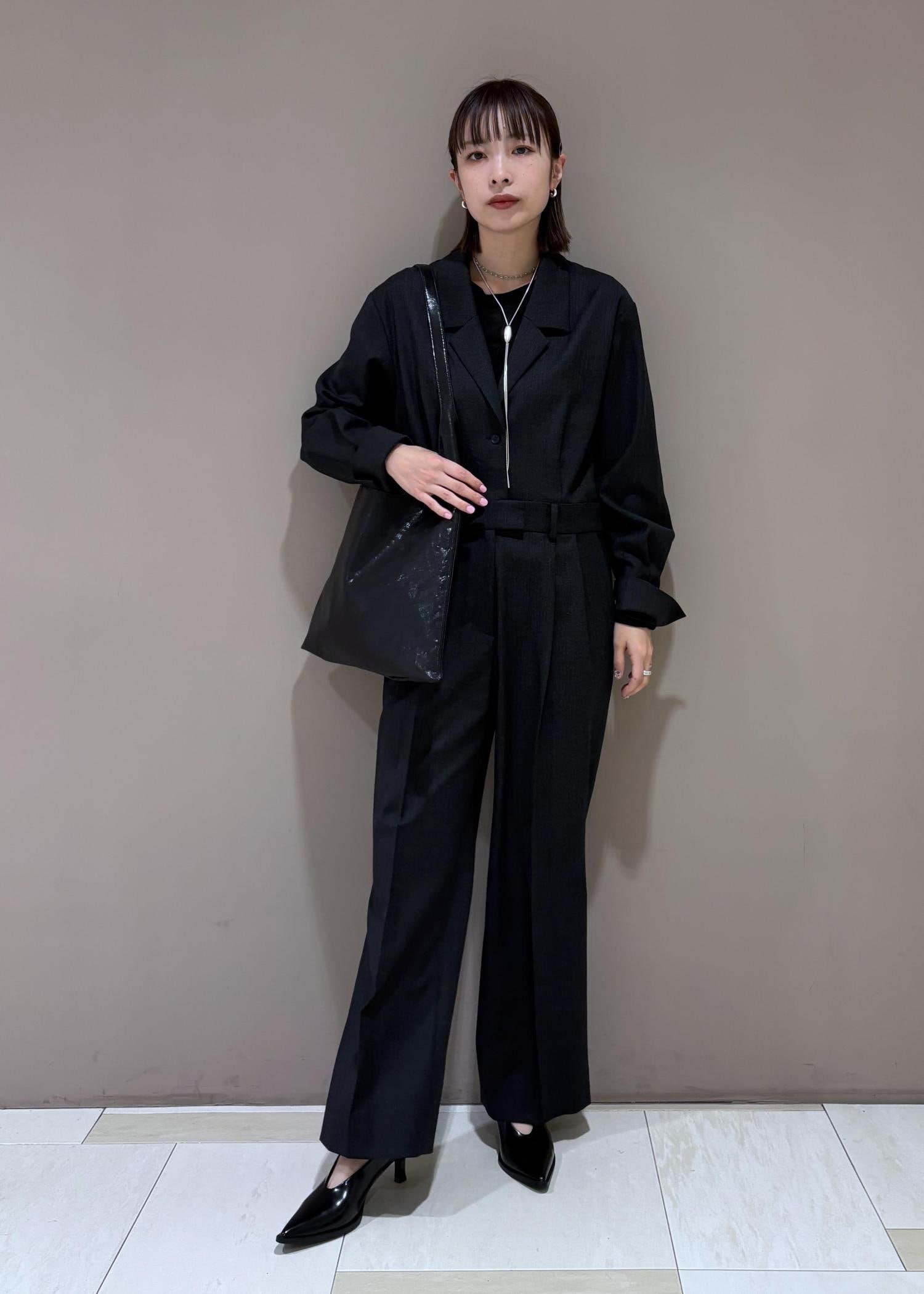 EMOELLE【EMOELLE】テーラードリラクシーオールインワンチャコール / 36¥41,800レビュー162cm、36サイズ着用。