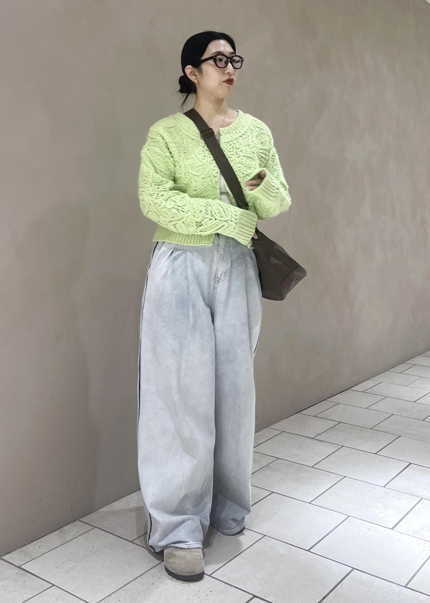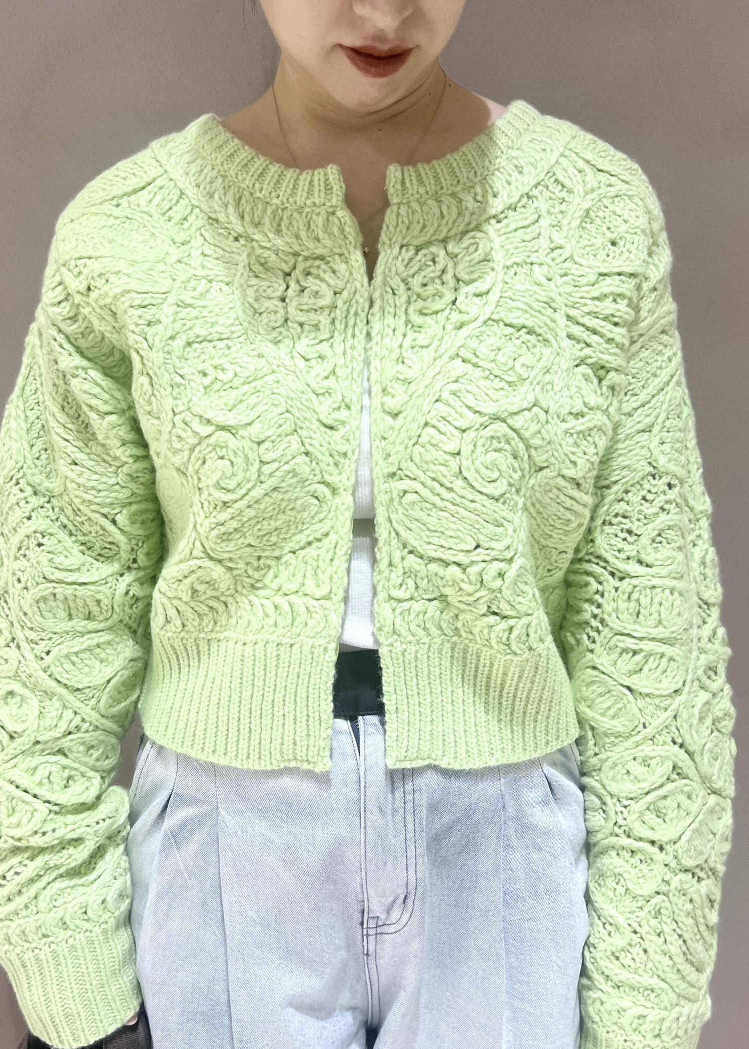 ADAM ET ROPÉ FEMMEコードレースパターンニットカーディガンライトグリーン / F¥23,100レビュー刺繍の柄が可愛いニットカーディガンです♡