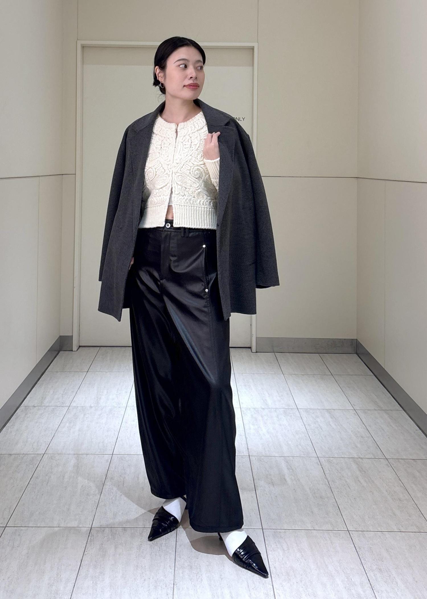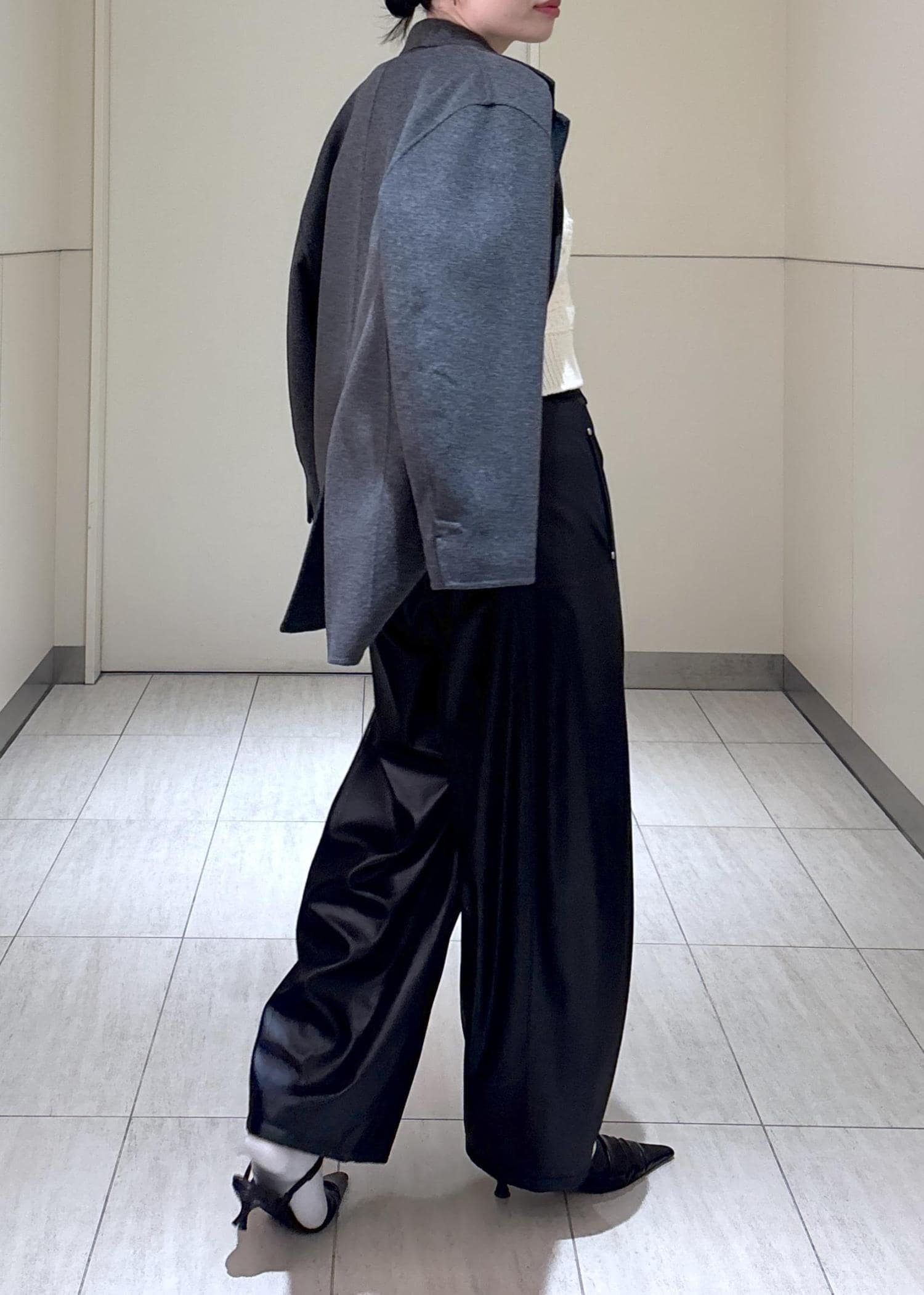 ADAM ET ROPÉ FEMMEグロスボンディングコクーンパンツブラック / 38¥22,000レビュー38サイズで足首が隠れる丈感。