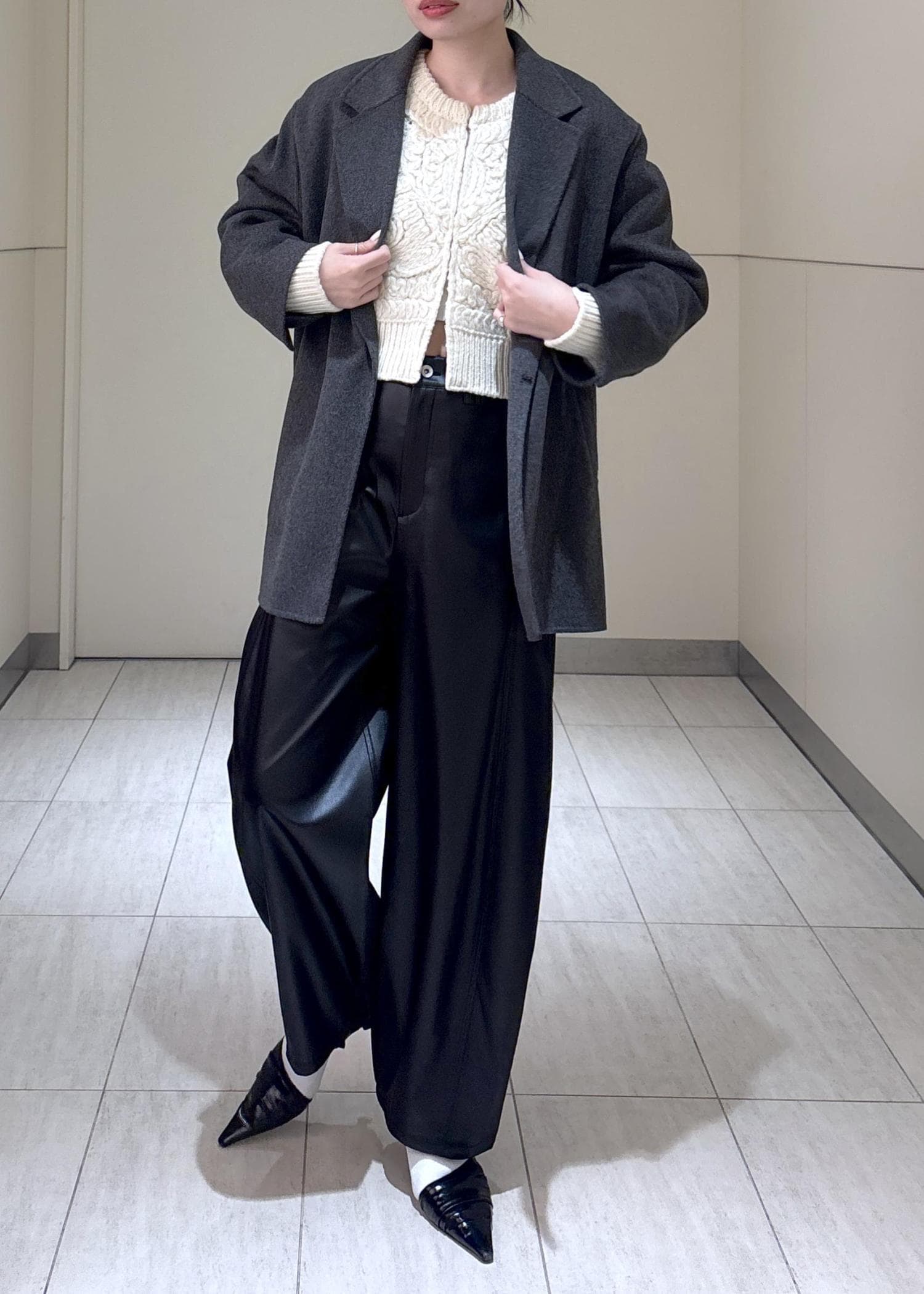 ADAM ET ROPÉ FEMMESuper120’sリバージャケットコートチャコール / F¥55,000レビューフリーサイズでゆったりめ。