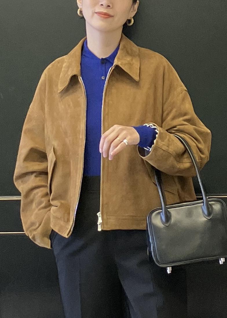 着丈短めな、キャメルカラーのレザーがとても素敵です!