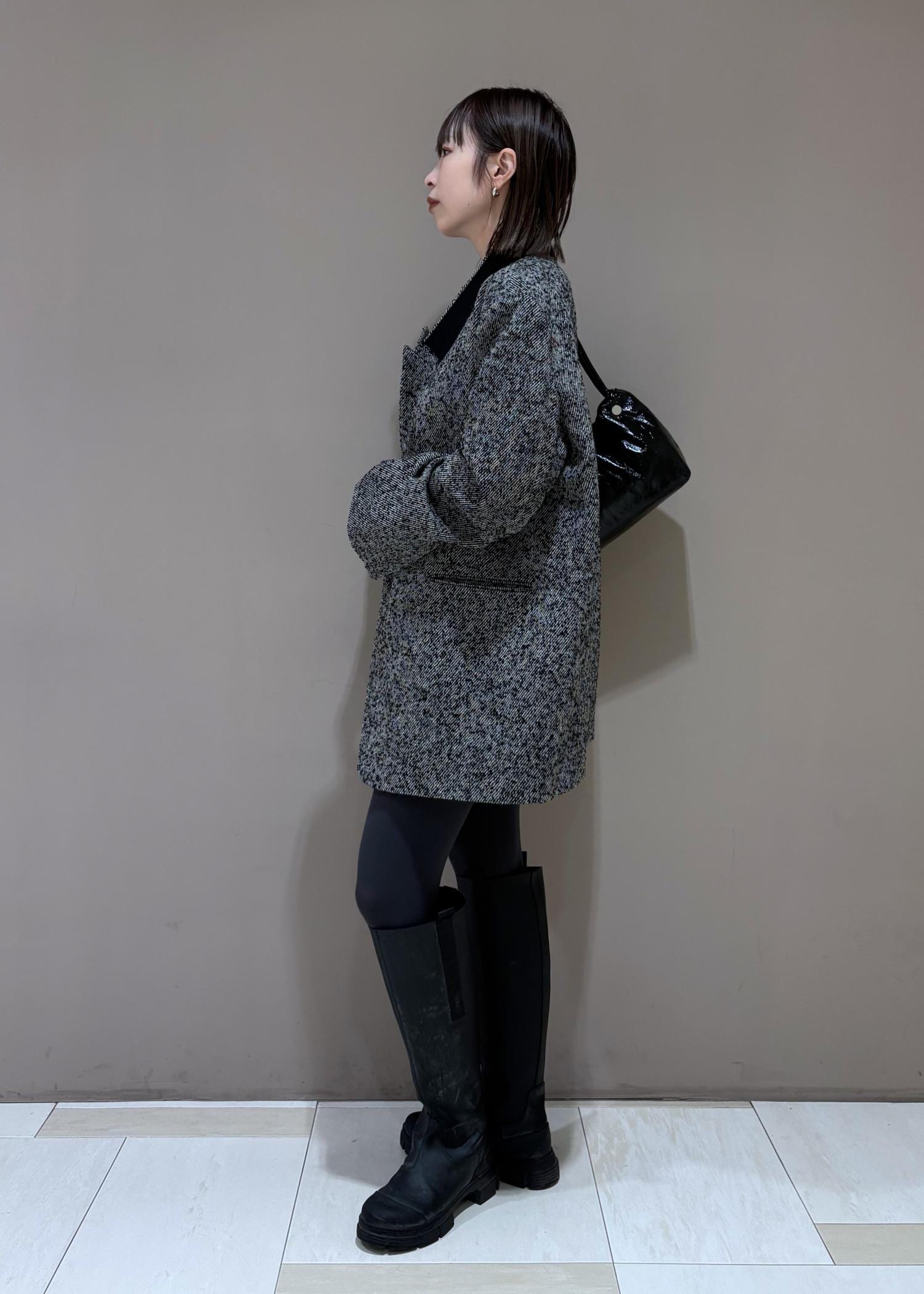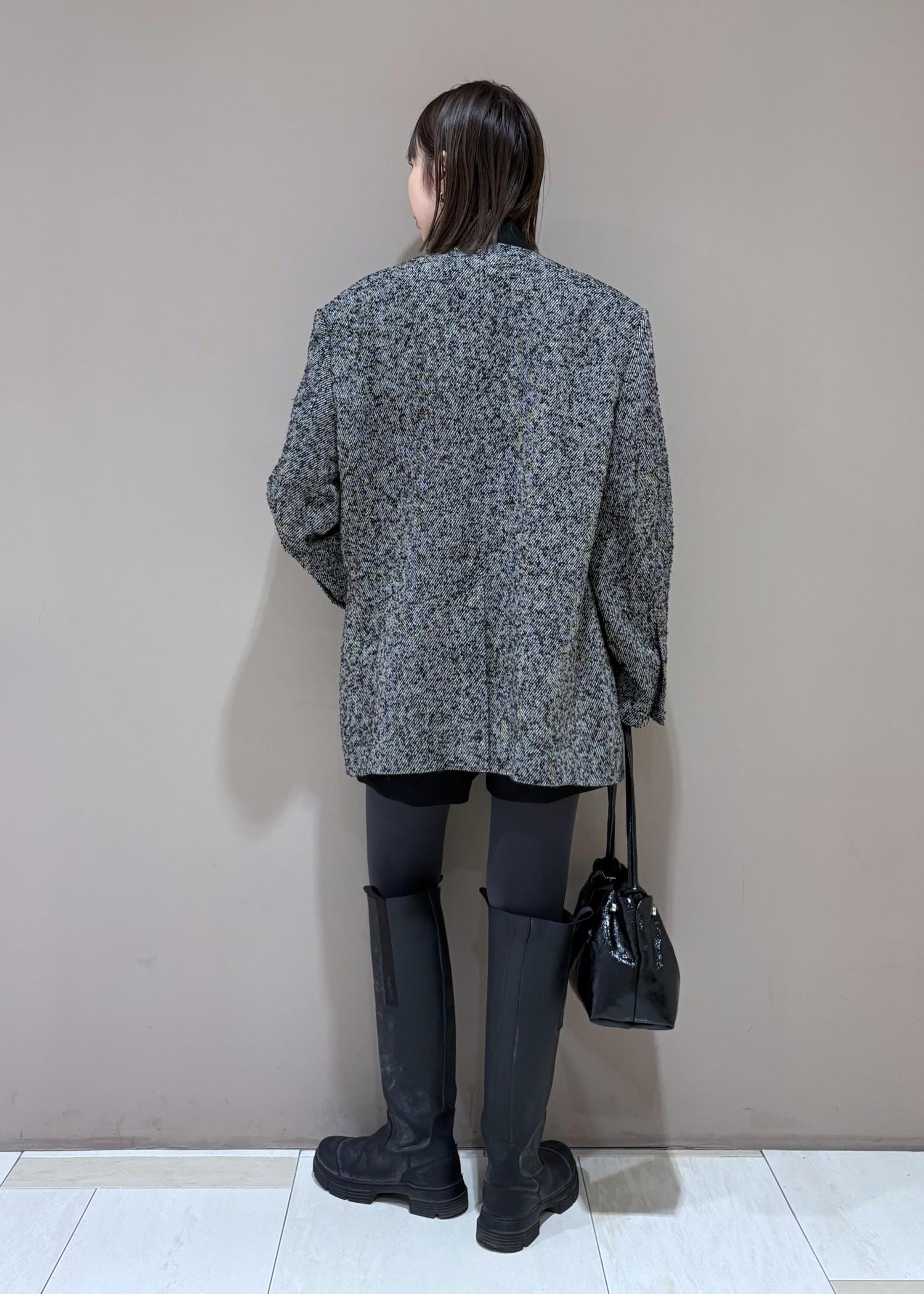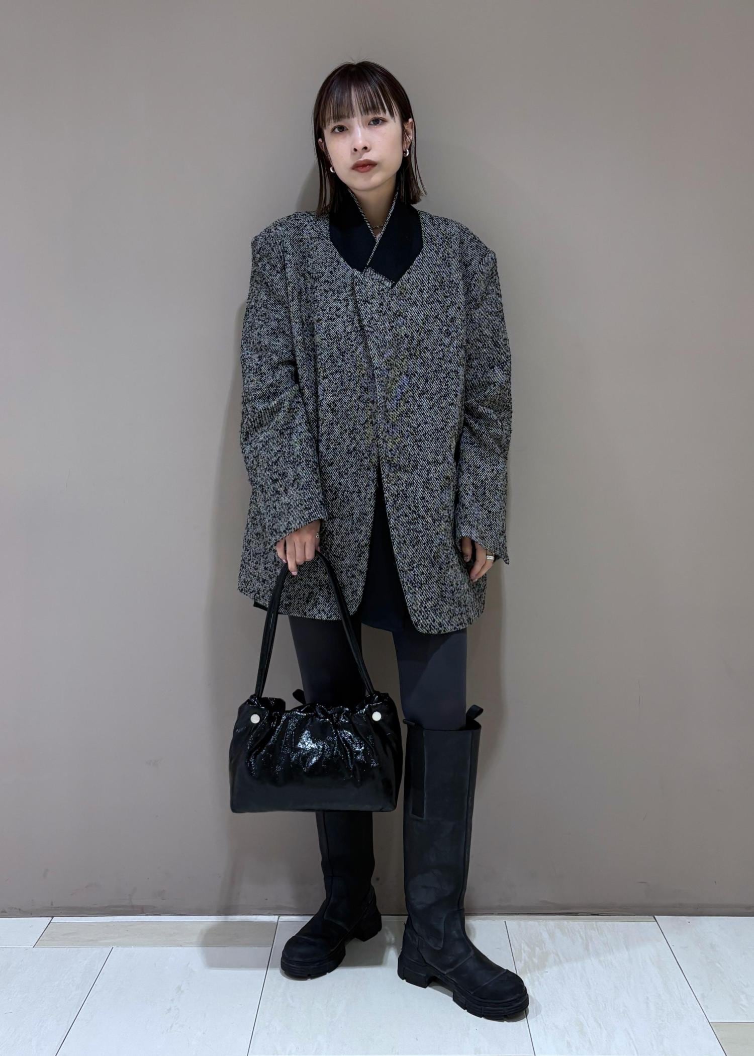 EMOELLE【EMOELLE】オーバーサイズシングルジャケットグレー / 38¥55,000レビュー162cm、38サイズ着用。