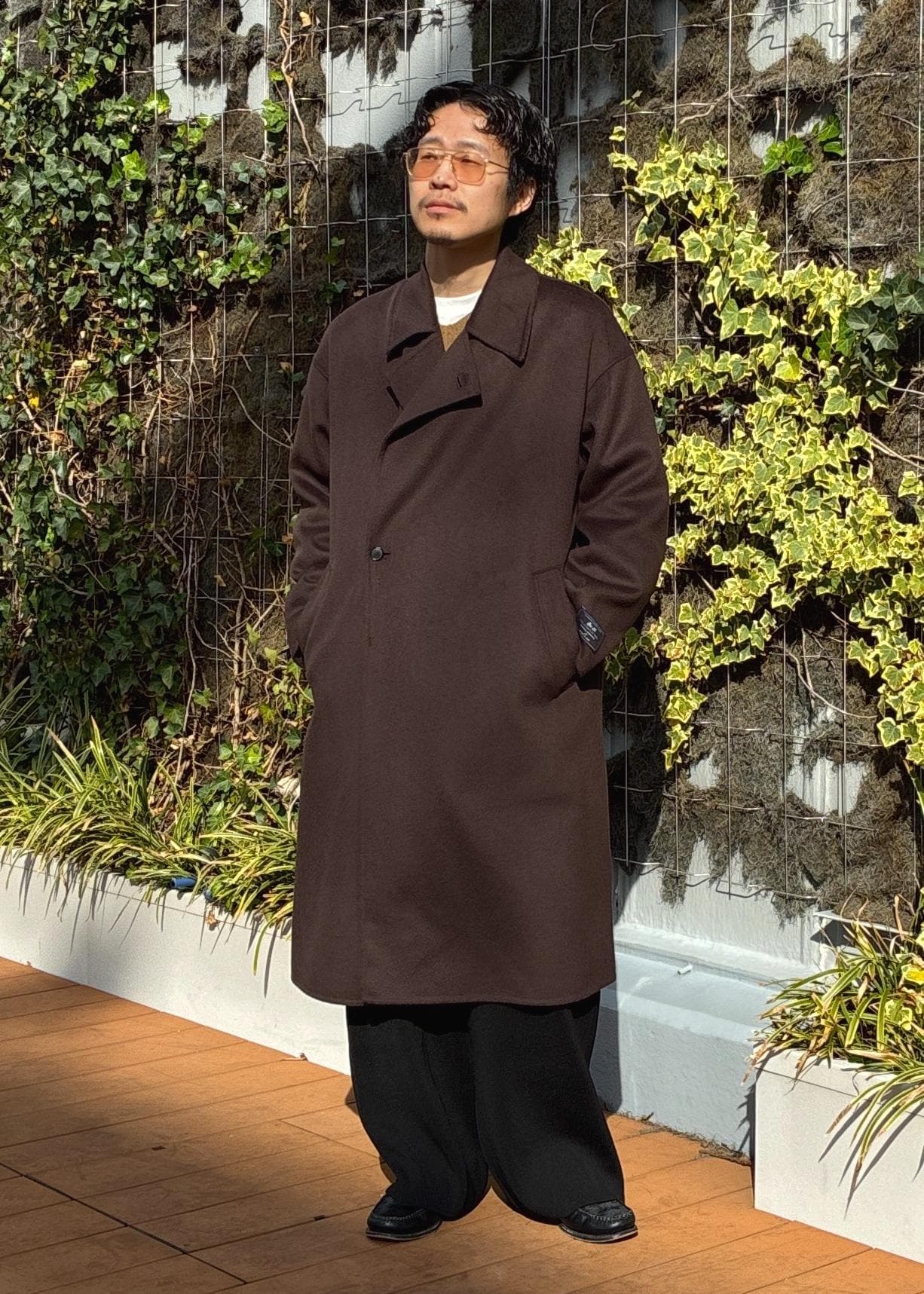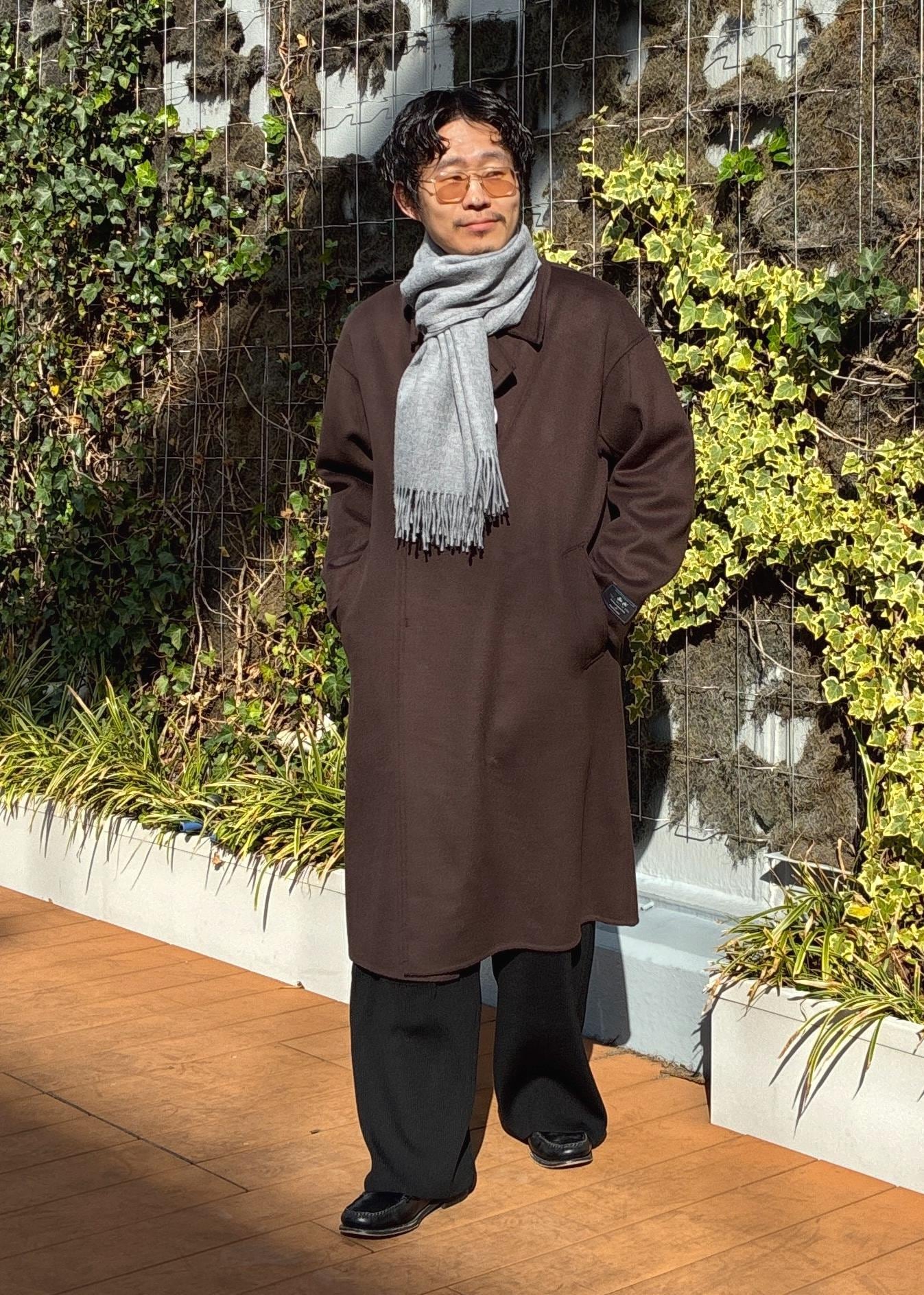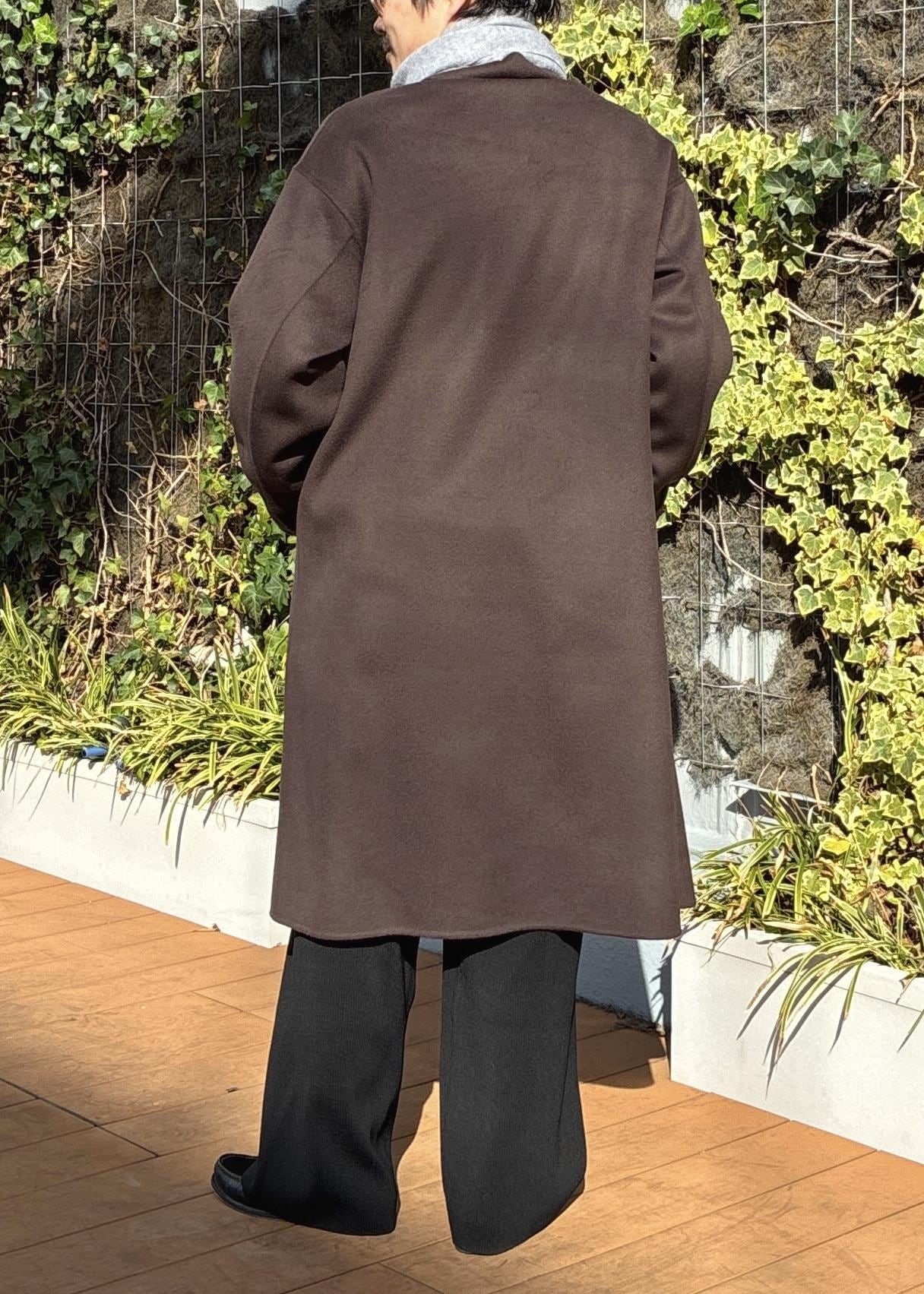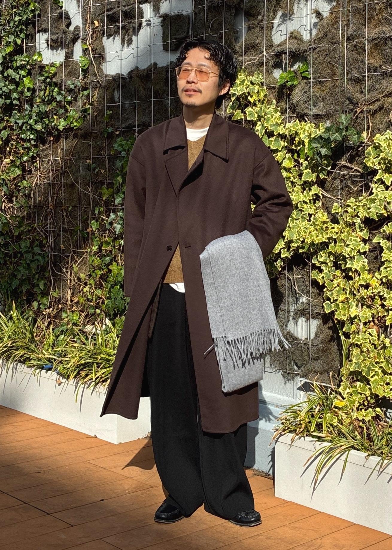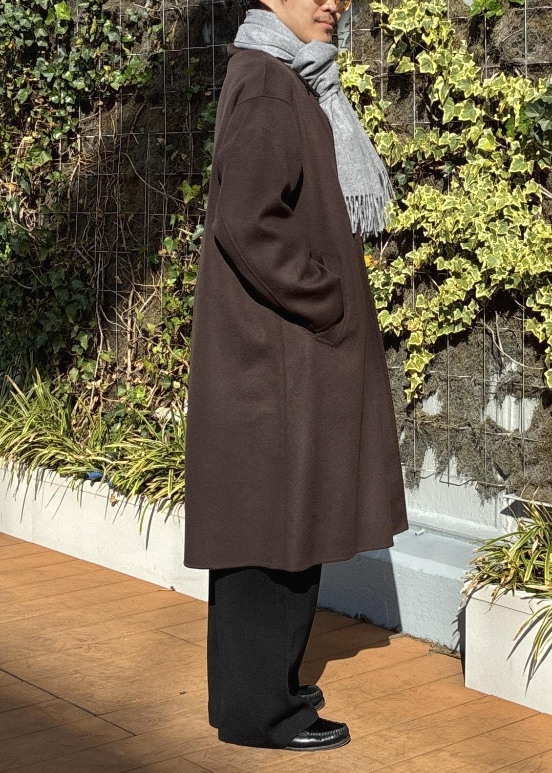 ADAM ET ROPÉ HOMMEメリノウール ダブルフェイス セミダブルコート / マフラー付きダークブラウン / M¥45,980レビューややゆったりめのサイズ感で、僕自身肩幅がありますがMでもかなり余裕を持って着用できました。
