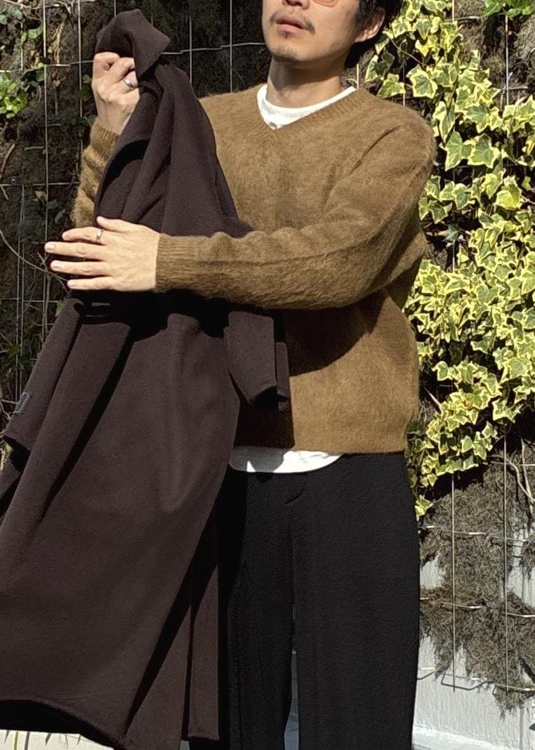 ADAM ET ROPÉ HOMMEモヘアミックス オーバーサイズ Vネックニットキャメル / M¥16,940レビューややゆったりめのサイズ感で、僕自身肩幅がありますがMでも余裕を持って着用できました。