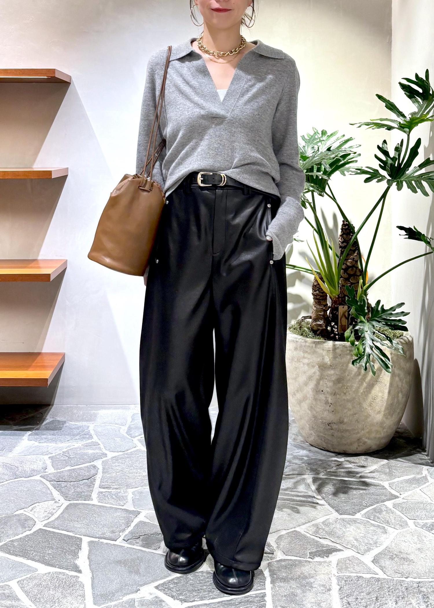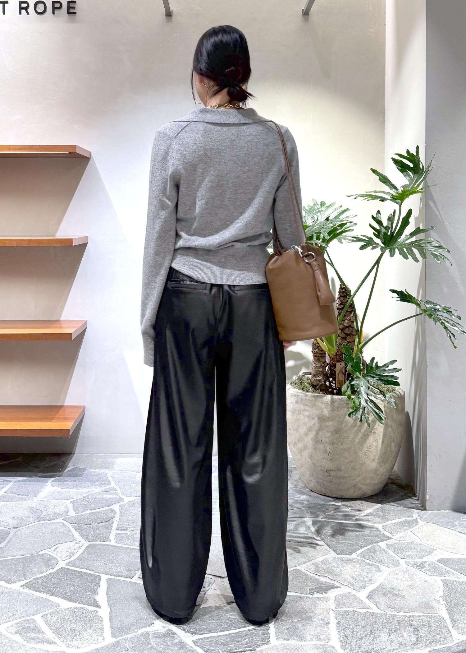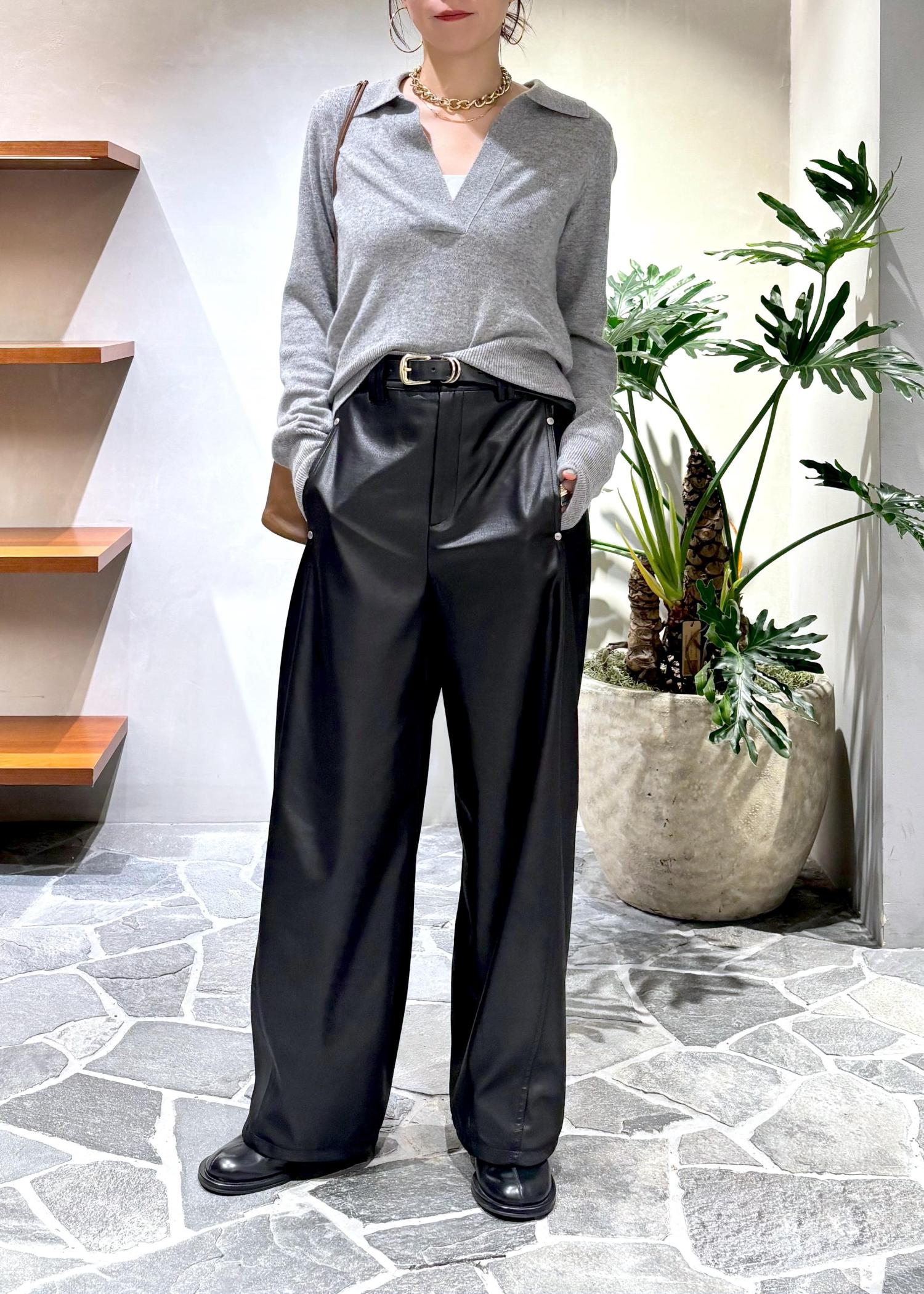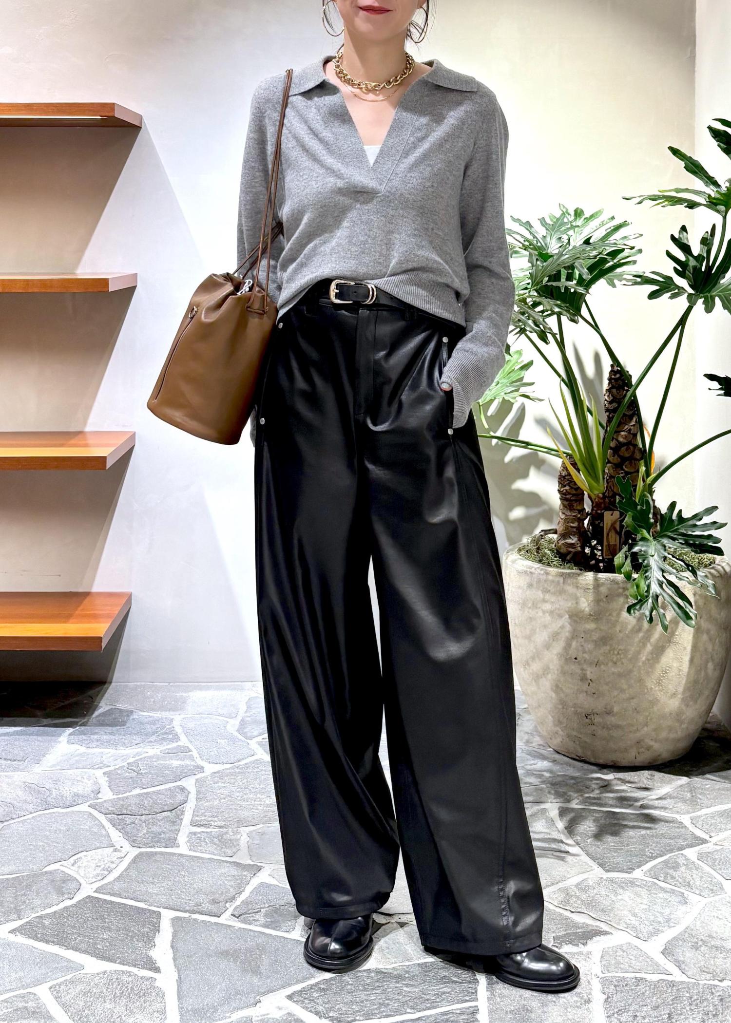 カシミヤのポロニットは首元の抜け感が女性らしさを際立たせてくれるデザイン。