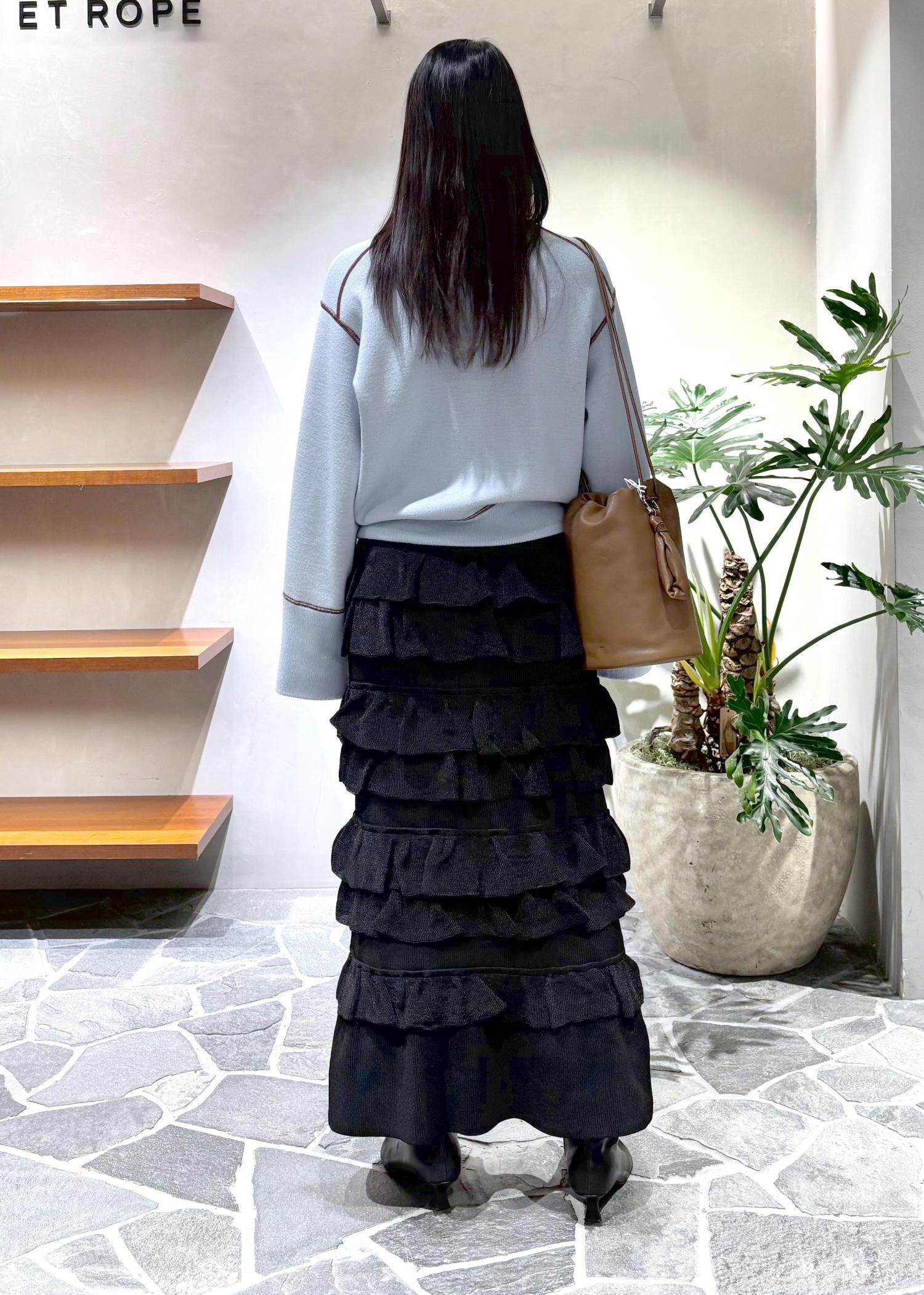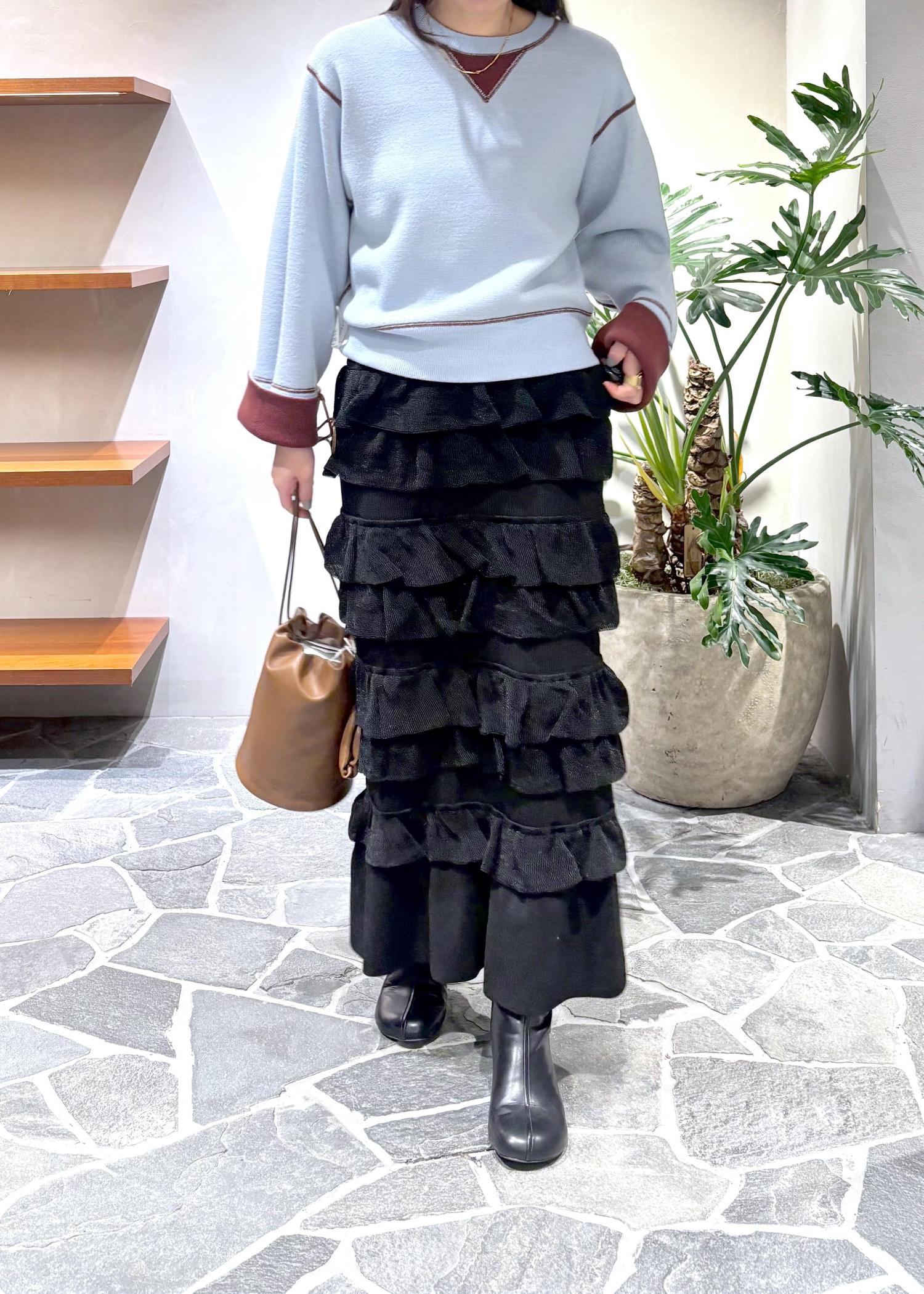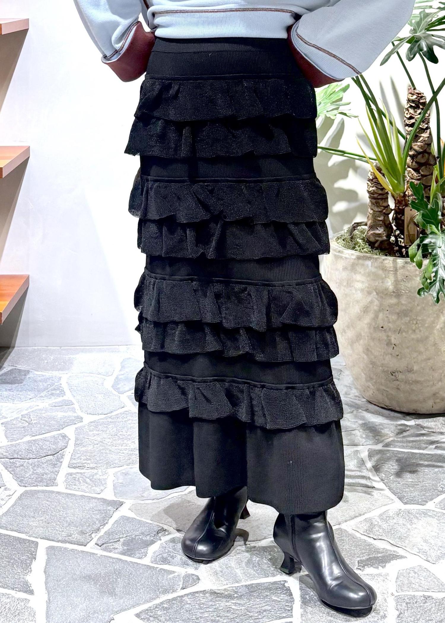 ADAM ET ROPÉ FEMME【サステナブル】フリルニットスカートブラック / F¥19,800レビュー履くと意外とシルエットも拾わず、体型カバーまでしてくれる嬉しいスカートです!