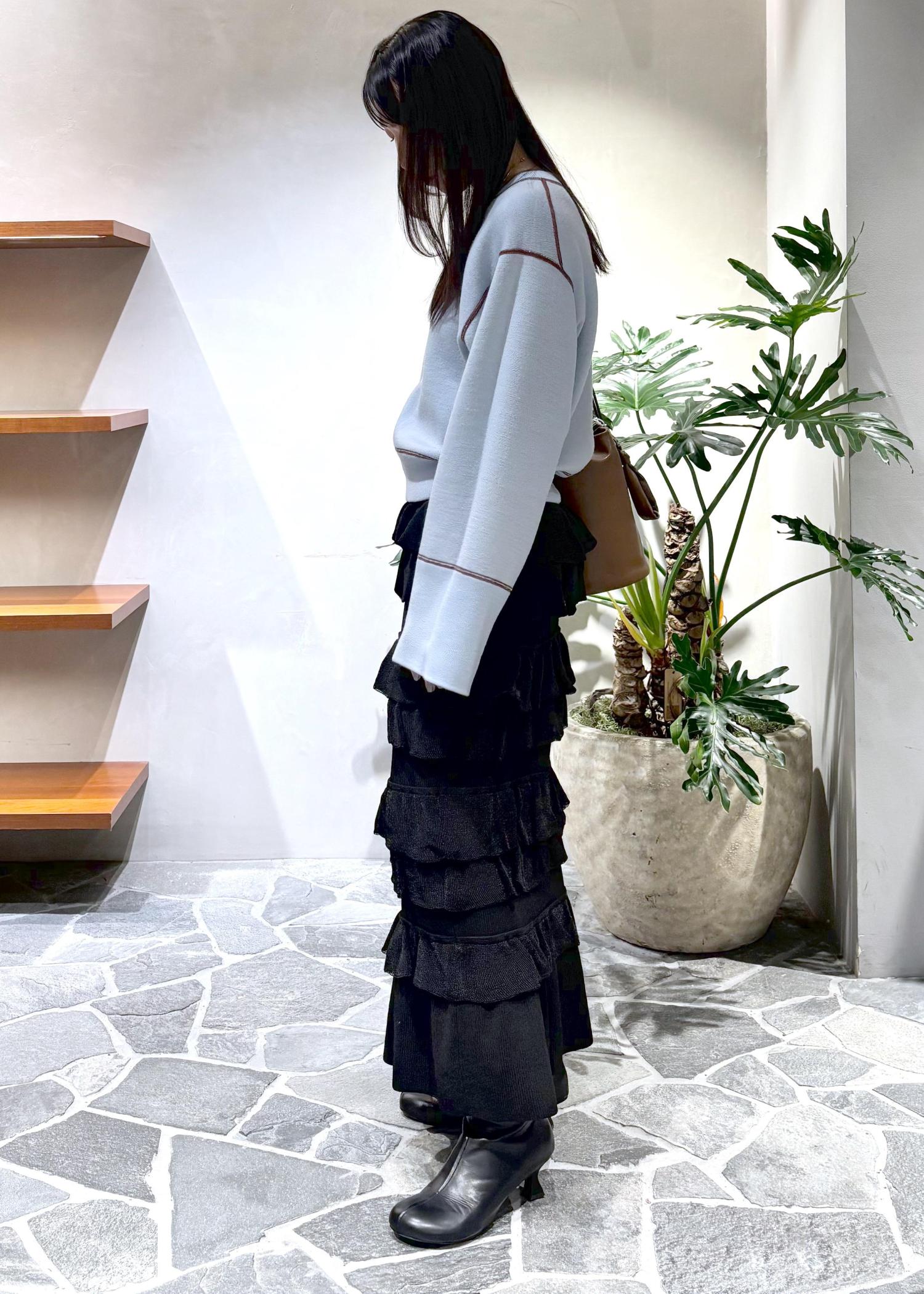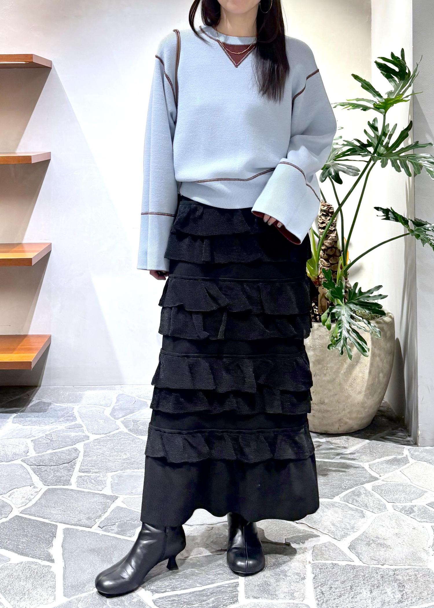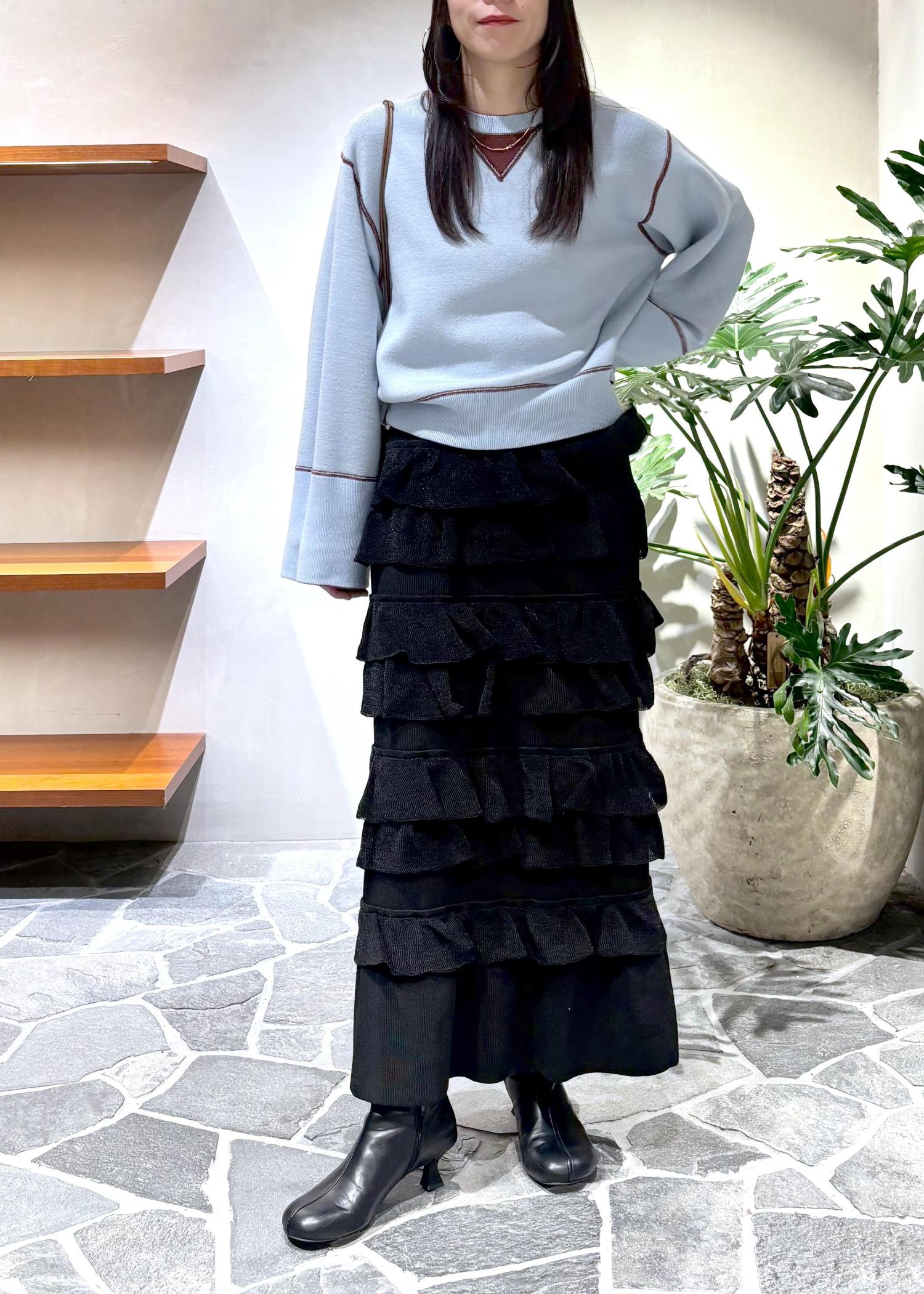ADAM ET ROPÉ FEMME【サステナブル】フリルニットスカートブラック / F¥19,800レビュー履くと意外とシルエットも拾わず、体型カバーまでしてくれる嬉しいスカートです!