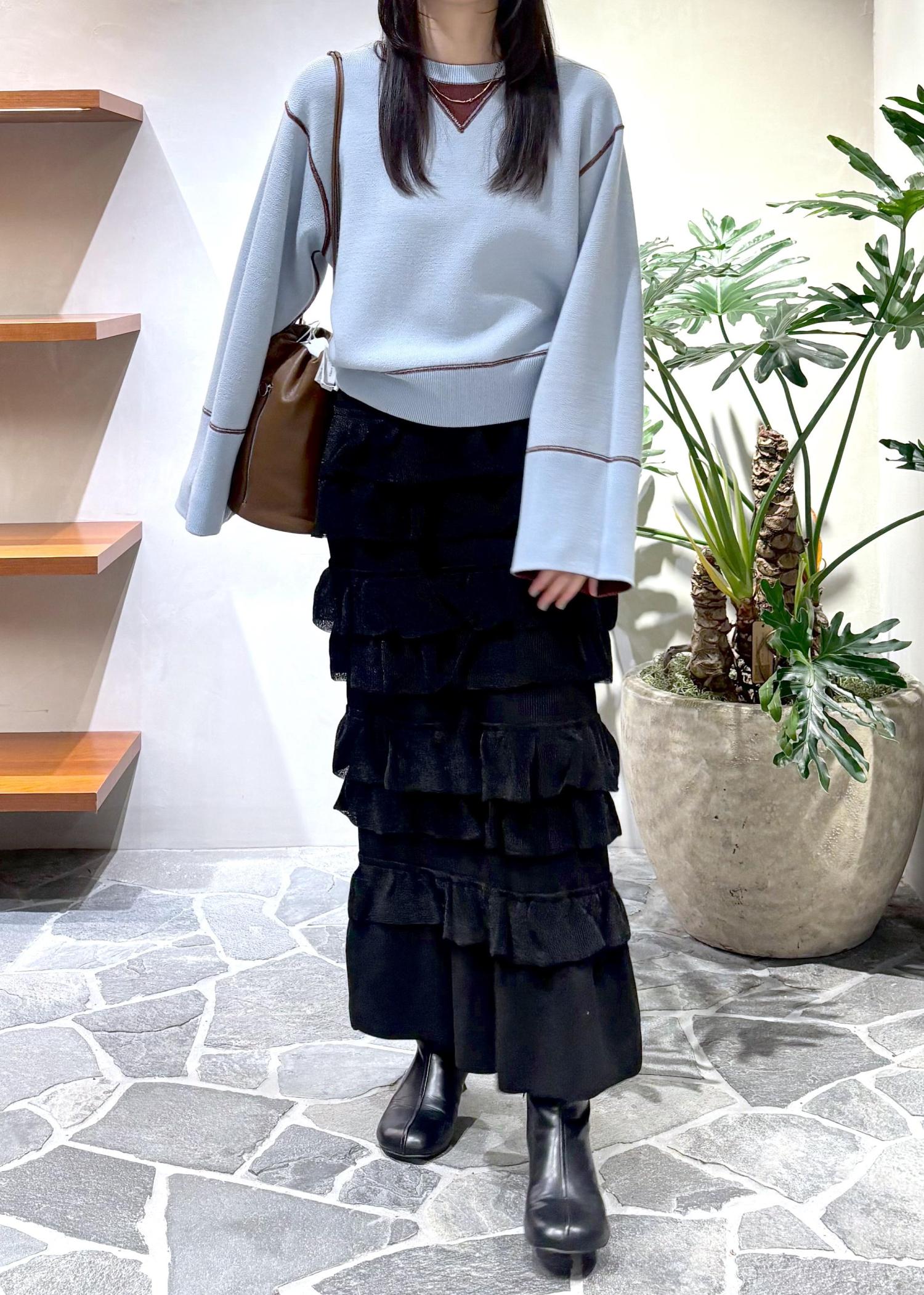 今回はフリルスカートで合わせてカジュアルフェミニンなスタイリングにしました!