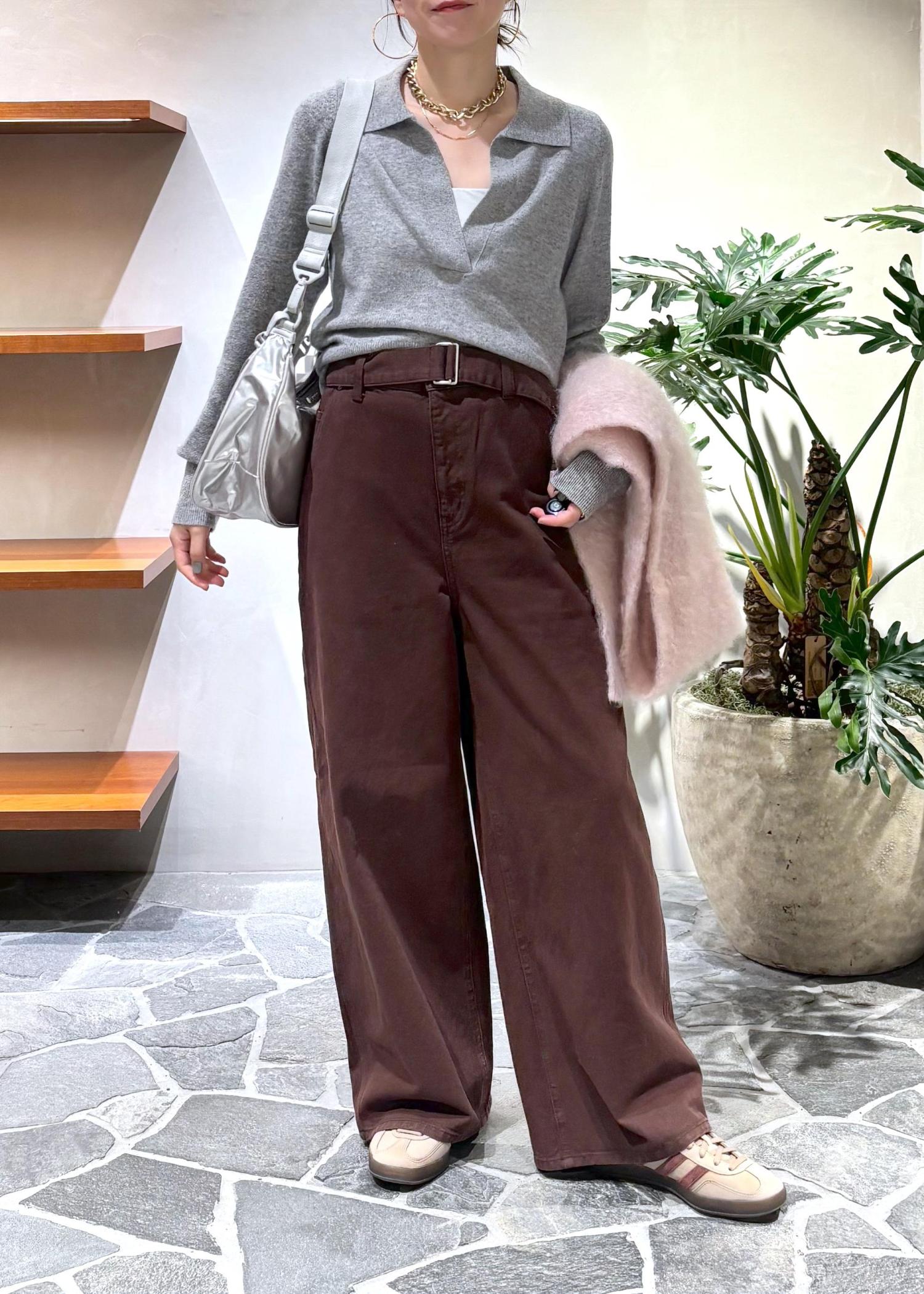 ADAM ET ROPÉ FEMMEペインターワイドパンツダークブラウン / 36¥20,900レビュー163センチで36サイズを着用。ペタンコのスニーカーでも履ける着丈でしたが、小柄な方にはやや長めかもしれません。