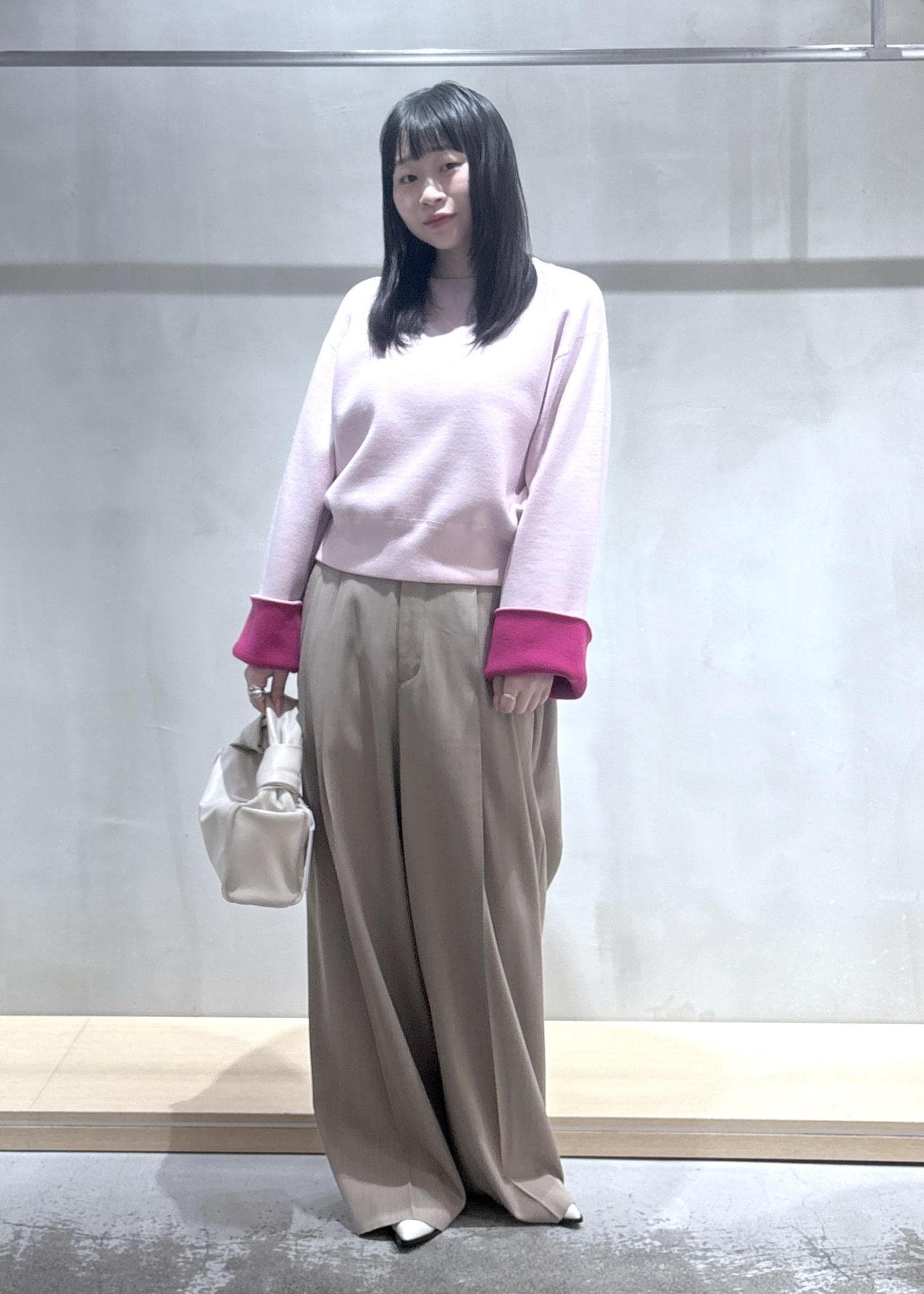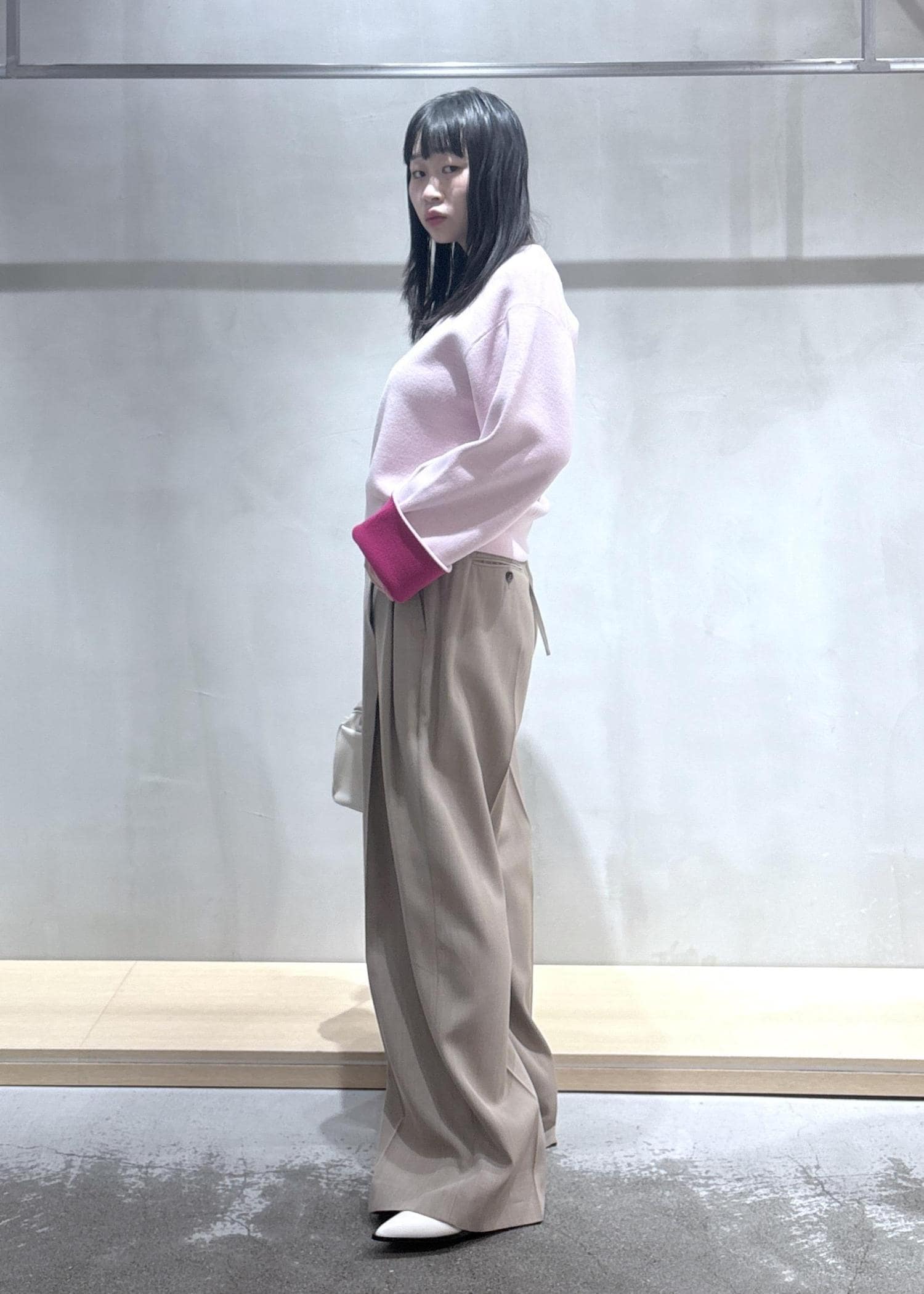 ADAM ET ROPÉ FEMMEバイカラーリバーシブルニットプルオーバーピンク / F¥18,700レビューちくちく感がなく着心地もいい!丈感も短すぎないのでアウトしてもボトムスとのバランスが取れるのも嬉しいポイントです!