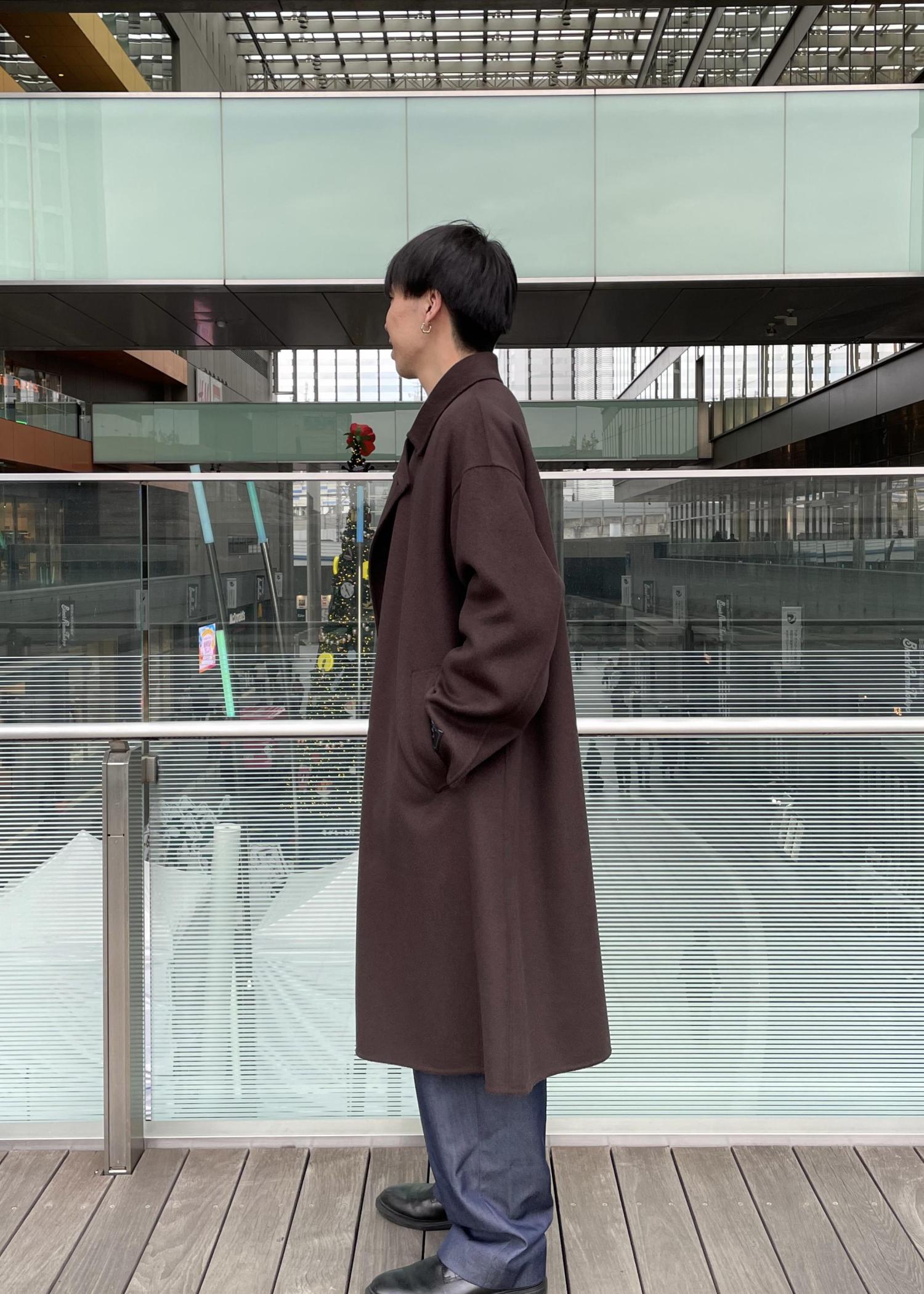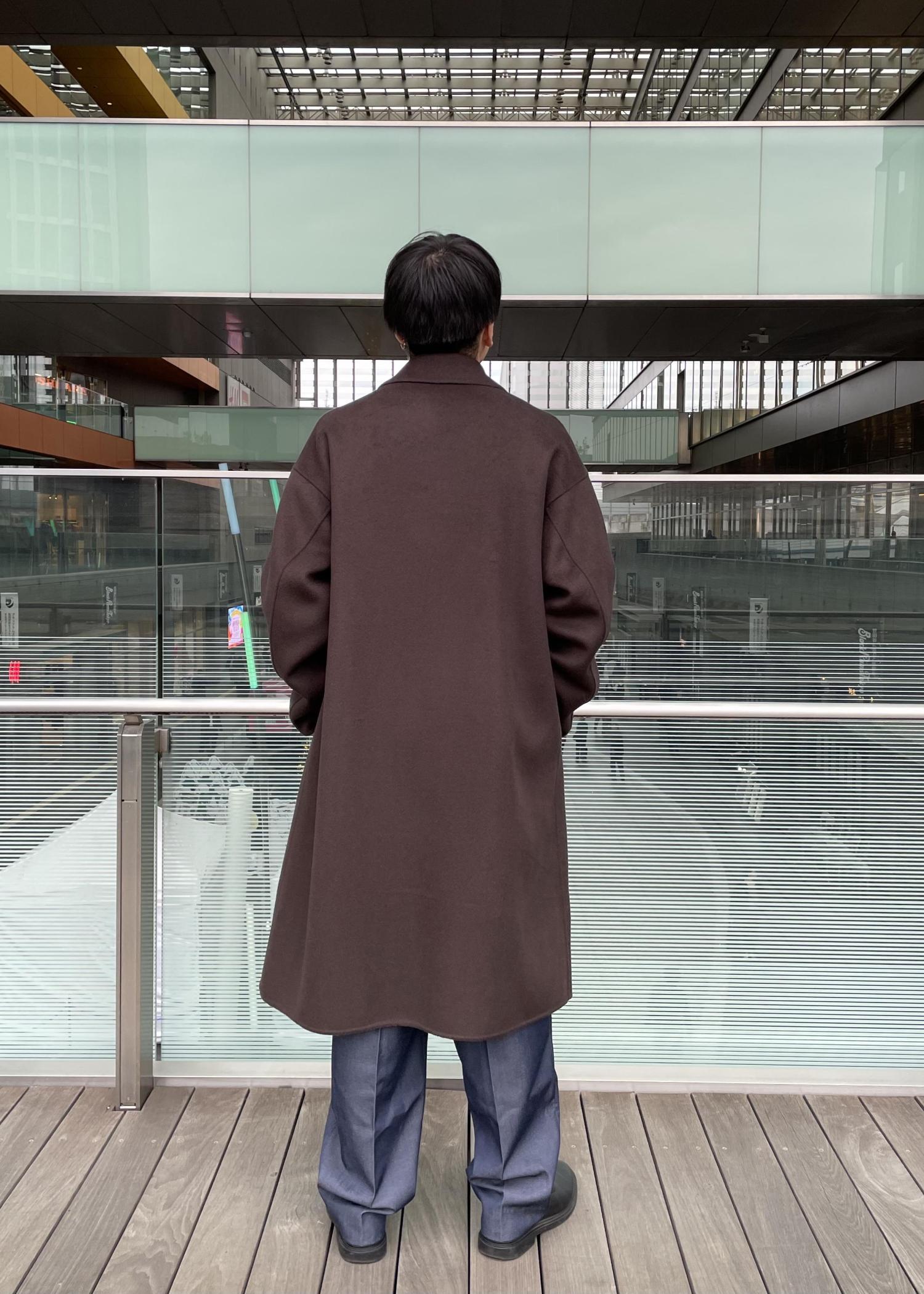 ADAM ET ROPÉ HOMMEメリノウール ダブルフェイス セミダブルコート / マフラー付きダークブラウン / M¥45,980