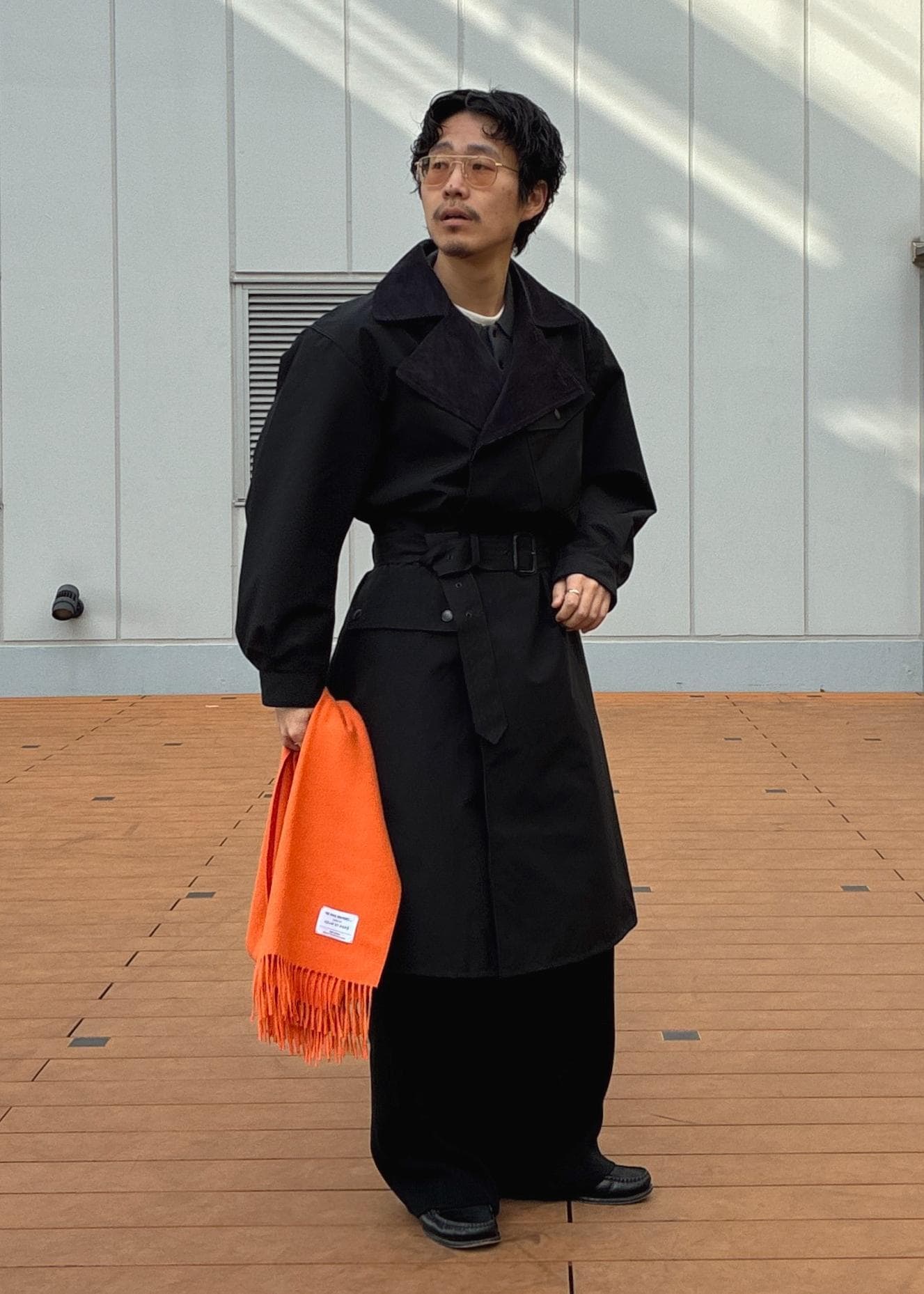 この渋み満載な風合いがたまらなくかっこよくありながら、マフラーで程よく柔らかさをプラスしてあげるバランスが個人的にはかなり好みです◎