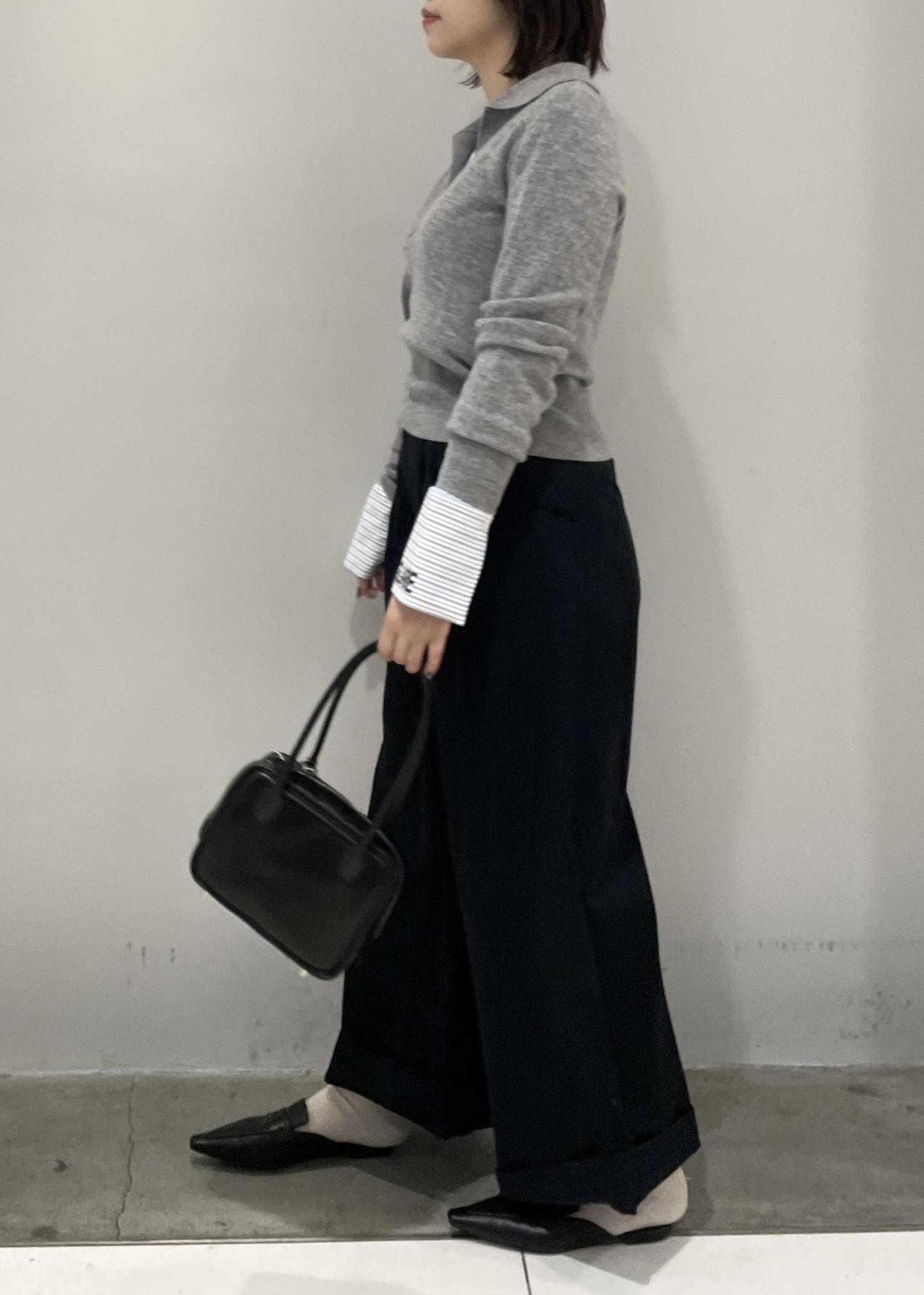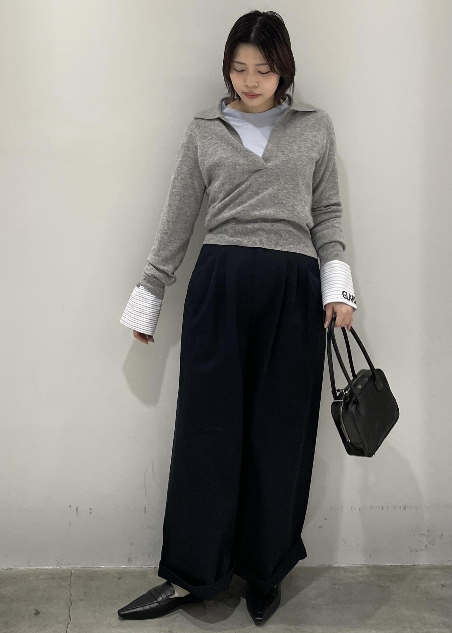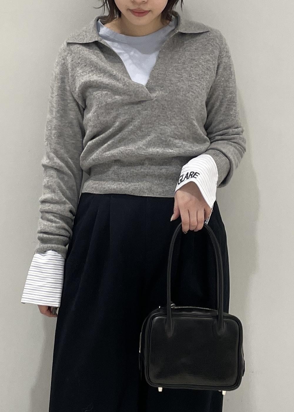 ADAM ET ROPÉ FEMMEカシミヤポロニットグレー / F¥29,700レビュー薄手のカシミヤニットで、中に着込んでいただくタイプのお洋服になります。首元が開いているのですっきり着られるのが魅力!