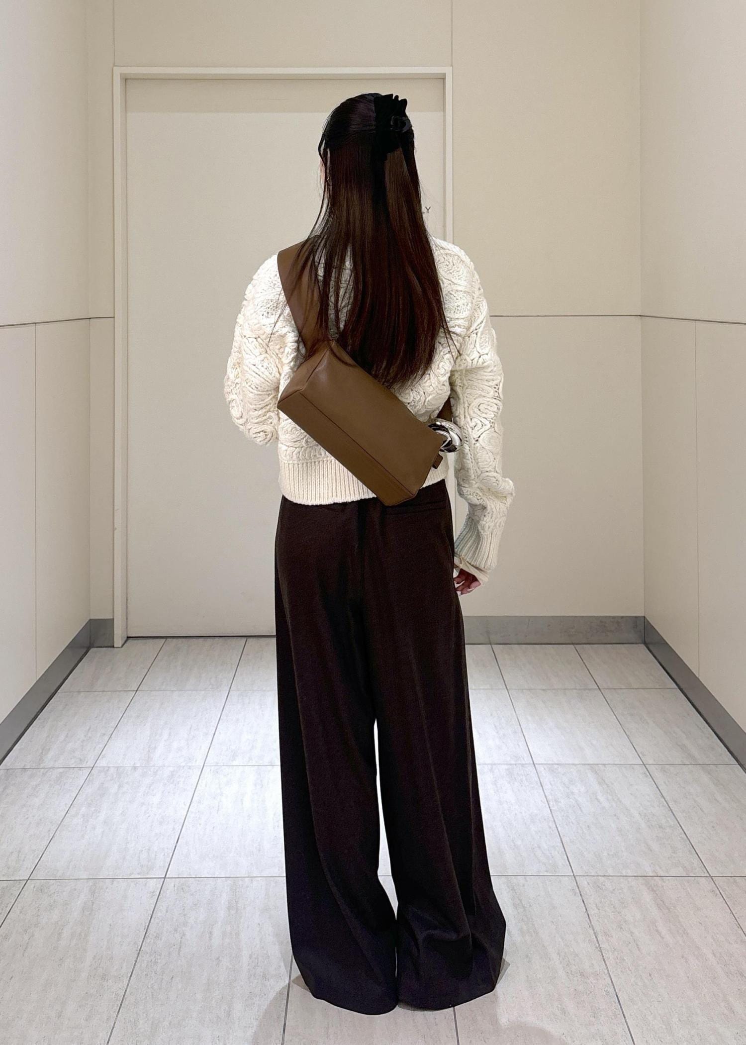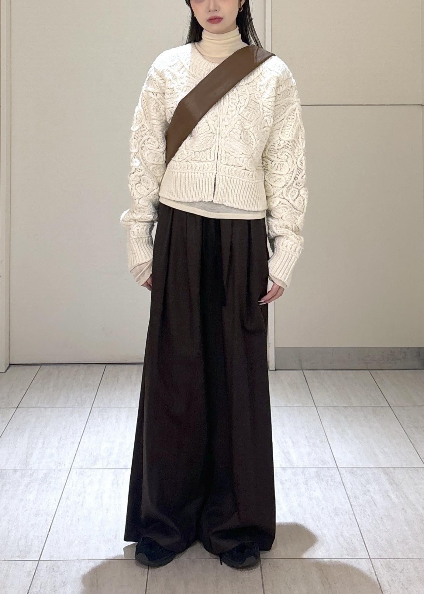 秋冬感の出るウール素材なので、ニット類との相性も抜群です! -