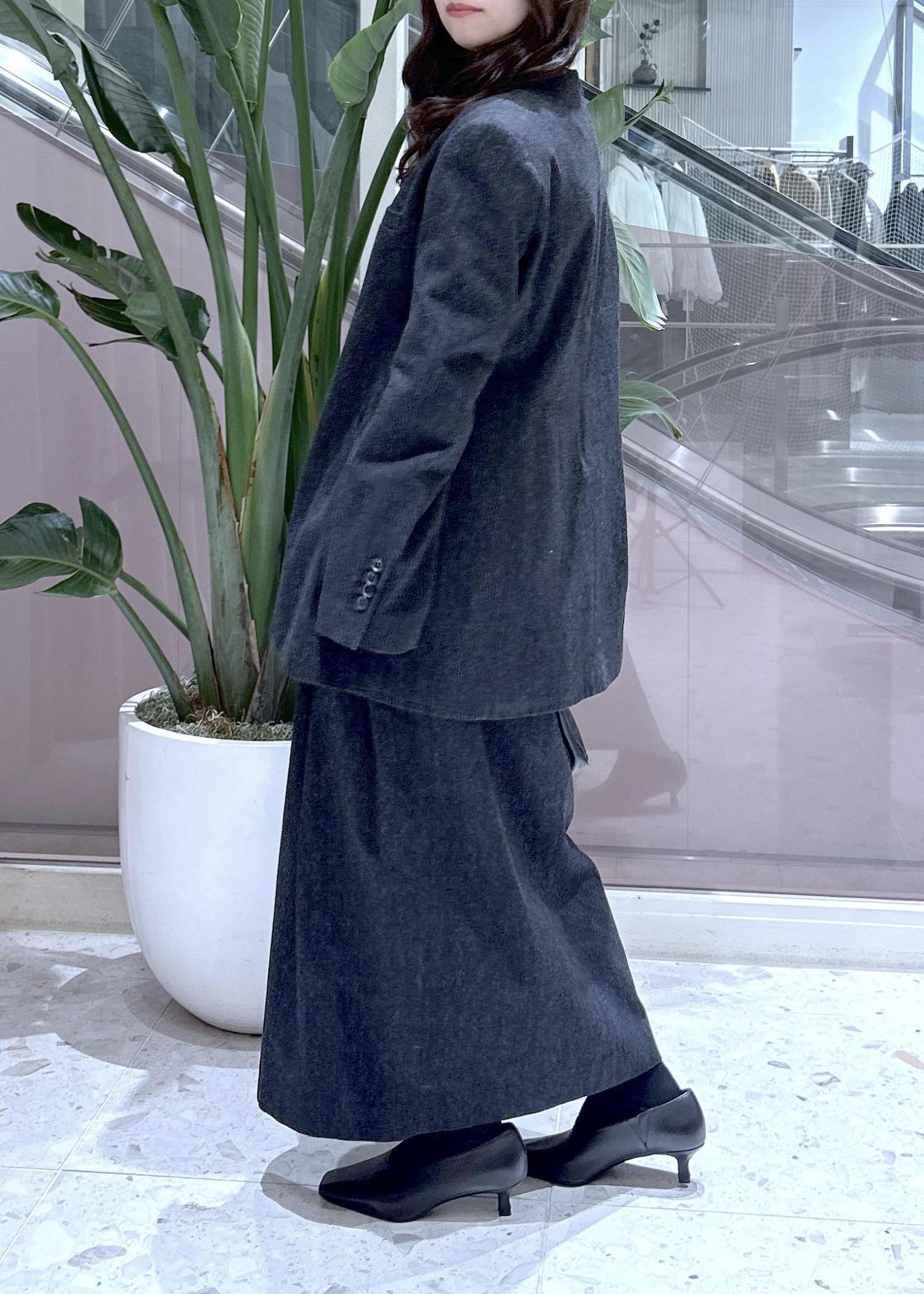 EMOELLE【EMOELLE】ウールコットン2タックスカートチャコール / 36¥29,700レビューとにかく形が可愛いです!ハイウエストなので足長効果もあります♪前スリットですが歩く際もそこまで足が見え過ぎないので安心して着用頂けます!