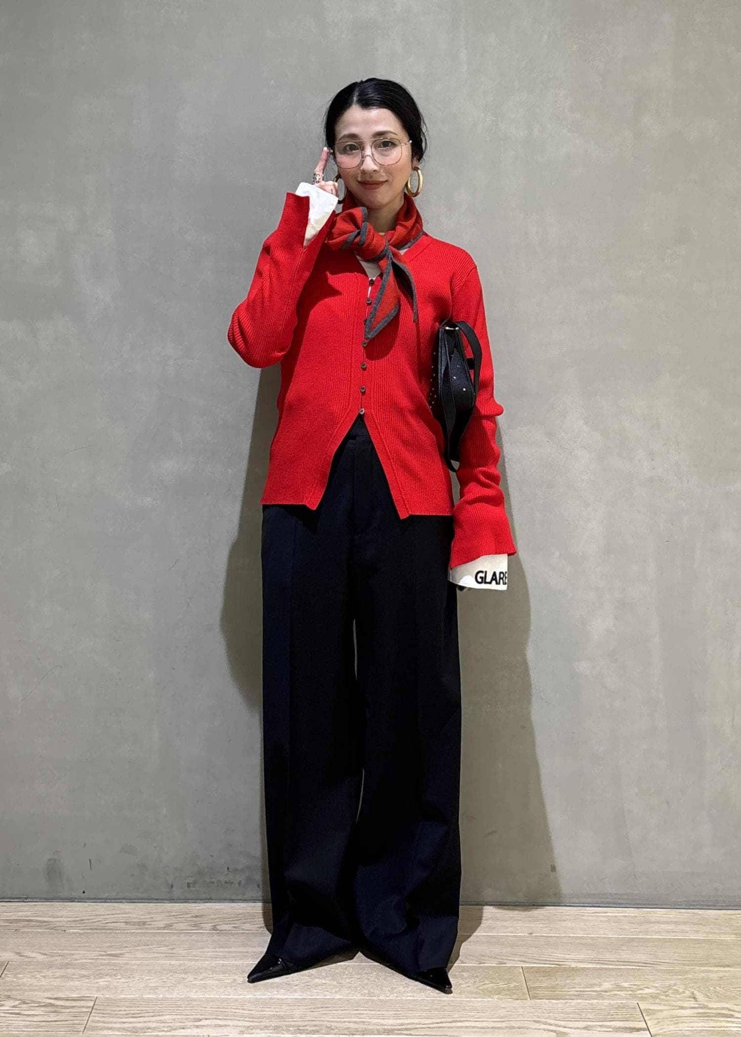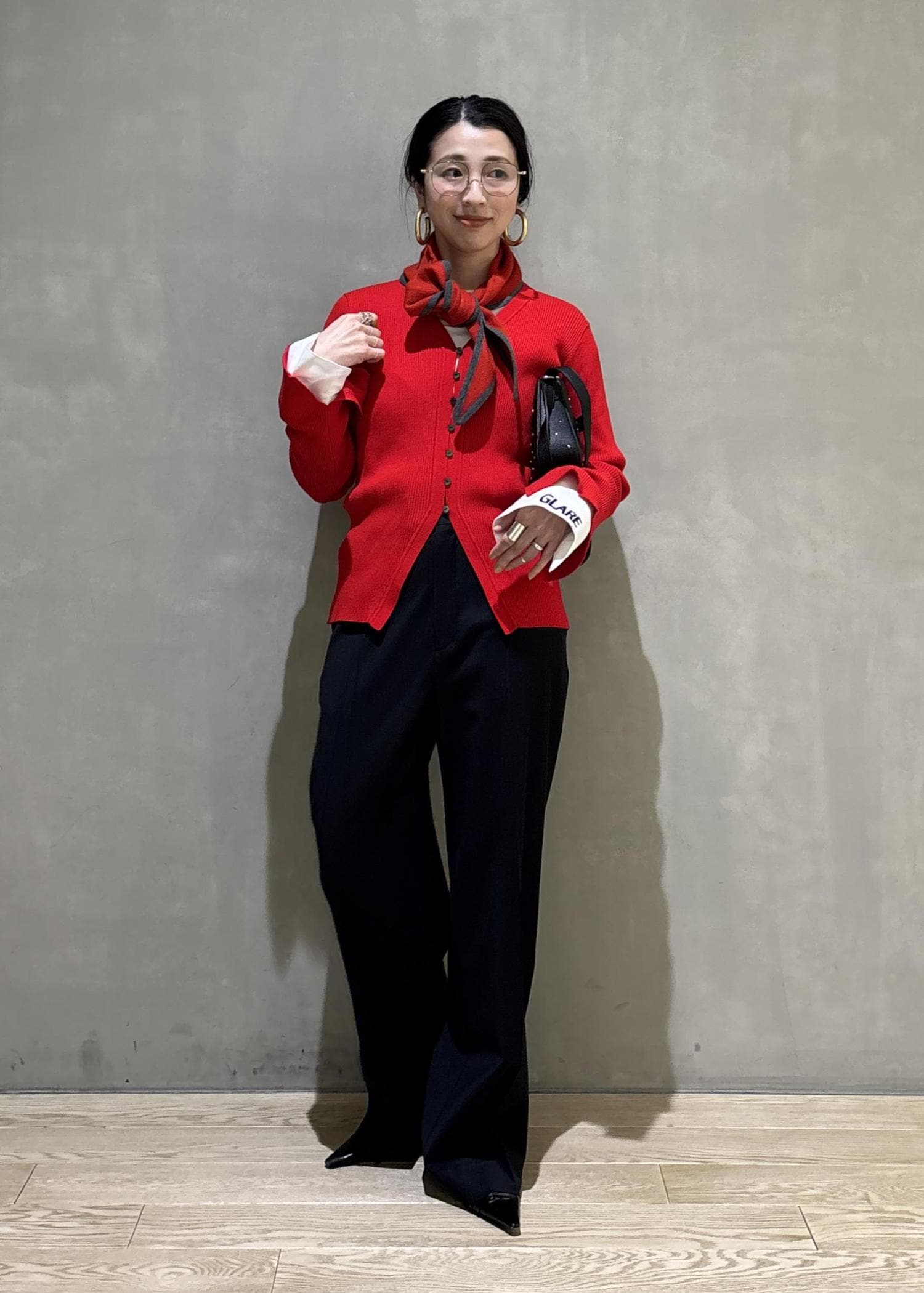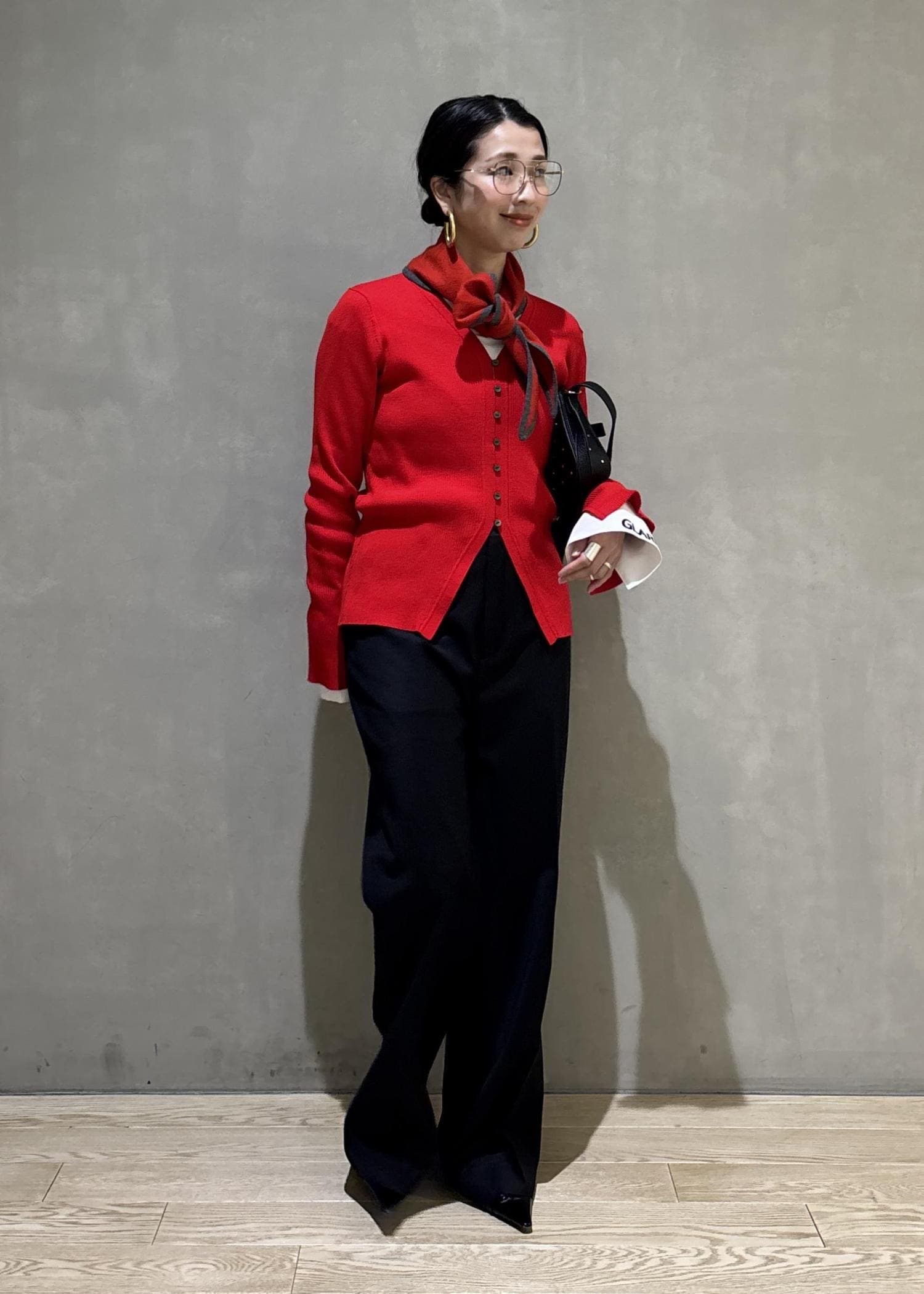 sainuuのストールもアクセントに。赤を貴重にクラシカルにまとめてます。