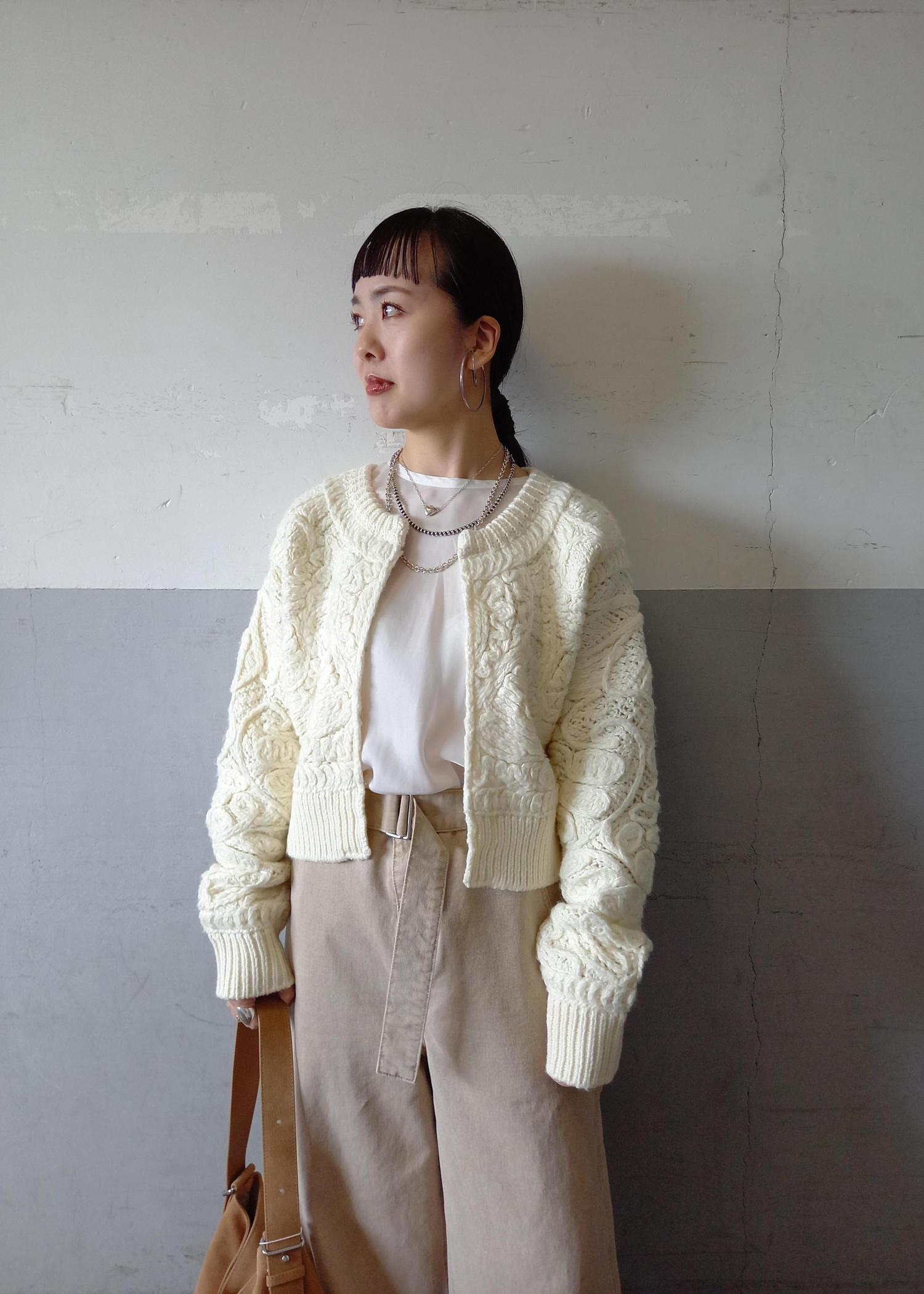ADAM ET ROPÉ FEMMEコードレースパターンニットカーディガンオフホワイト / F¥23,100レビューコードレースが雰囲気のある一着◎シンプルに着るだけで映えます。