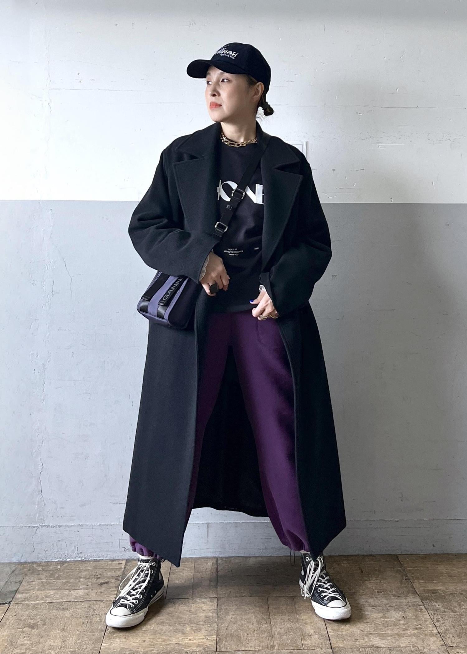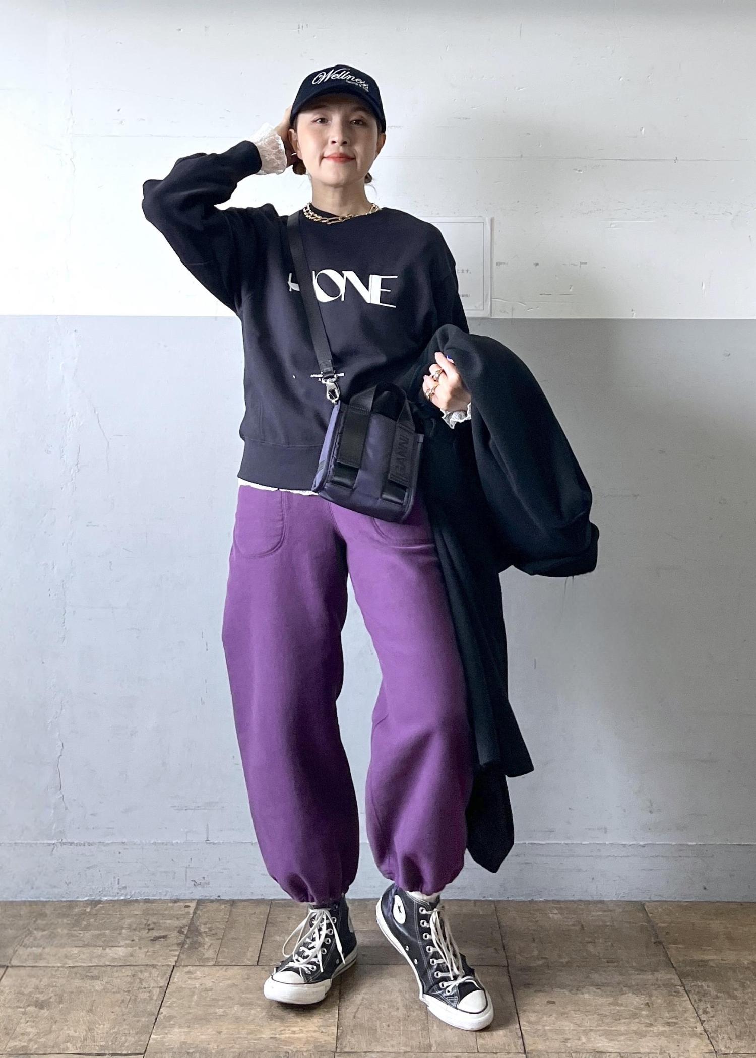 足元や小物はあえてラフにまとめることで、こなれた大人のスウェットスタイルに。