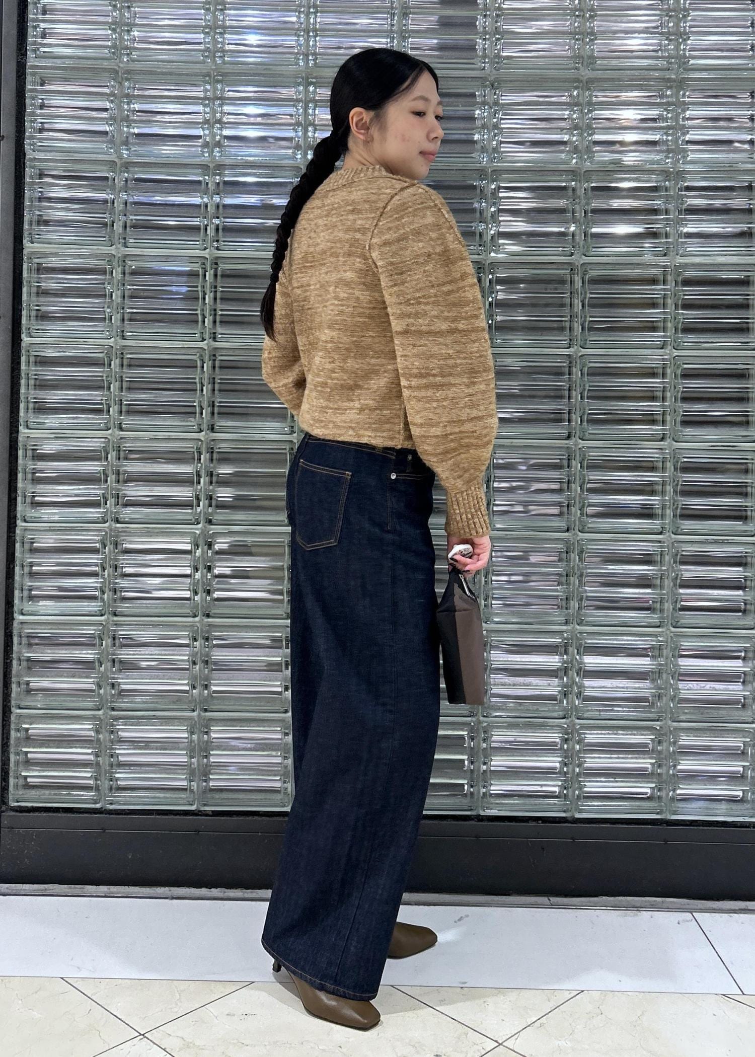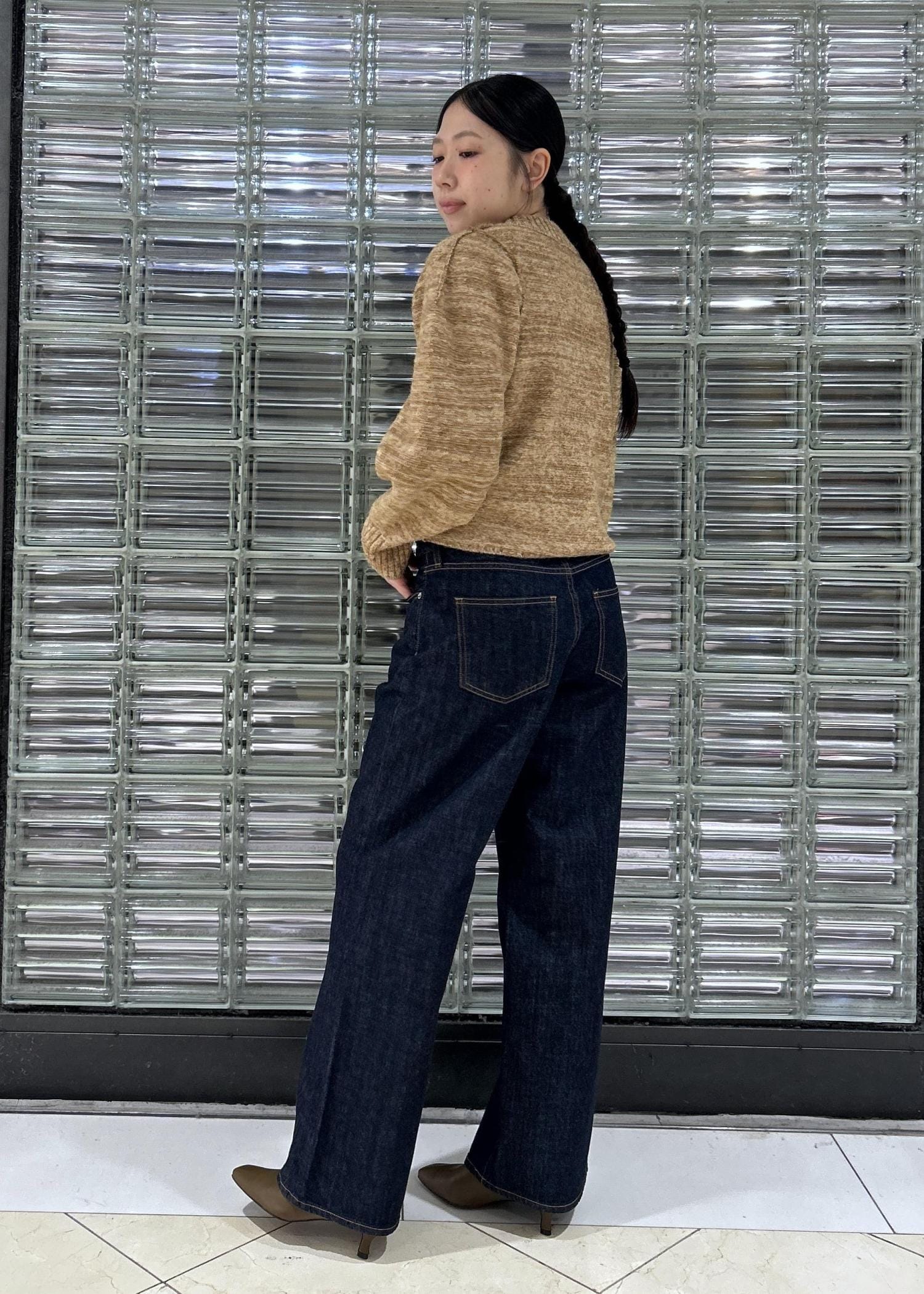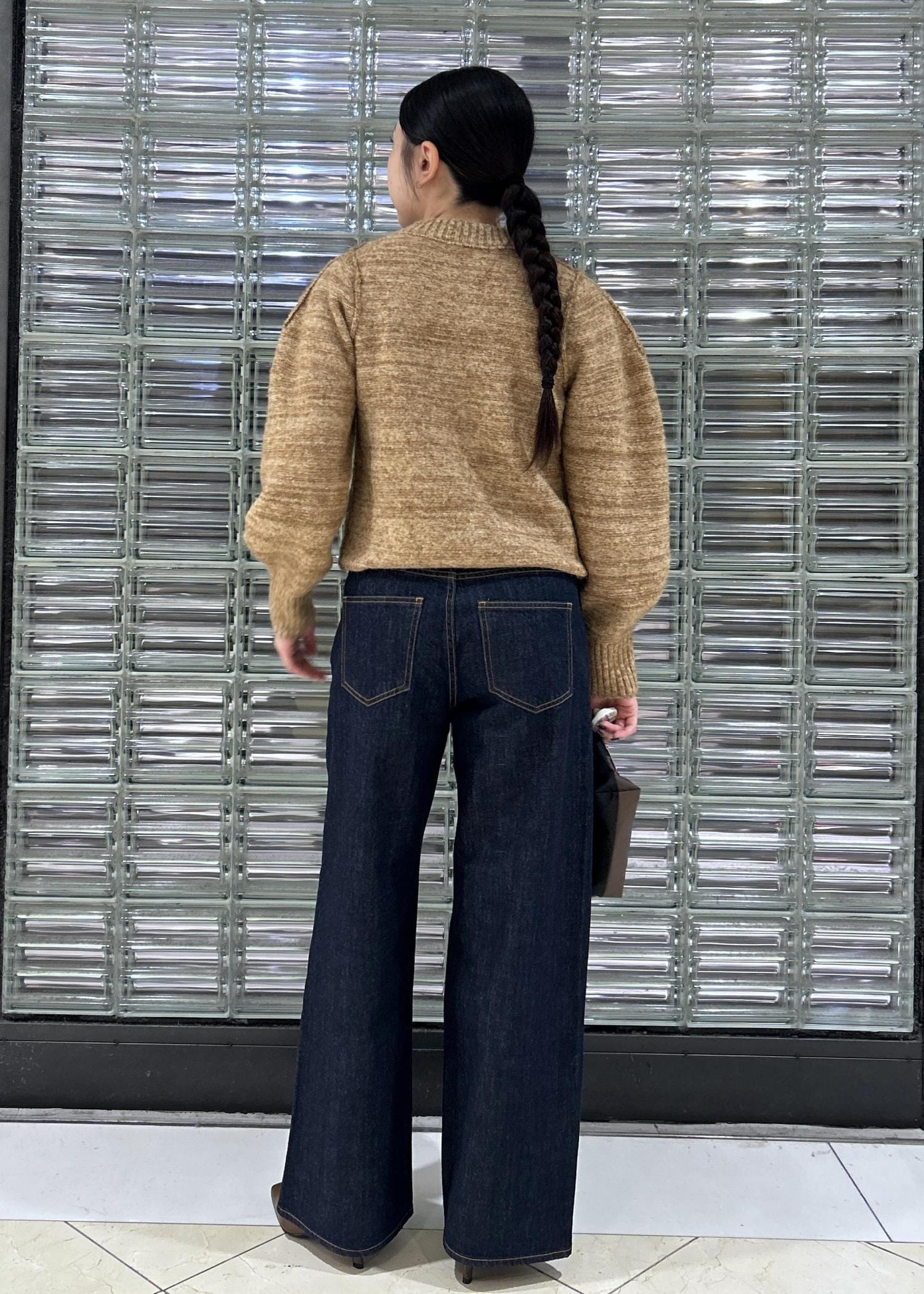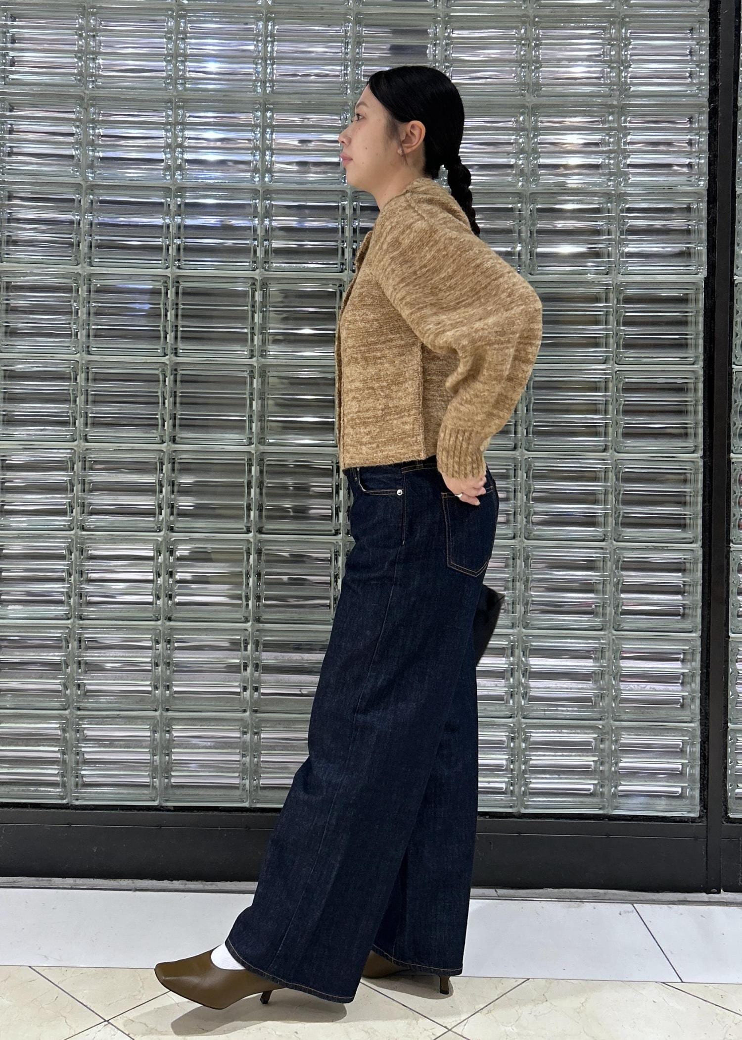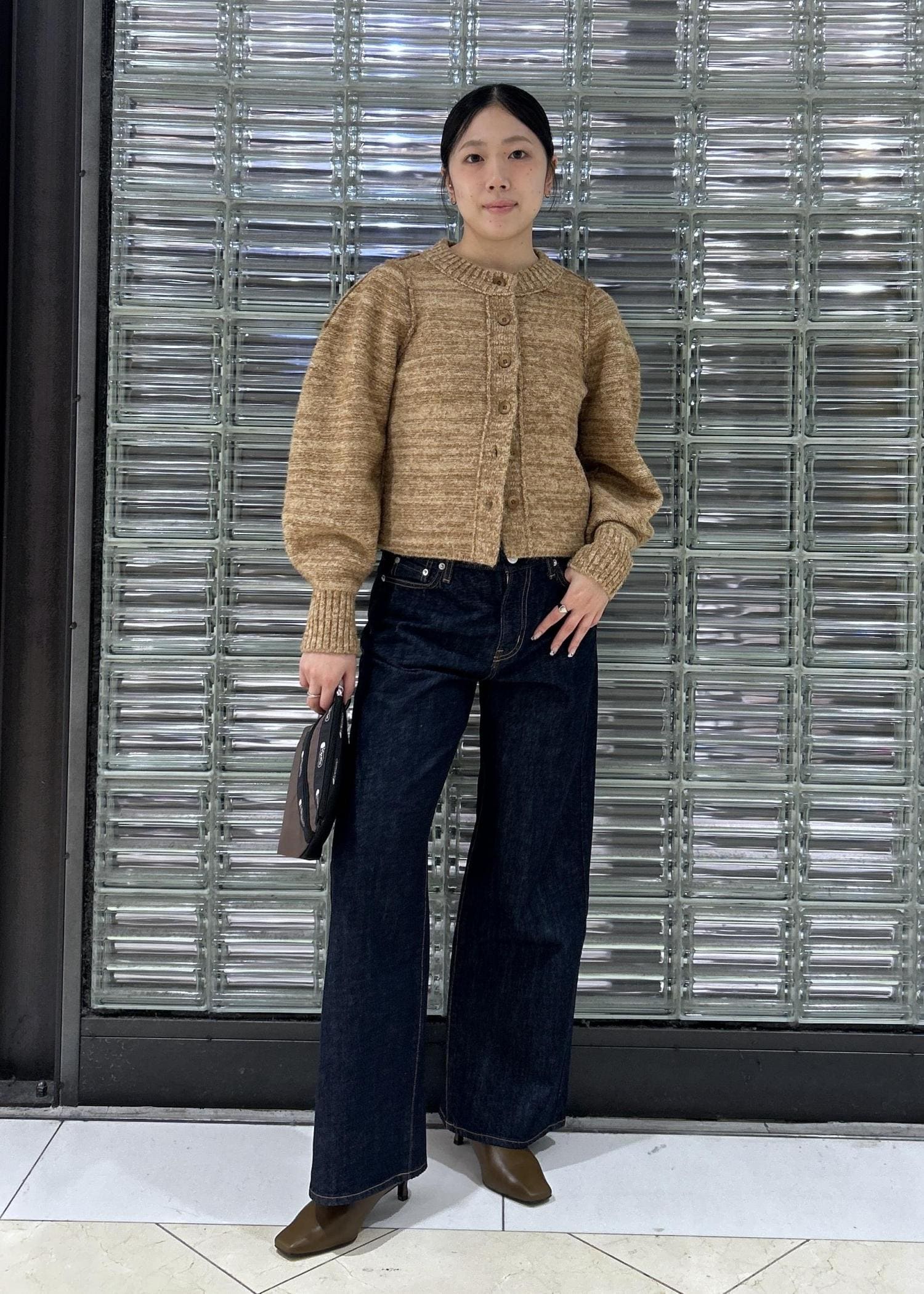 【MIXヤーンカーディガン】は、パフスリーブのデザインになっており丈感もショート丈で、パンツスタイルにもスカートスタイルにもぴったりです◎