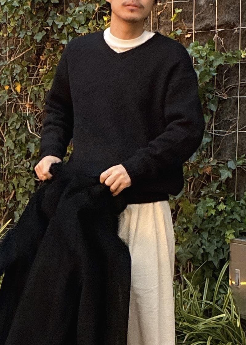 ADAM ET ROPÉ HOMMEモヘアミックス オーバーサイズ Vネックニットブラック / M¥16,940レビューややゆったりめのサイズ感で、僕自身肩幅がありますがMでも余裕を持って着用できました。