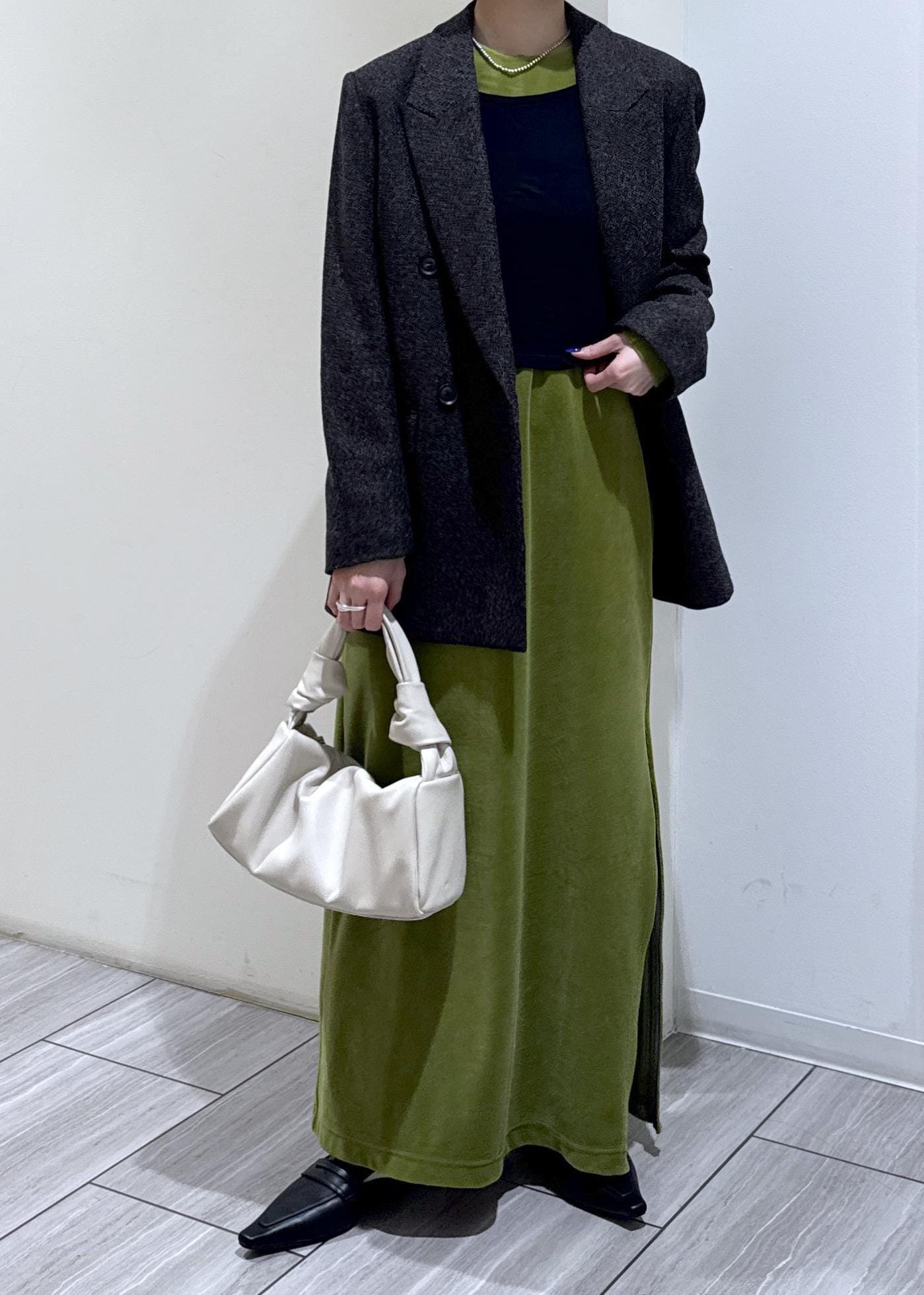 ADAM ET ROPÉ FEMMEベロア BOTANICAL DYED DRESSオリーブ / 1¥22,000レビューぴったり過ぎず、ややゆとりのあるサイズ感。