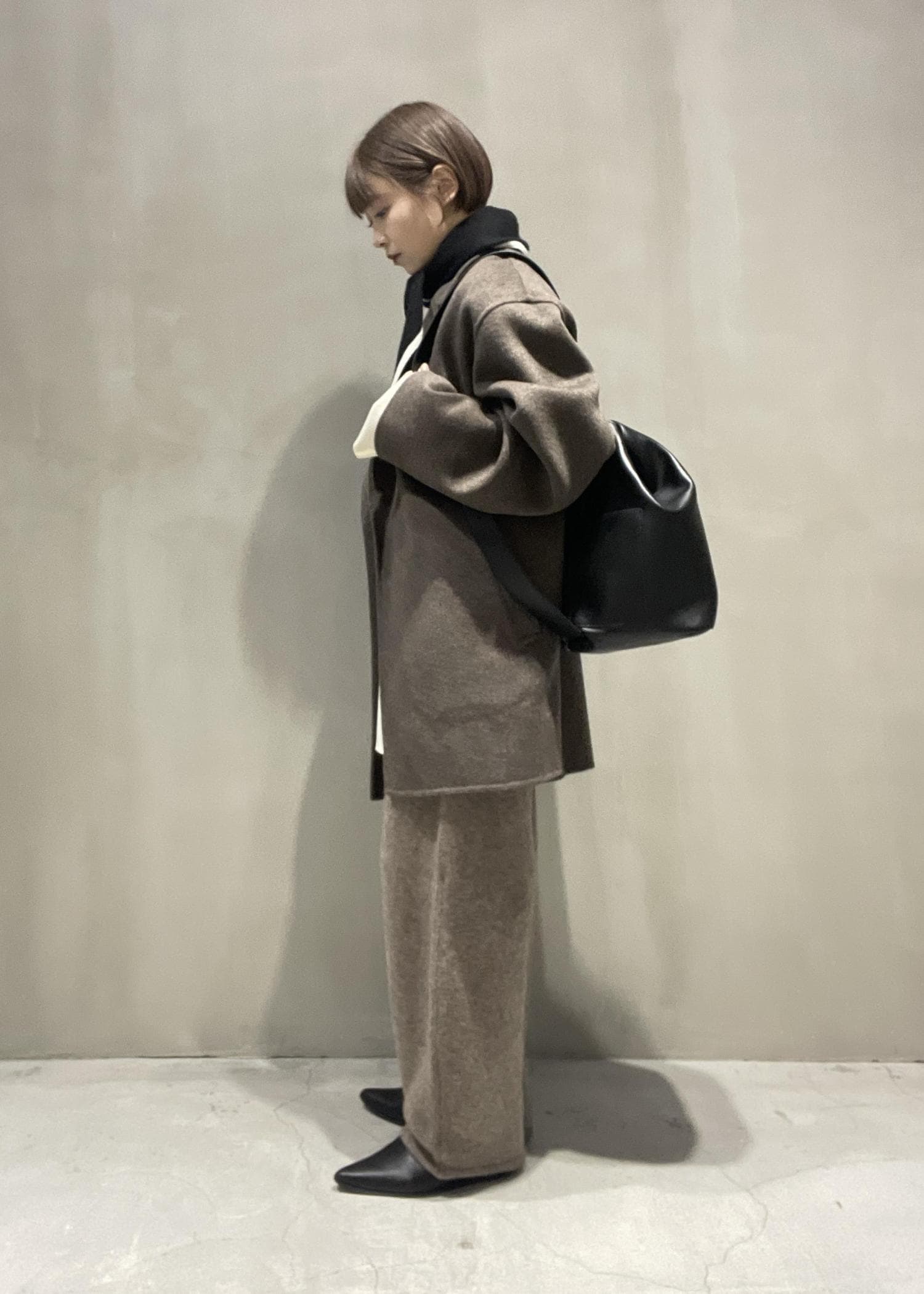コートは小柄な方でもバランスがとりやすく、中に着込んでオシャレを楽しめます。