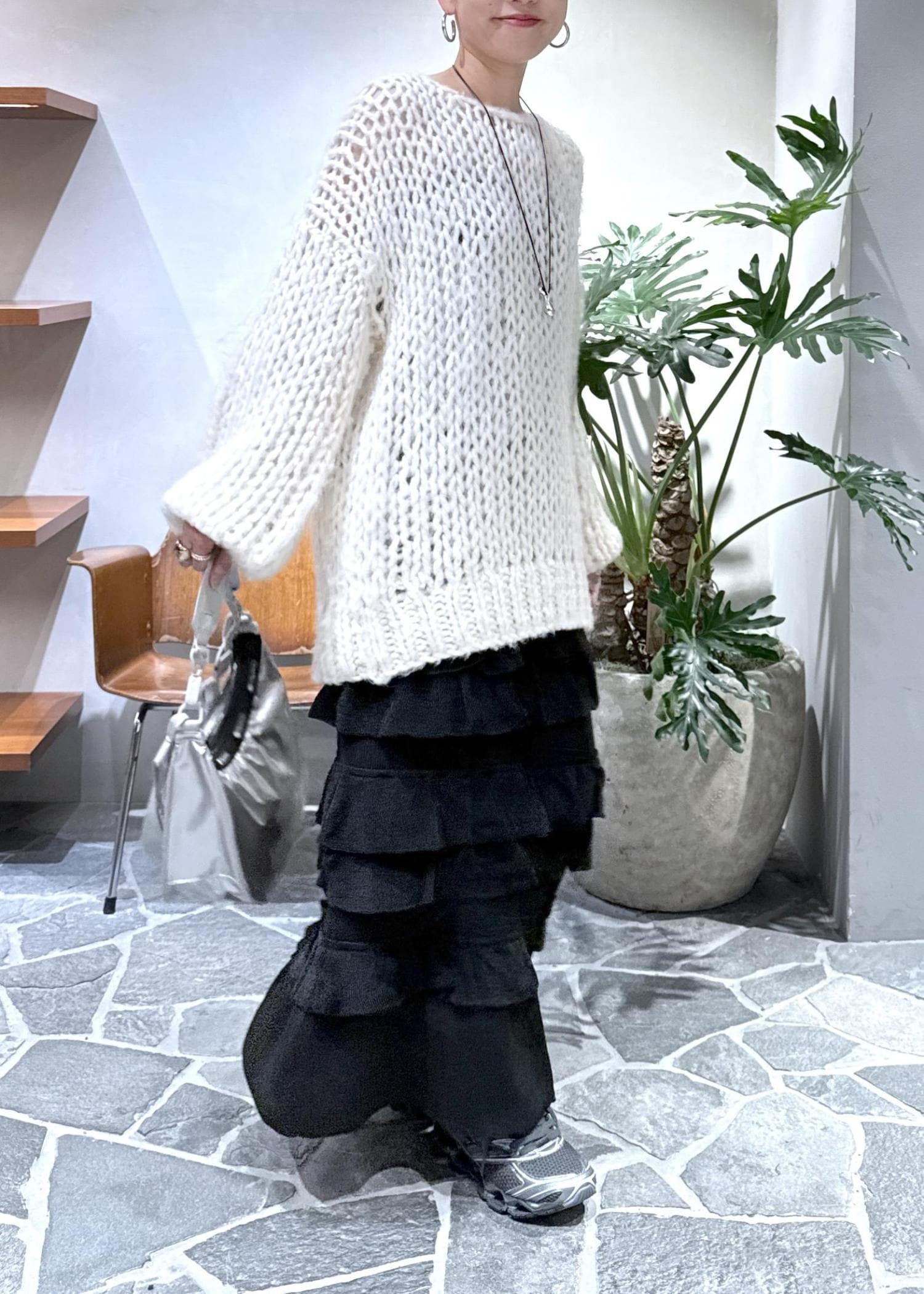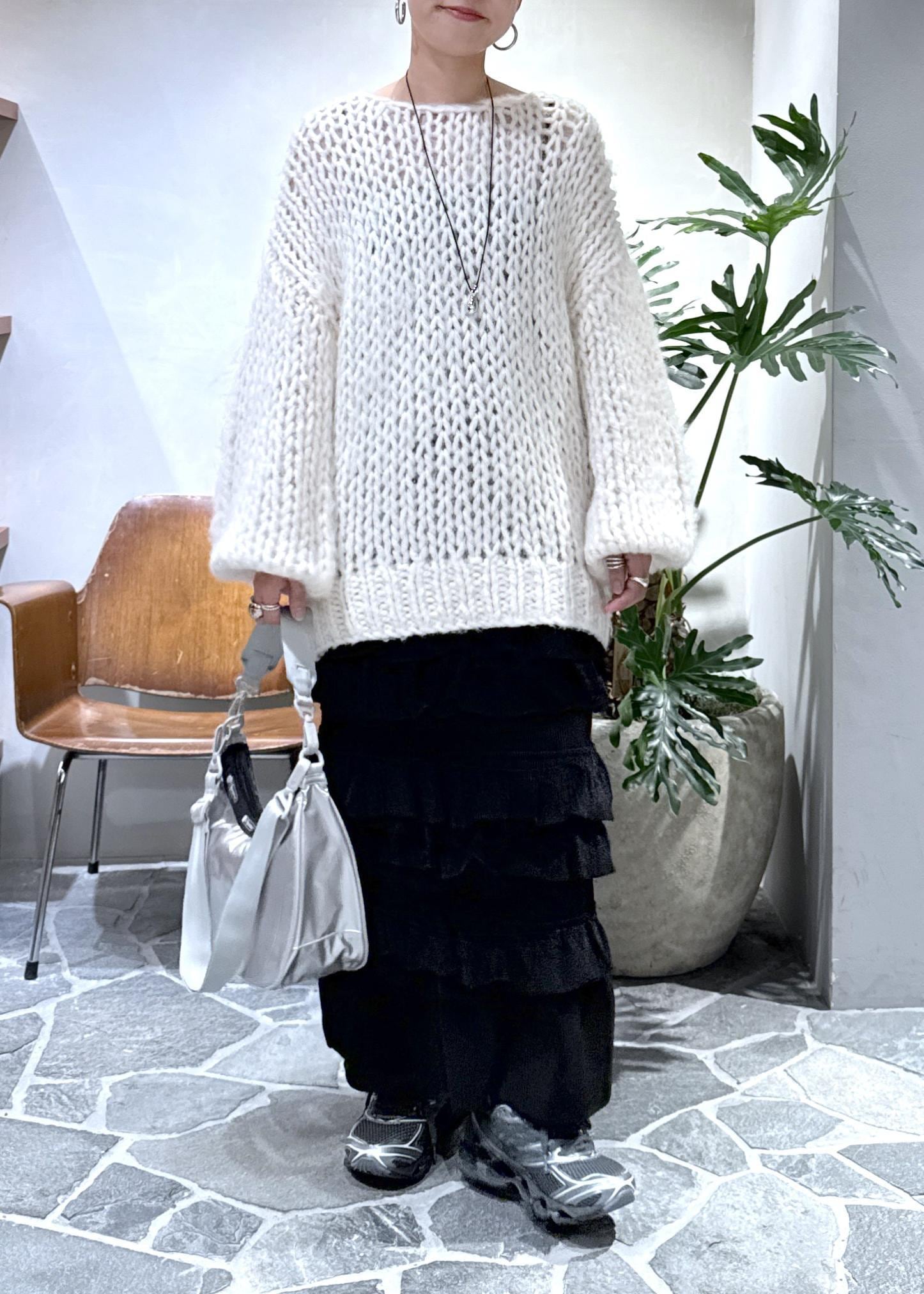 EMOELLE【EMOELLE】ローゲージニットプルオーバーオフホワイト / F¥28,600レビューざっくり編みで編み目から見える肌がヘルシーで可愛いです。