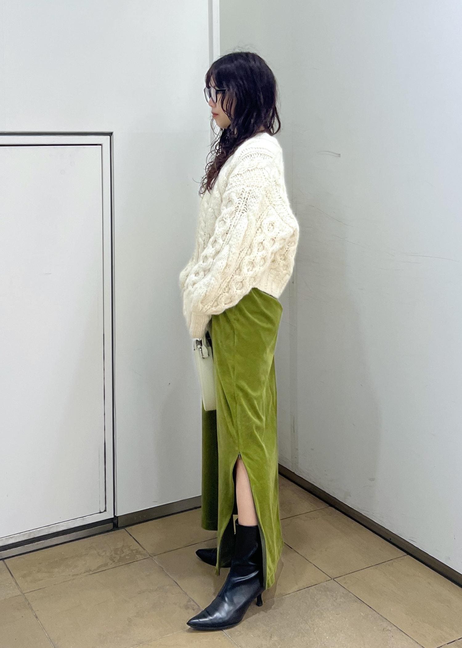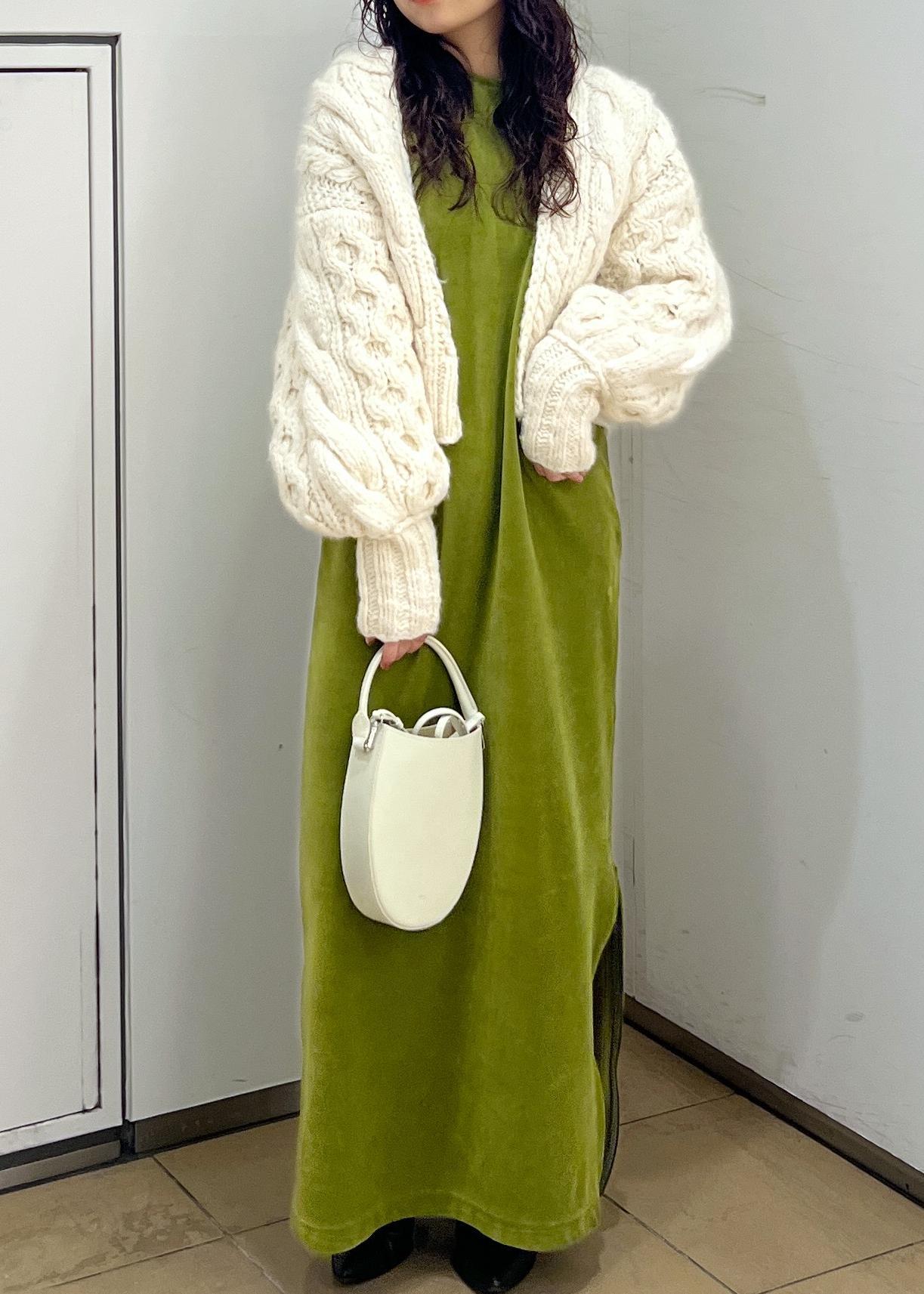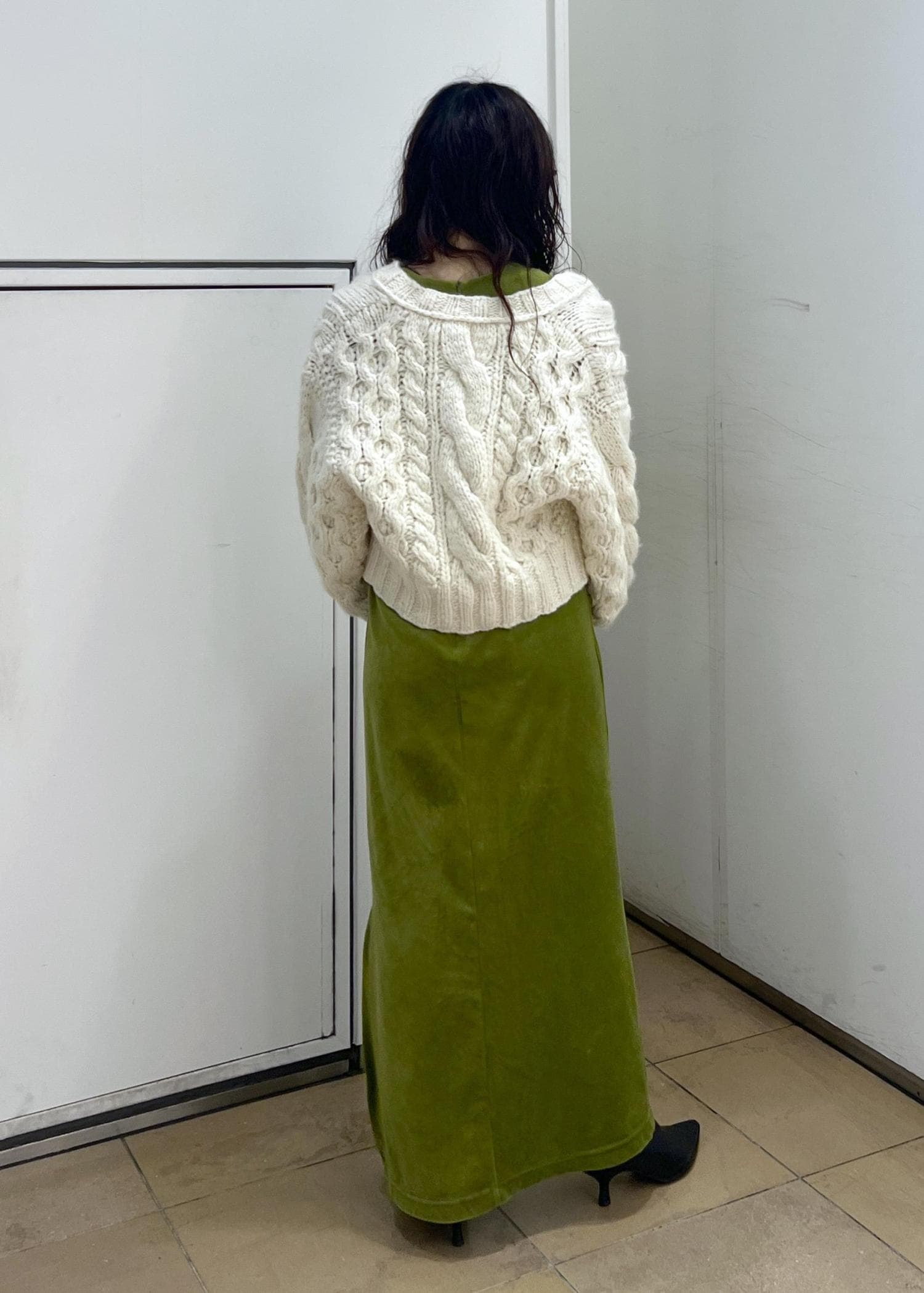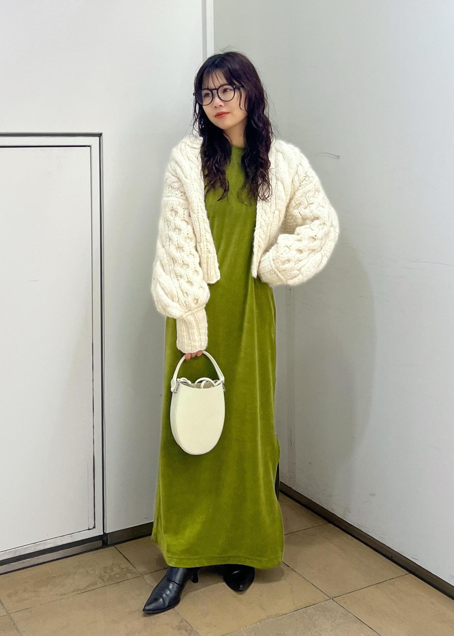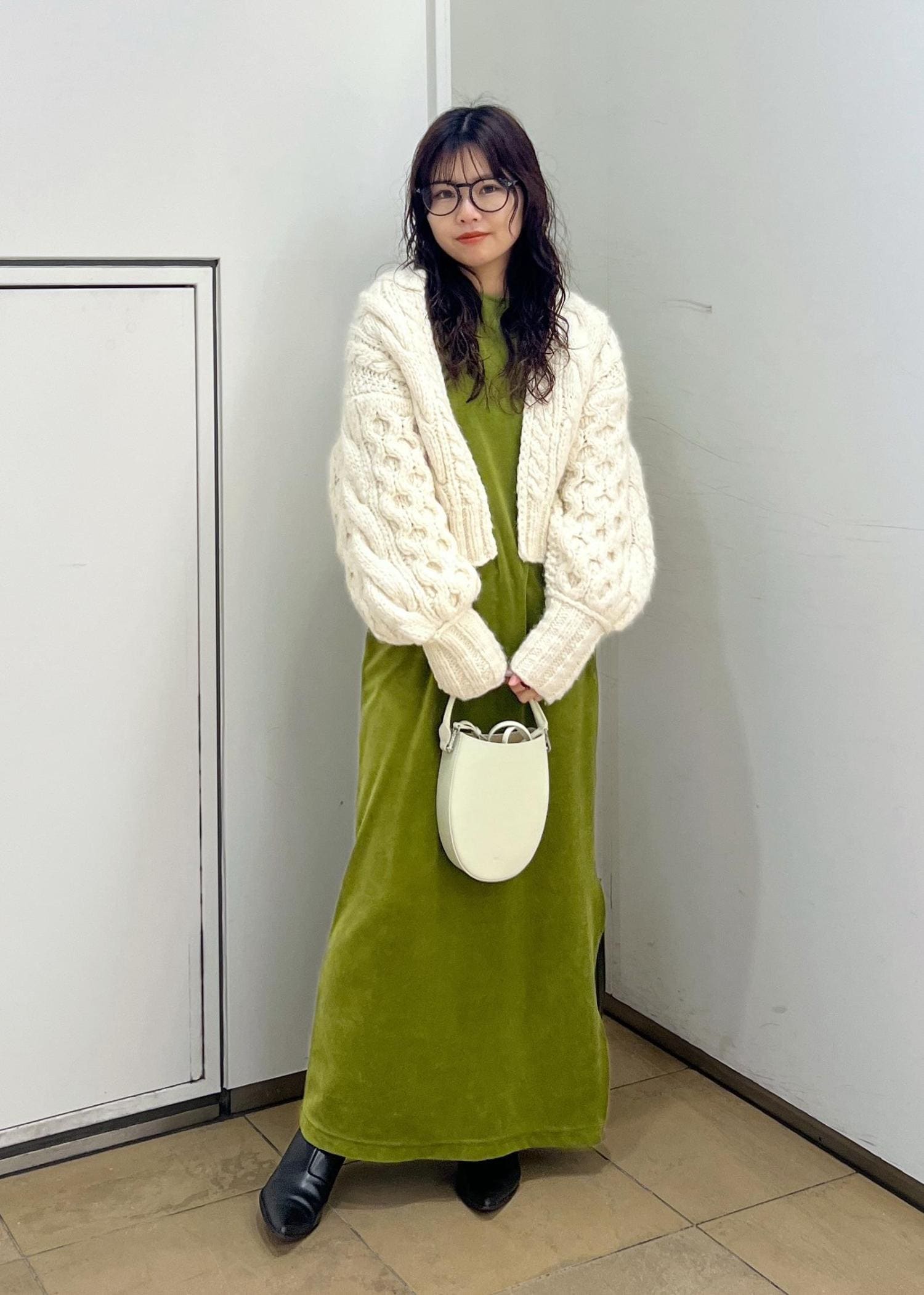 EMOELLE【EMOELLE】ケーブルボレロカーディガンキナリ / F¥35,200レビューカーディガンでもしっかり重みがあって、暖かいです◎ハイウエストのボトムが多いからこそ、この丈のニットが役に立ちます!