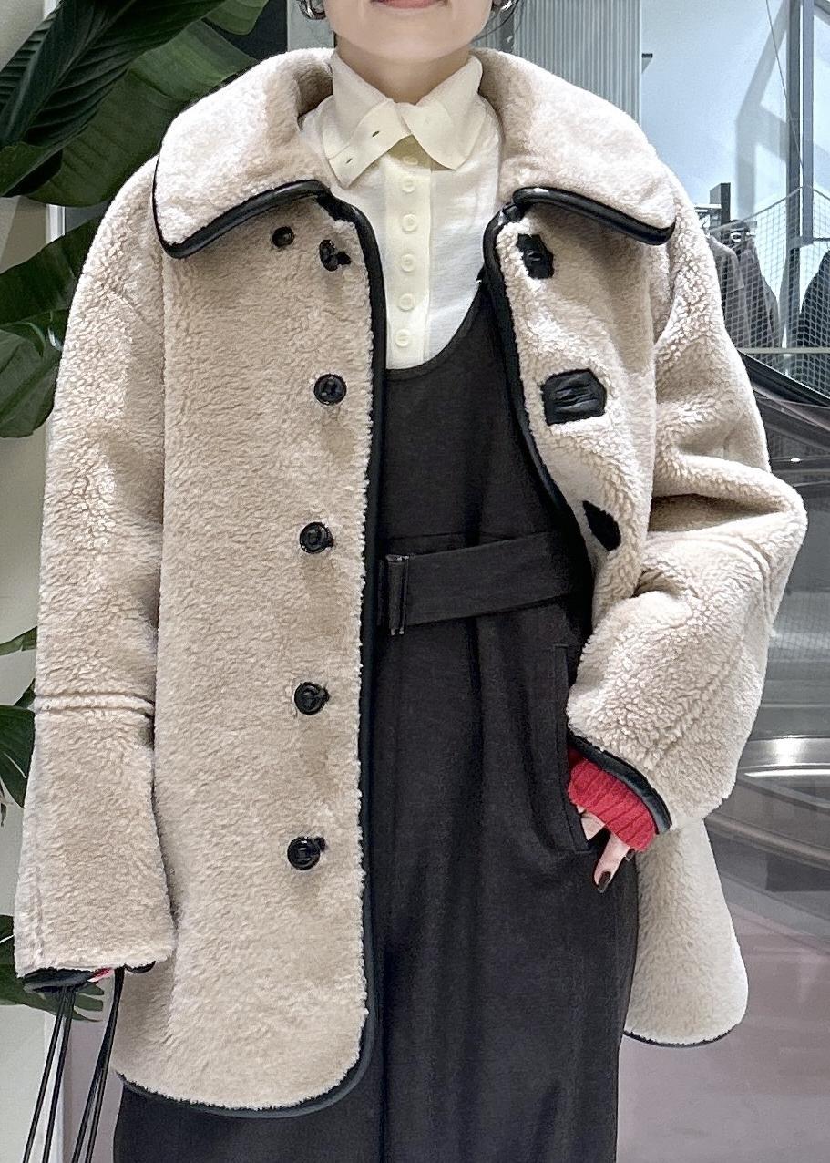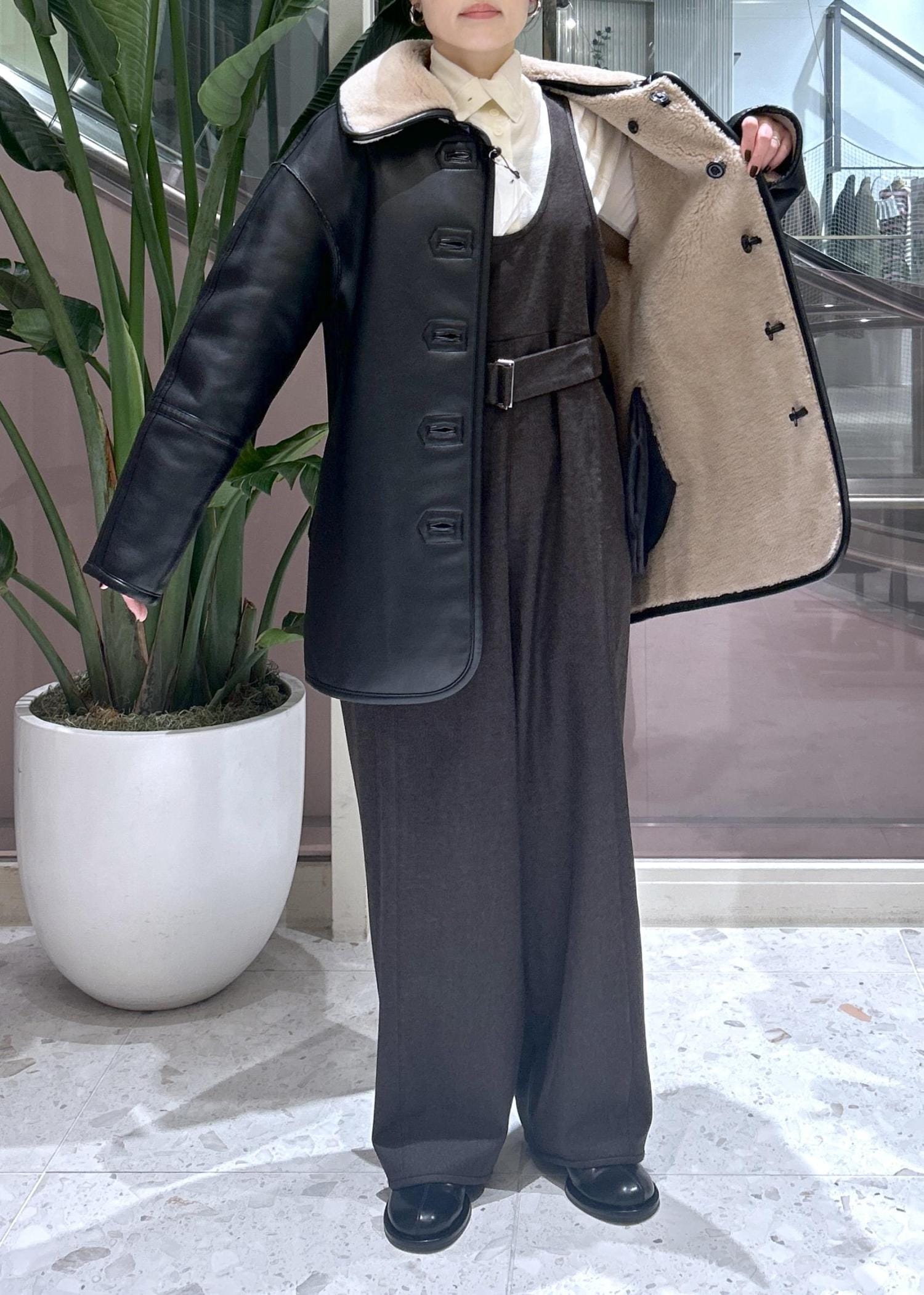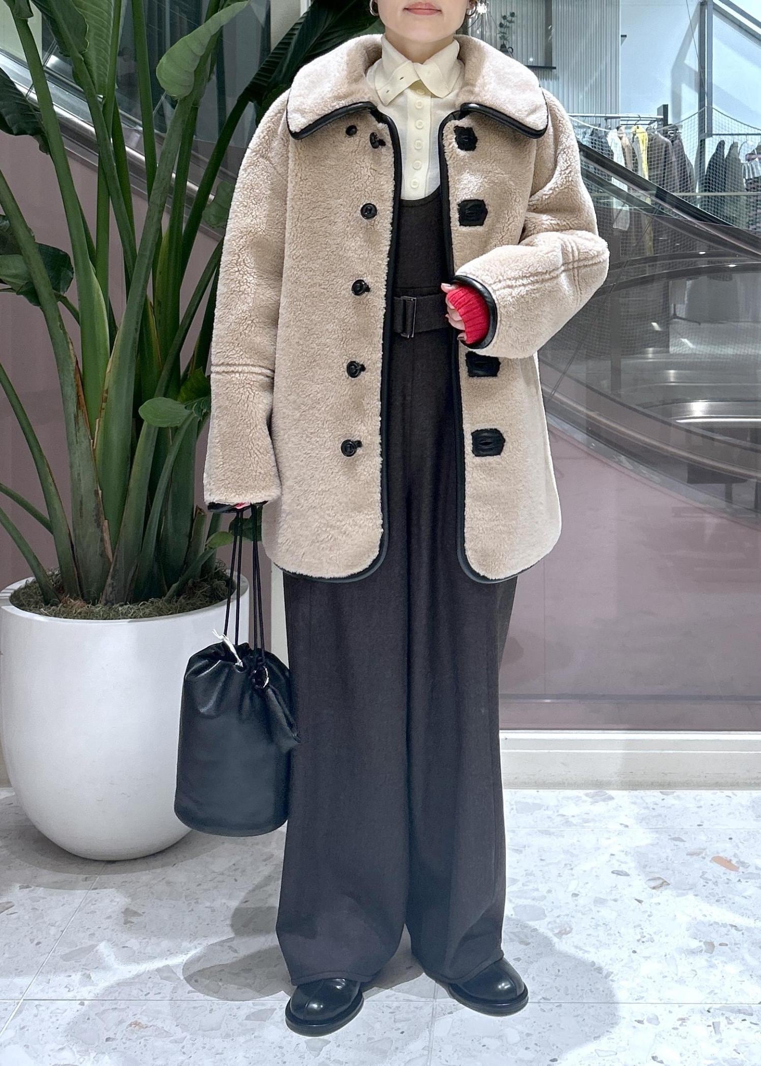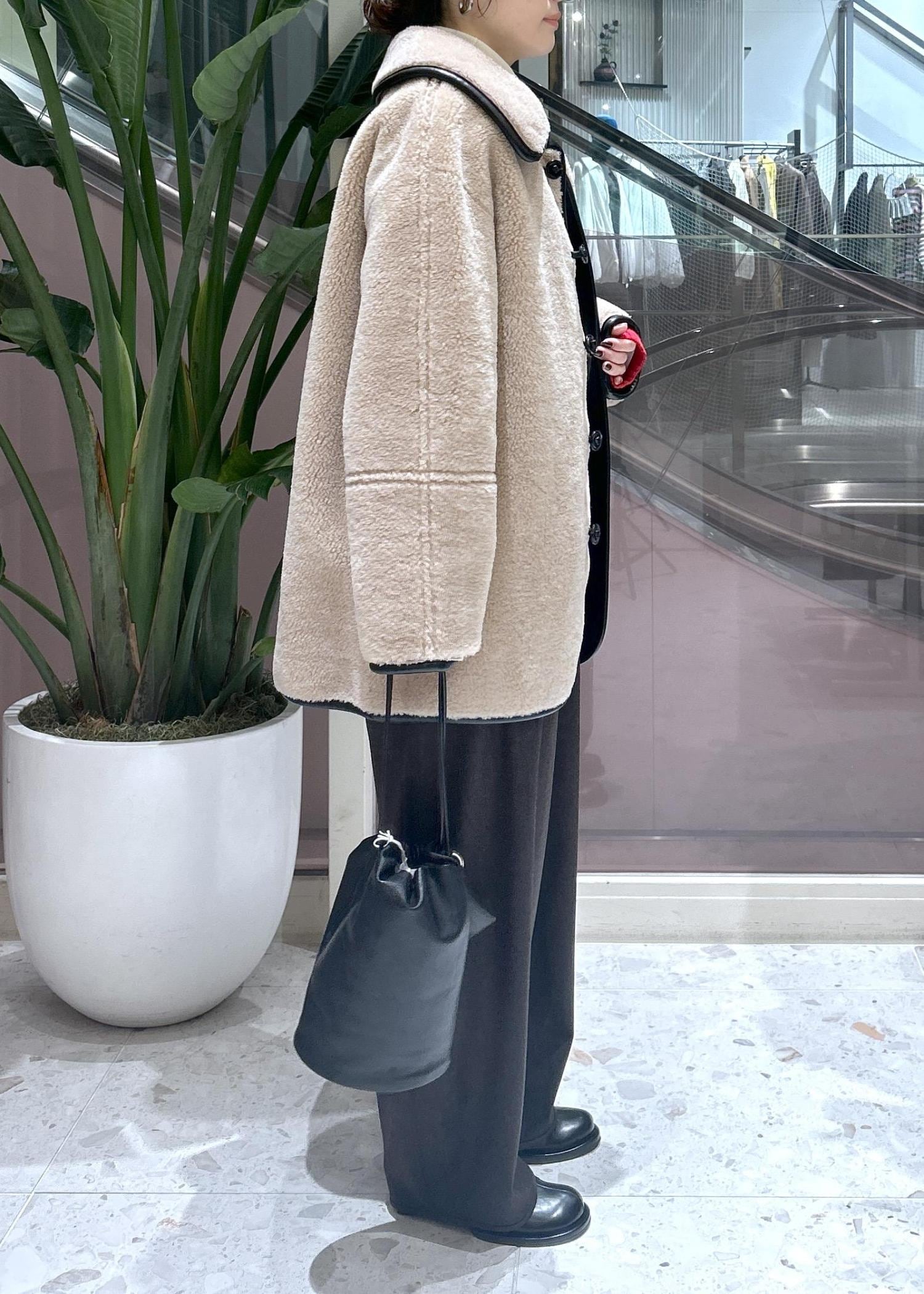 ボアの柔らかい雰囲気とレザーのモードな雰囲気と全く違うイメージで楽しめるのは嬉しいポイント。