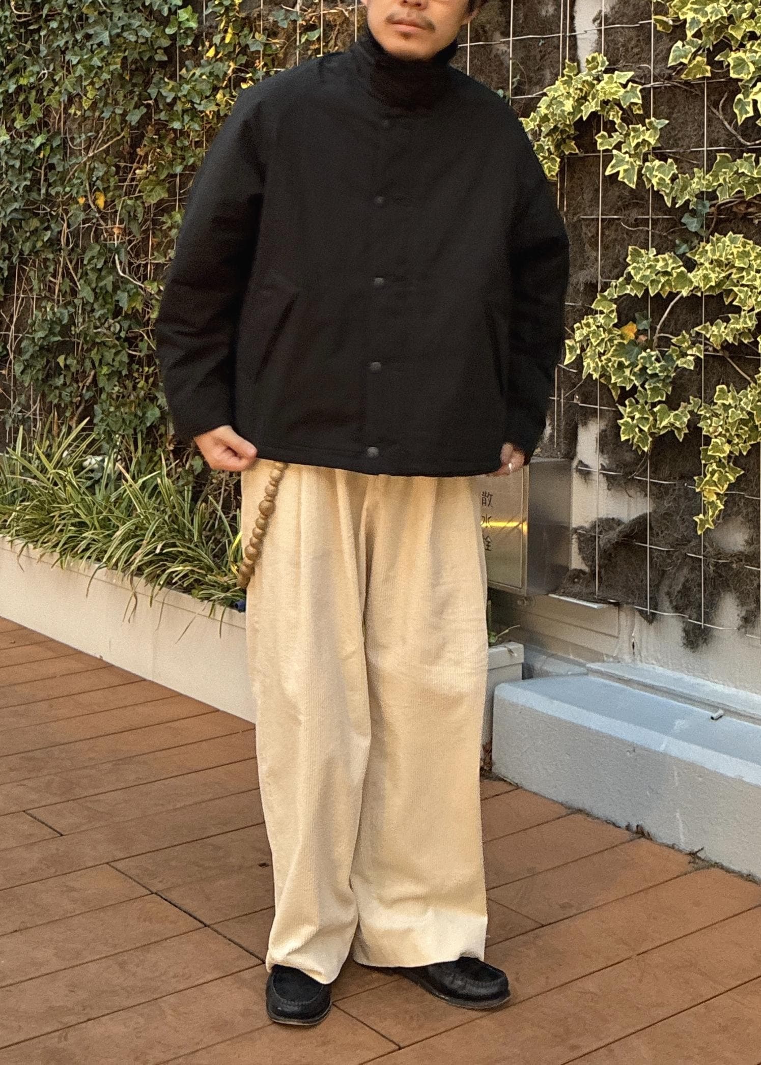 中綿入りで保温性の安心感はもちろん、ノンオイルなのでマフラーやウールニットを懸念なく着用できるので、冬場にかなり重宝するモデルです。