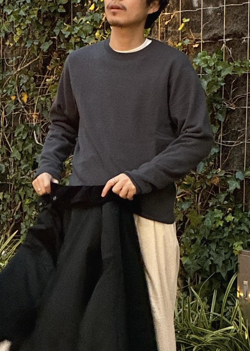 ややゆったりめのサイズ感で、僕自身肩幅がありますがMで程よいフィット感を持って着用できました。今回はゆったりめに着用したかったので、Lを着用しております。
