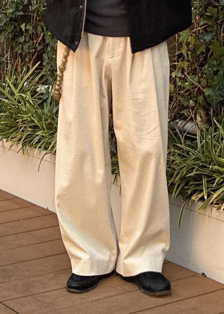 スタイリングの色味が重たくなりがちな冬場に、ボトムスを明るくする選択肢おすすめです◎