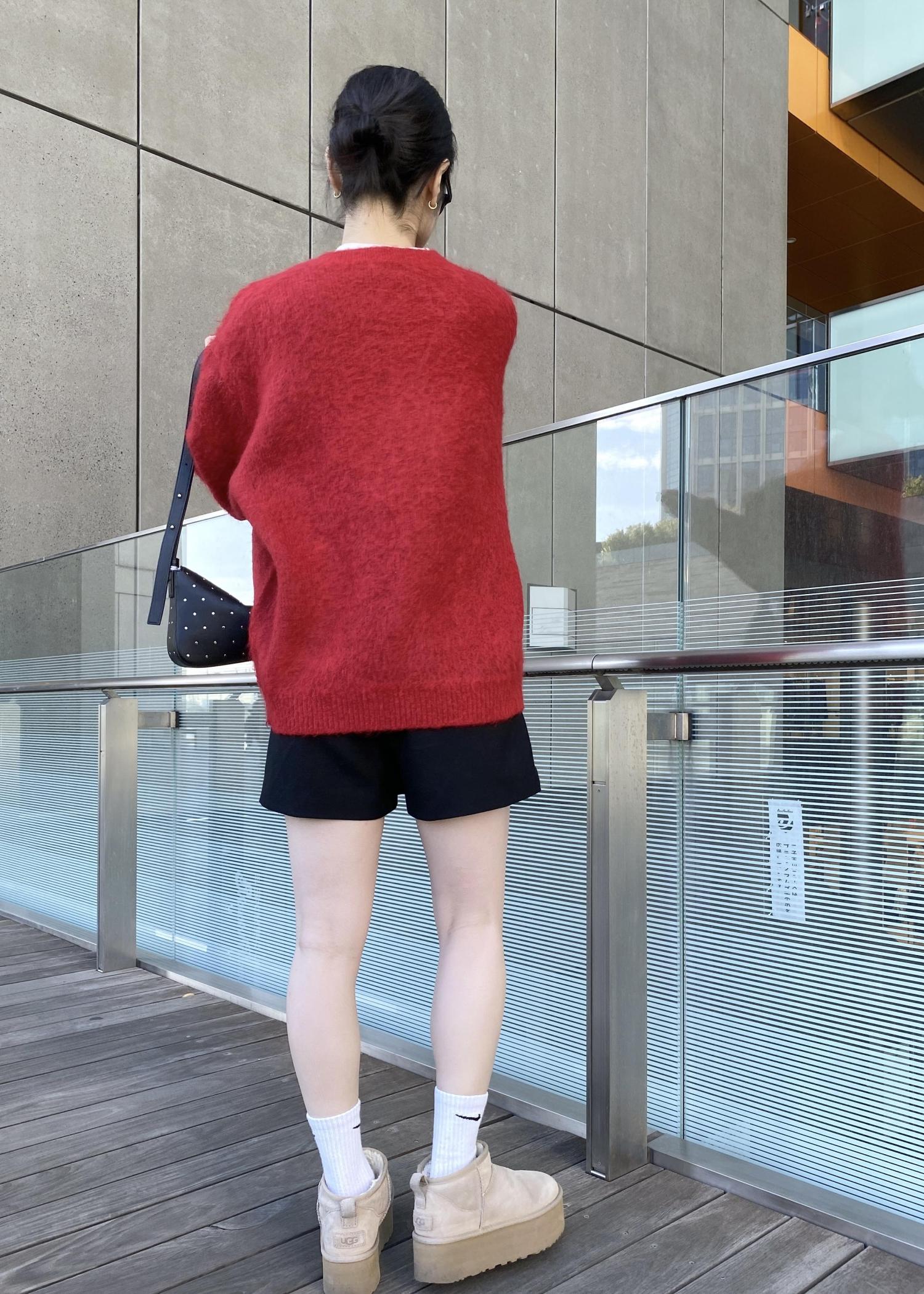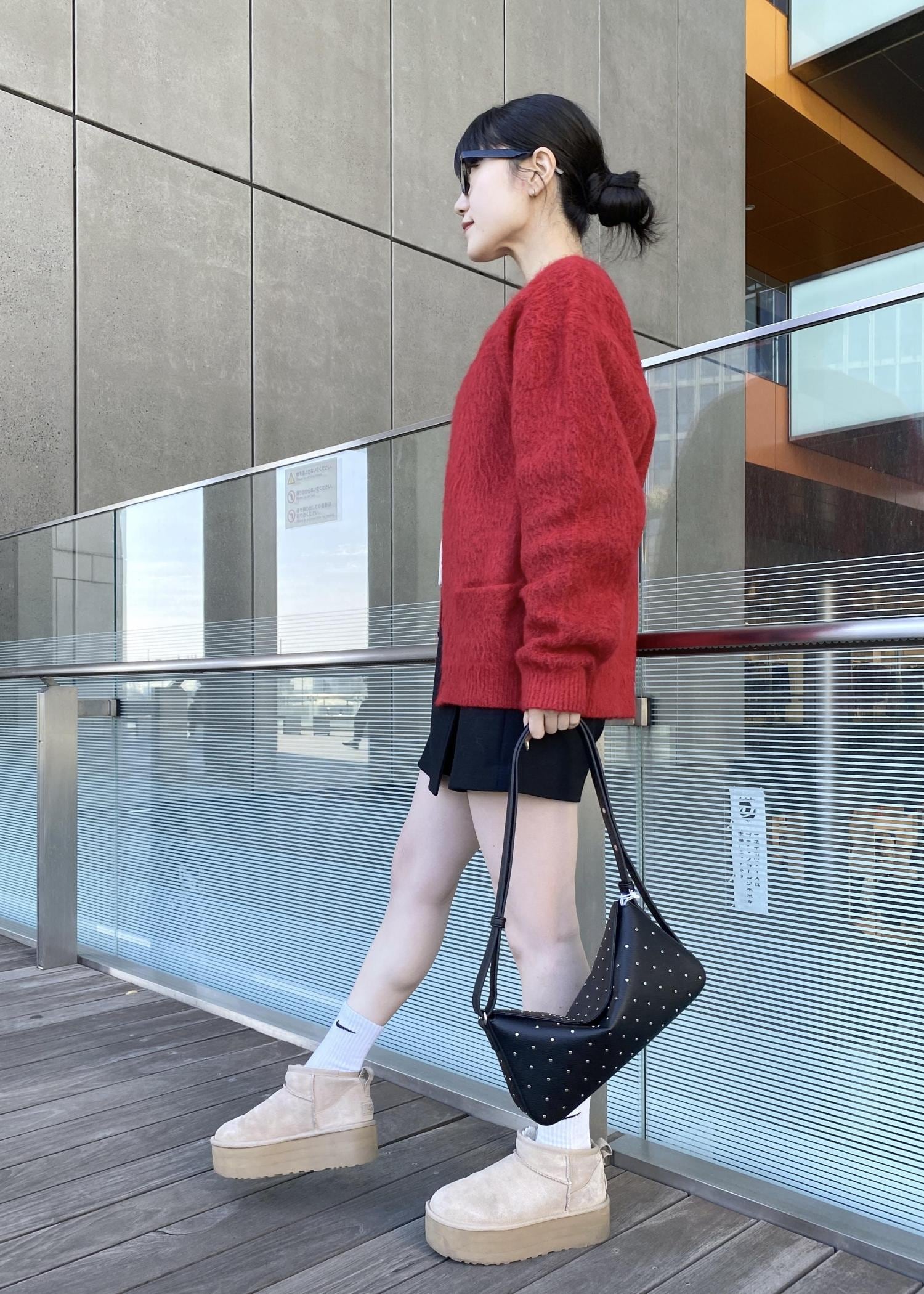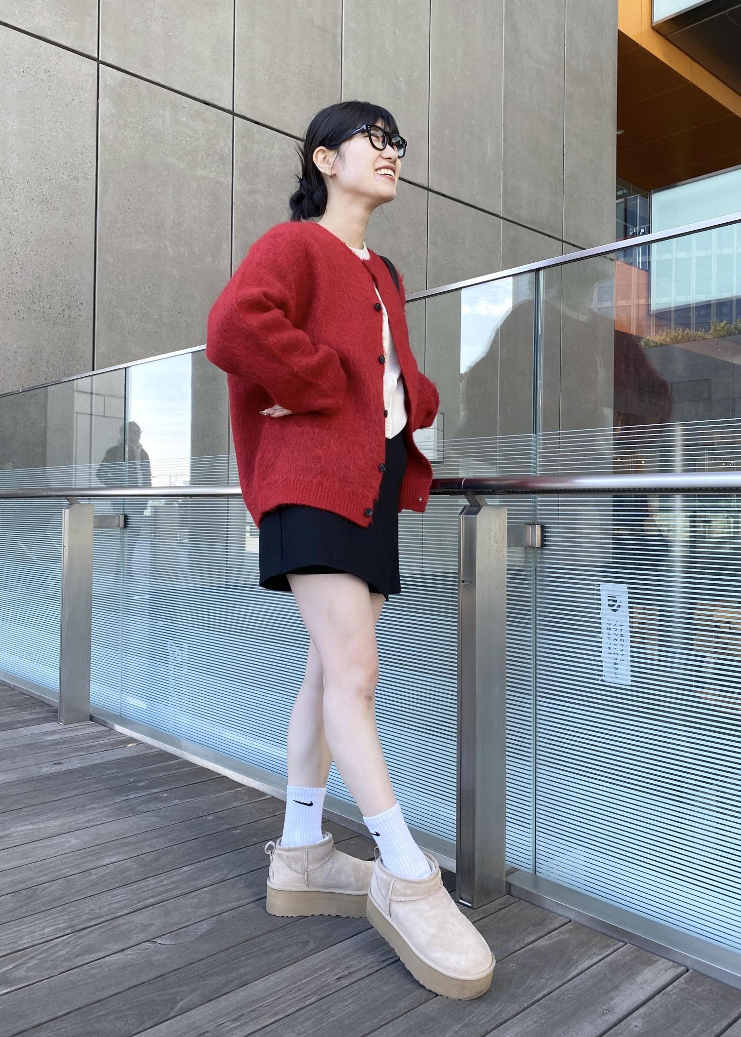 黒みかかった赤なので、コーディネートもしやすい色味でした!