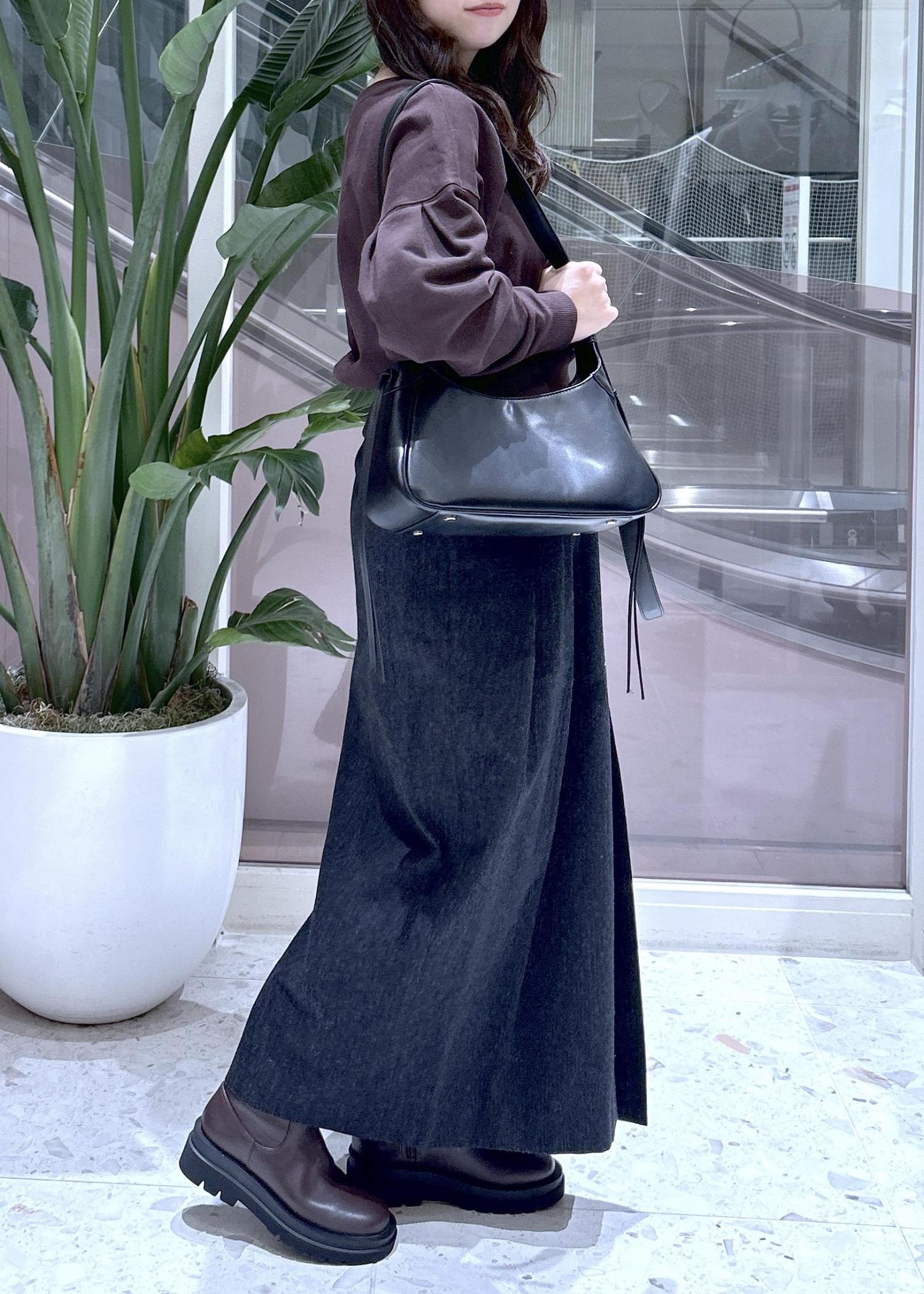 EMOELLE【EMOELLE】ウールコットン2タックスカートチャコール / 36¥29,700レビューとにかく形が可愛いです!ハイウエストなので足長効果もあります♪前スリットですが歩く際もそこまで足が見え過ぎないので安心して着用頂けます!