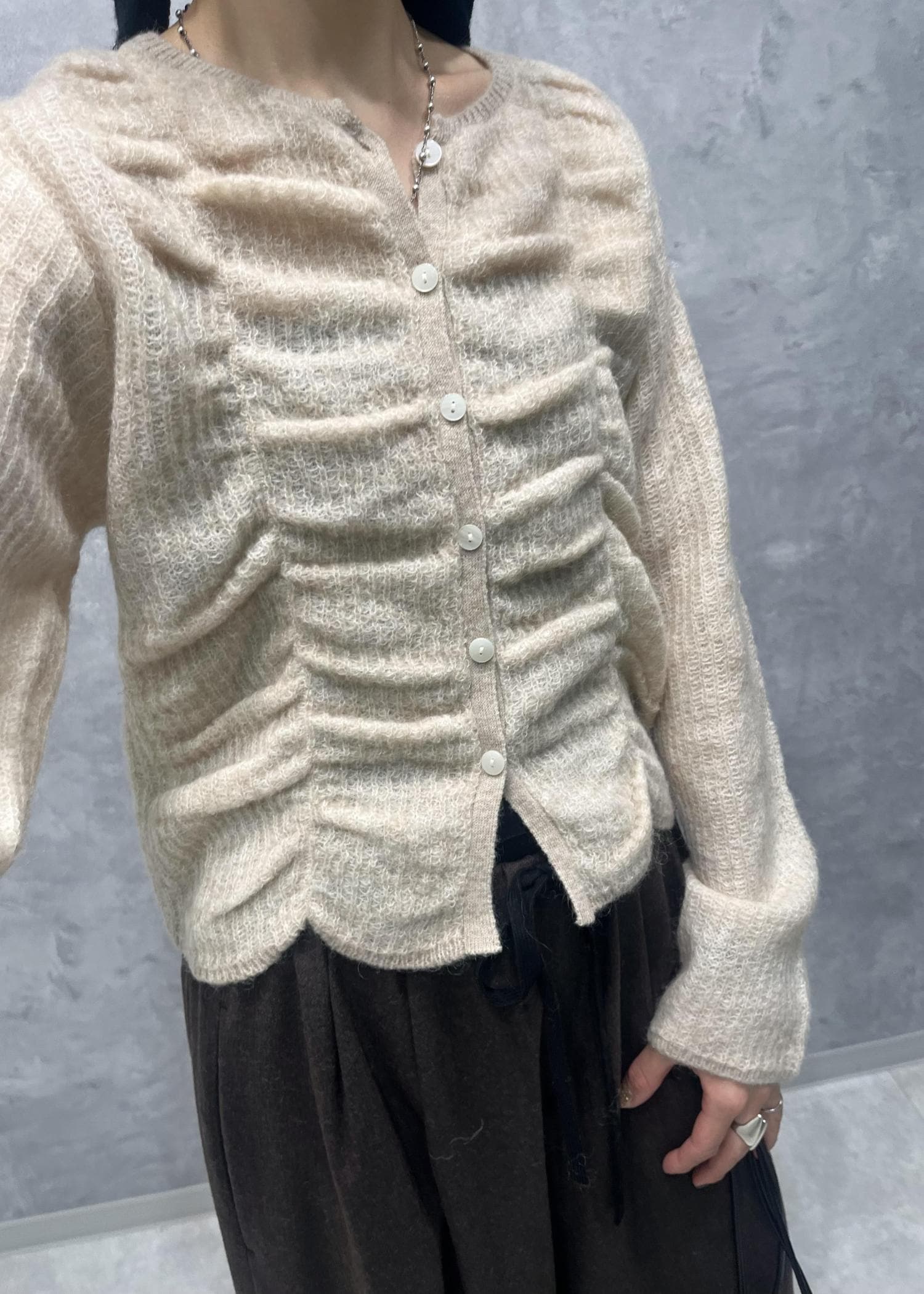 ADAM ET ROPÉ FEMME【WEB限定】ダブルモヘアシャーリングカーディガンベージュ / F¥13,860レビューモヘヤ素材の柔らかく軽いニットです。フロント部分のギャザーデザインが女性らしく可愛いニットです。程よくフィット感がありスタイル良く見せてくれます。