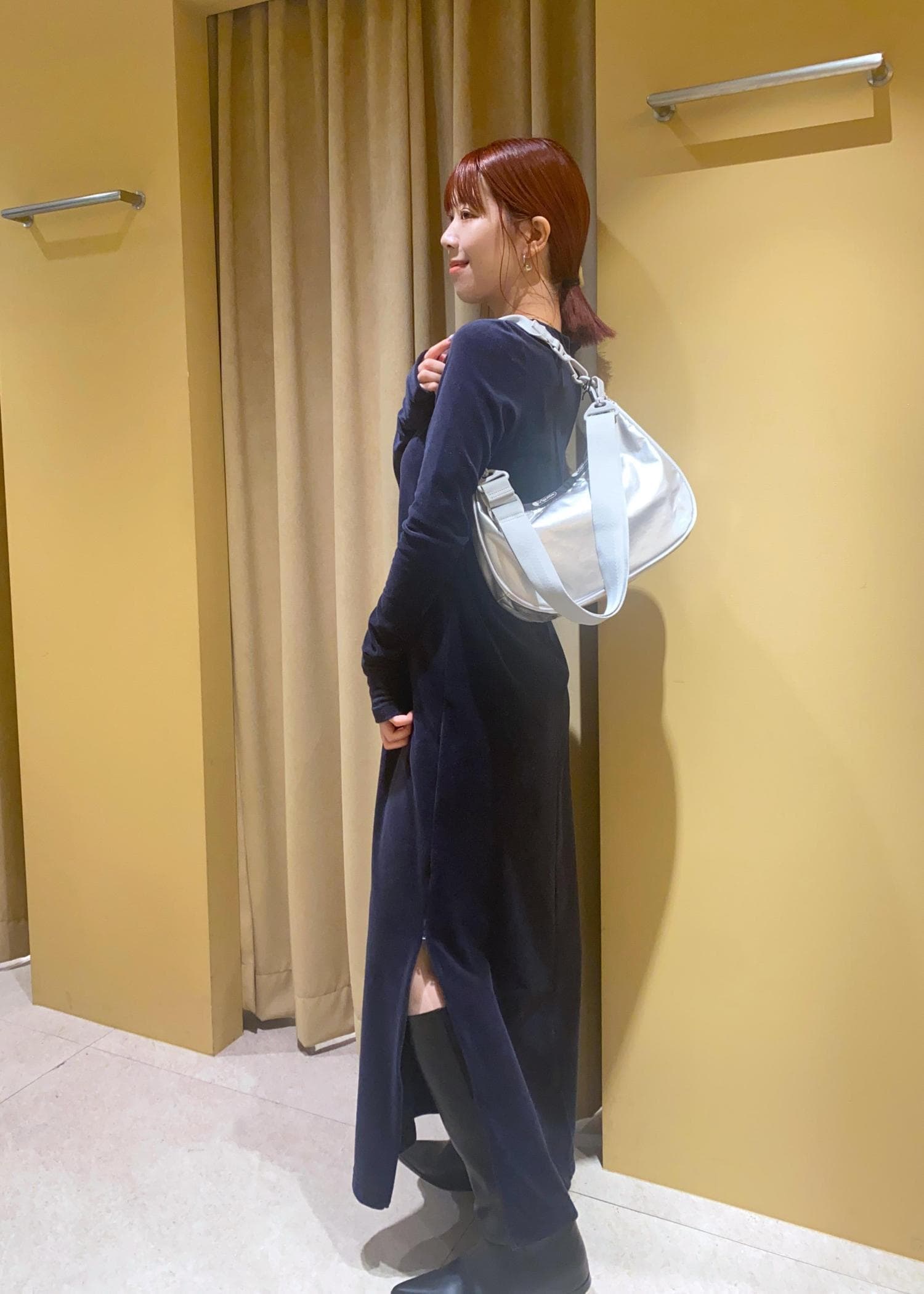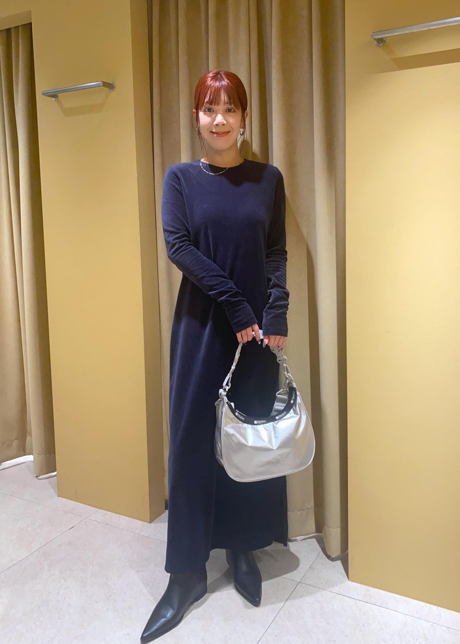 毎年大人気のベロアワンピースを使用し、ちょっぴりクリスマスを感じるコーディネートにしてみました...♡
