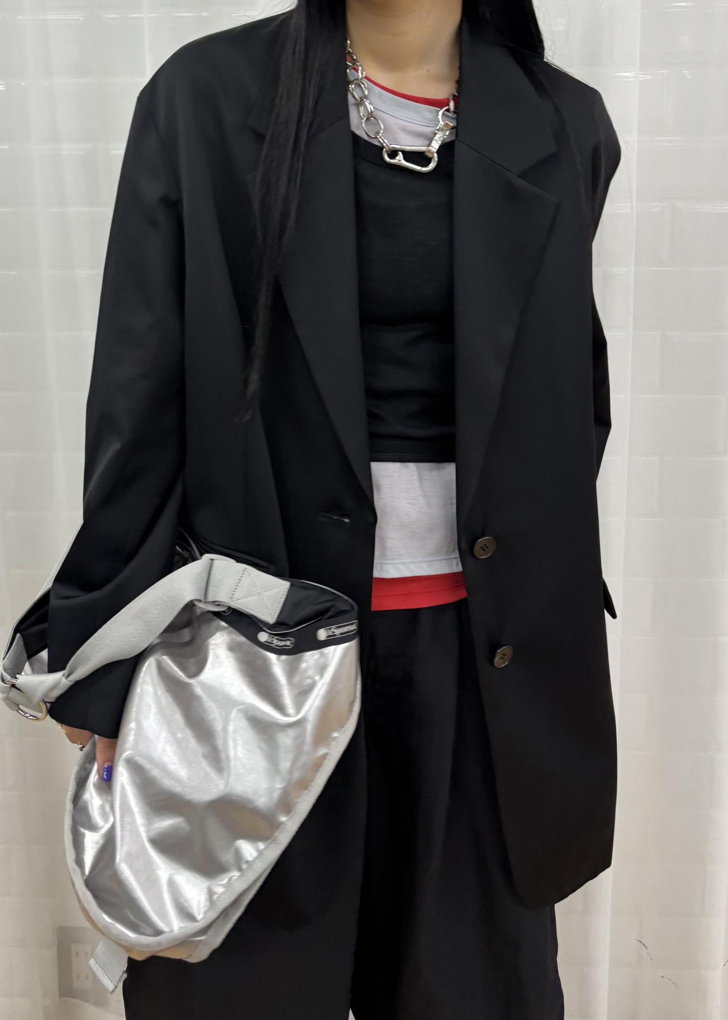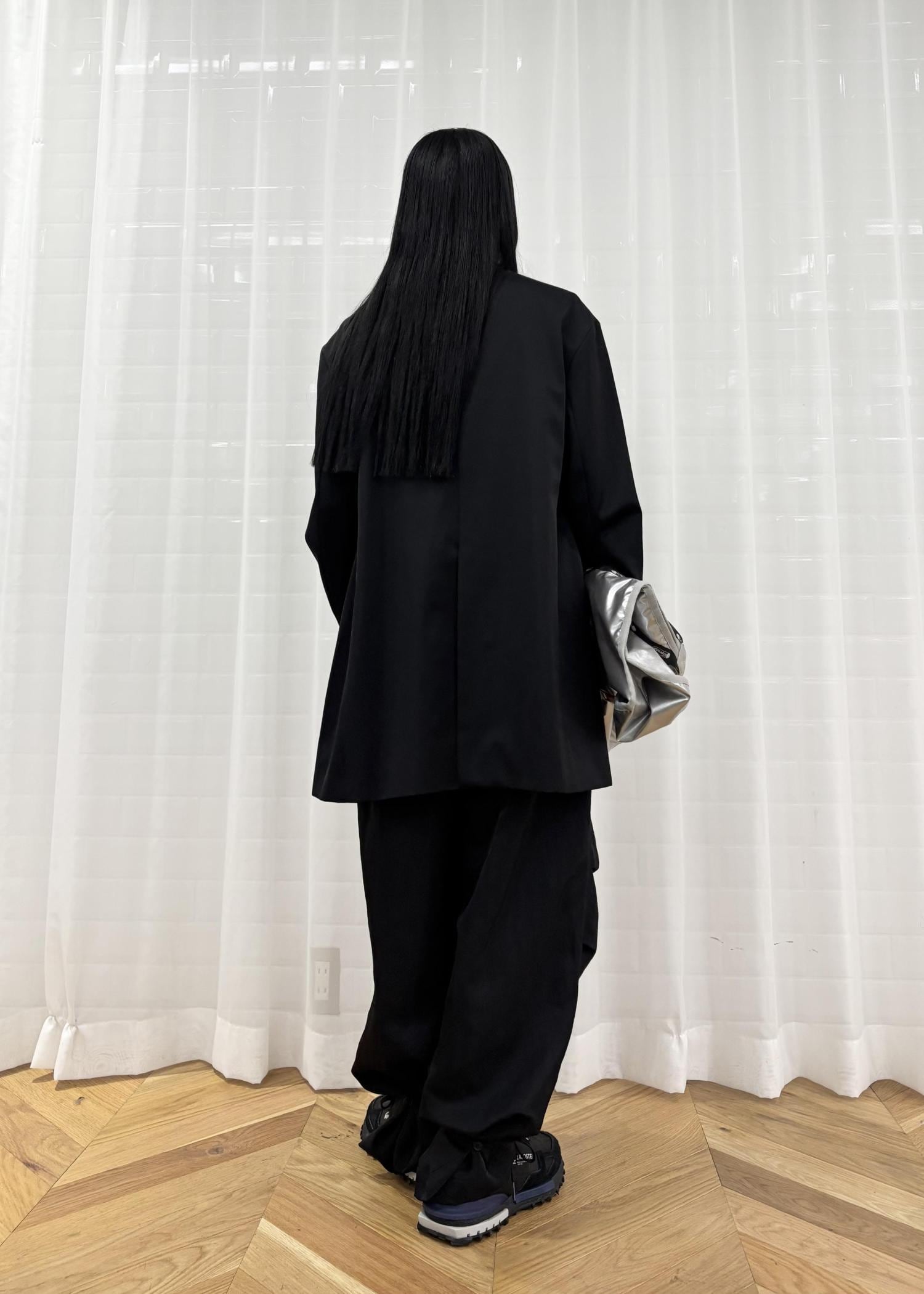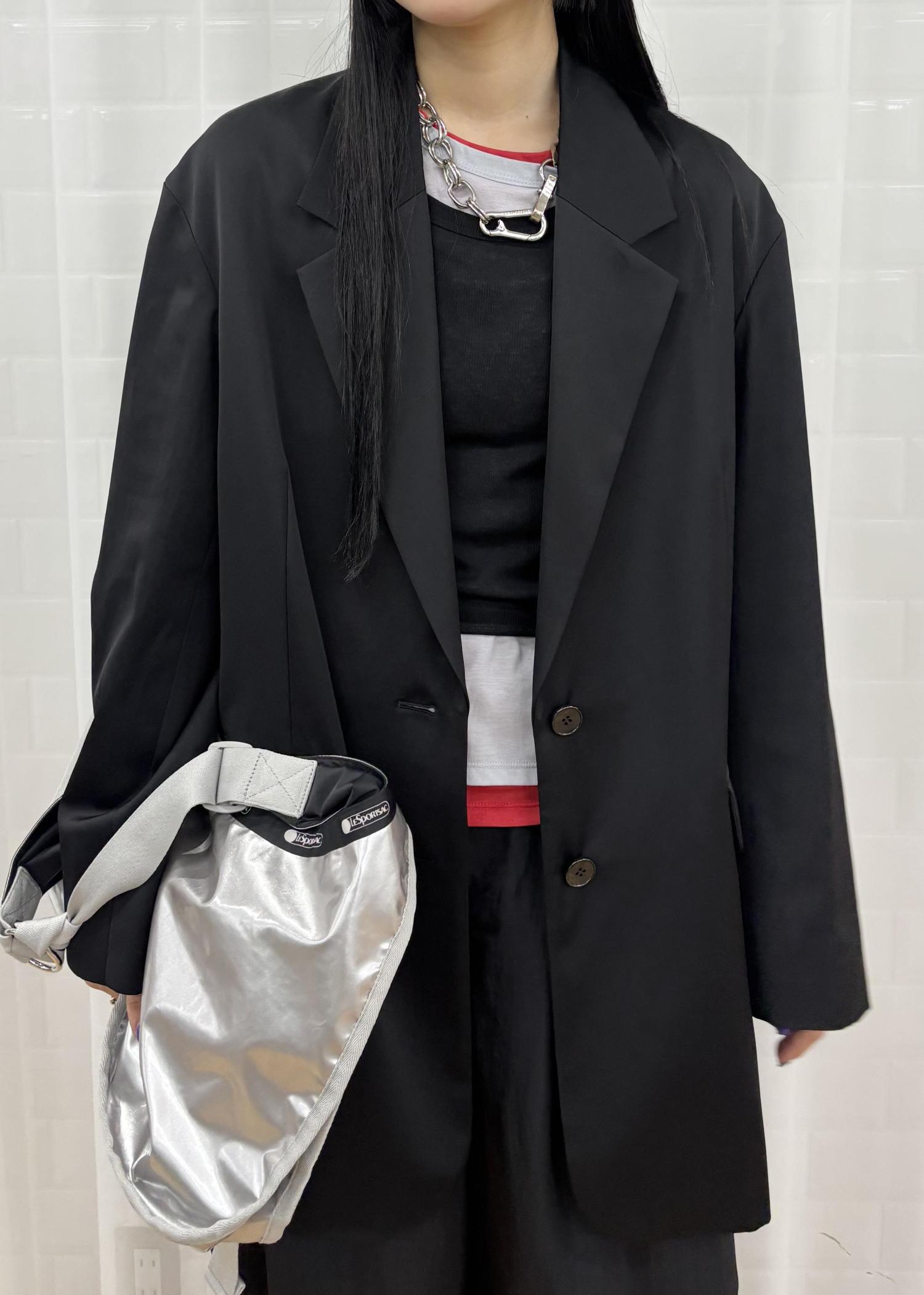 ストンと綺麗に落ちるジャケットで、オンオフ兼用で使いやすいデザイン。