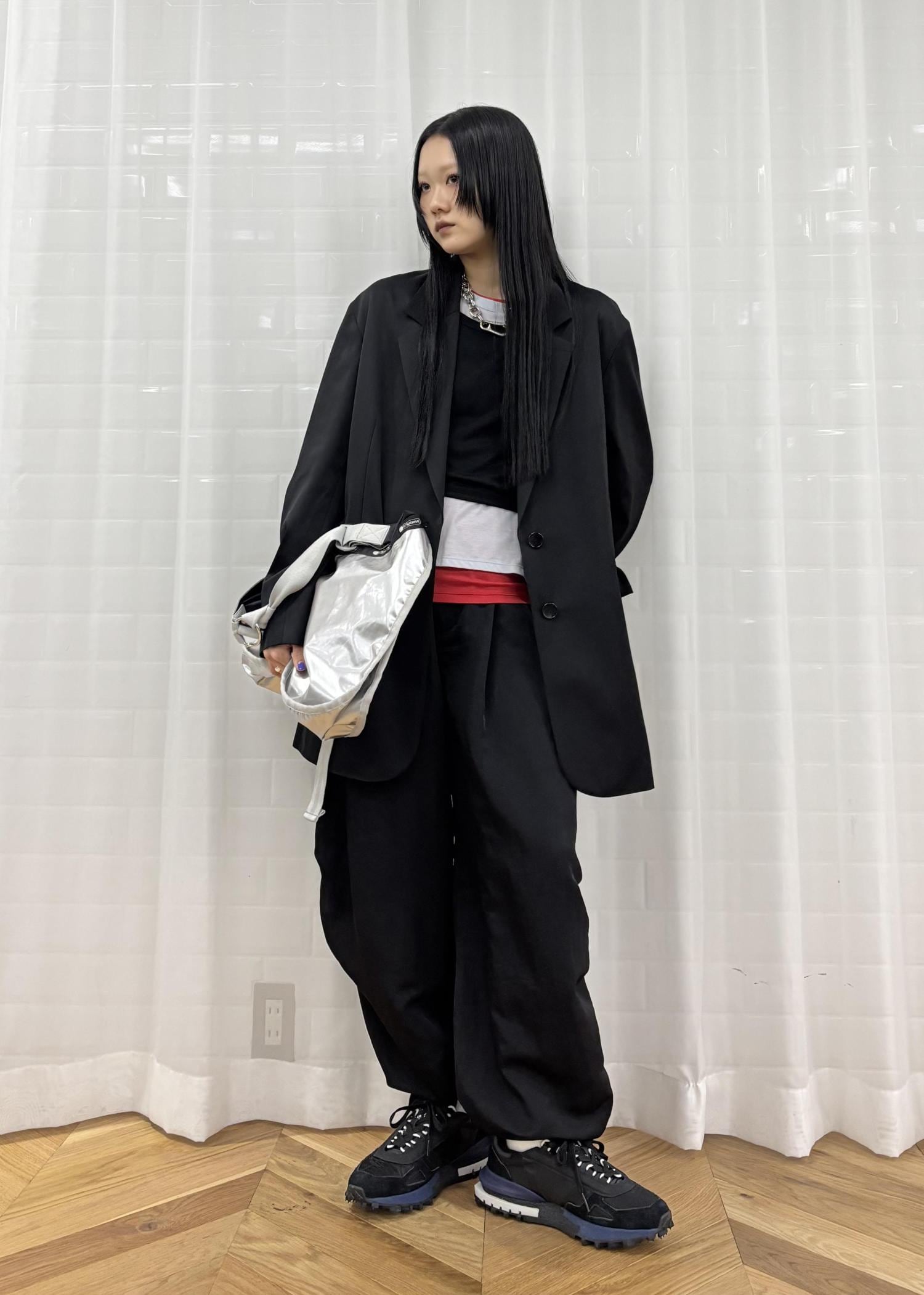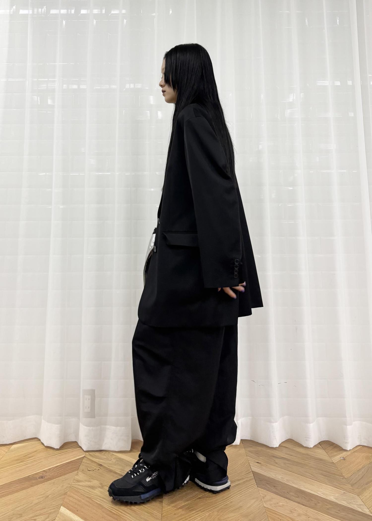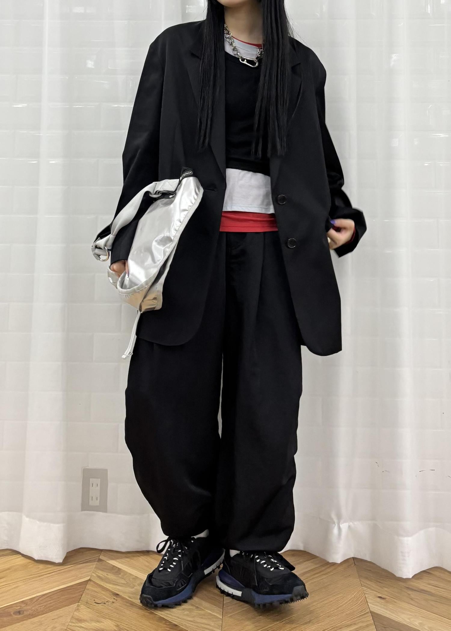 ストンと綺麗に落ちるジャケットで、オンオフ兼用で使いやすいデザイン。
