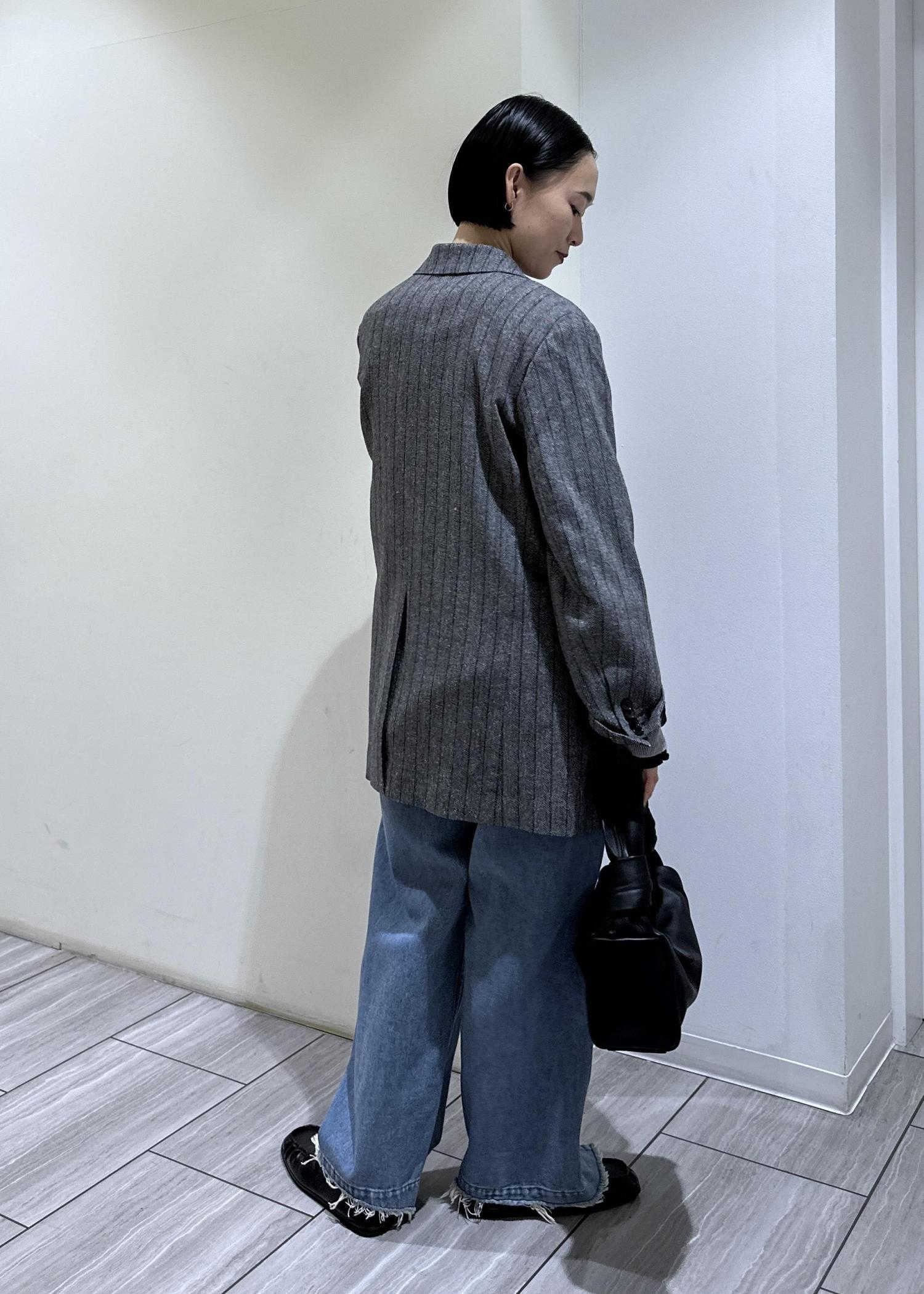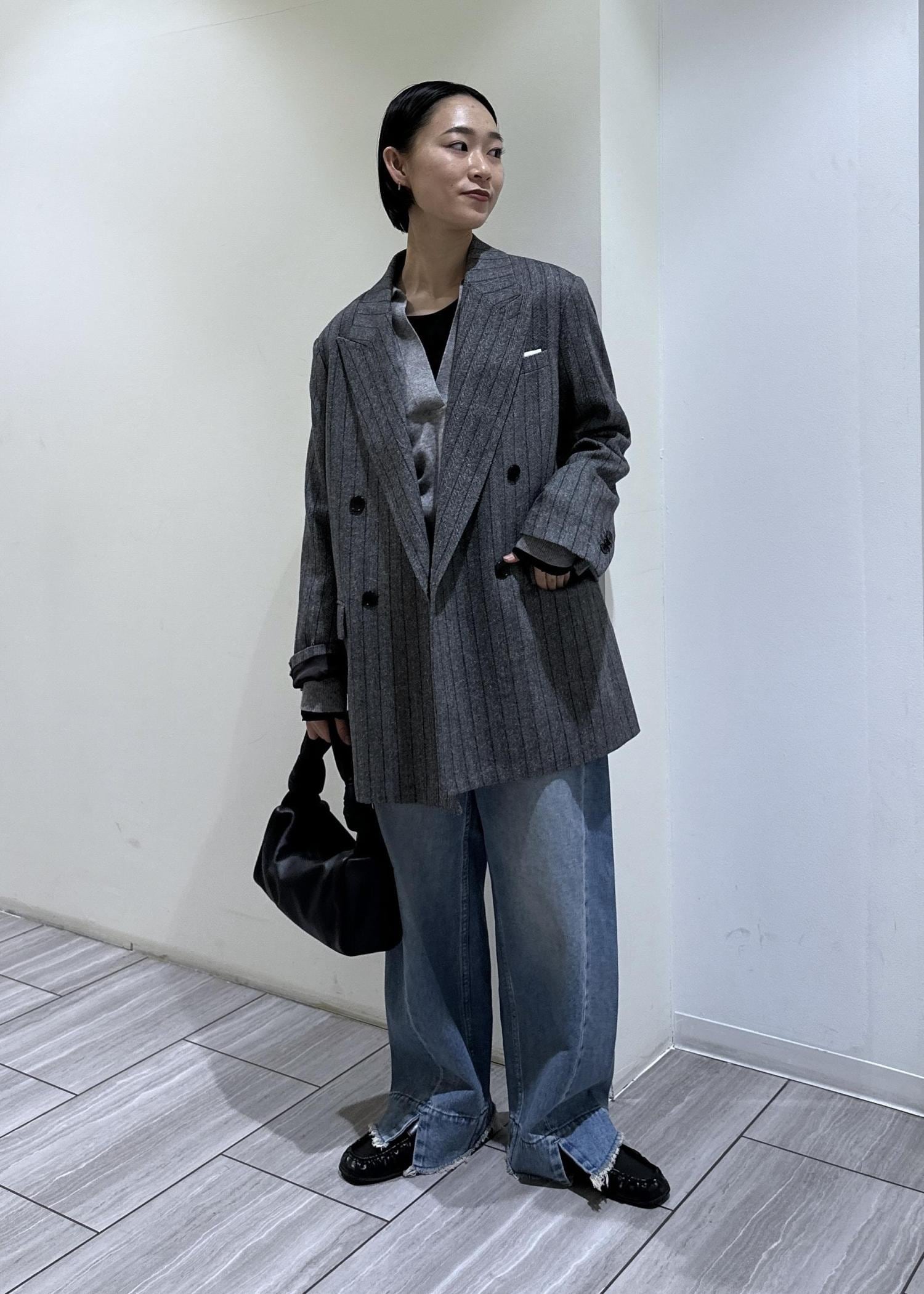 ADAM ET ROPÉ FEMMEダブルブレストツイード&チェックジャケットグレー / 36¥40,700レビューゆったりとしたサイズのジャケット。お尻はすっぽり隠れる丈になっているので、ヒップラインを拾わずご着用頂けます◯冬のアウターとしても大活躍しそうな素材です。