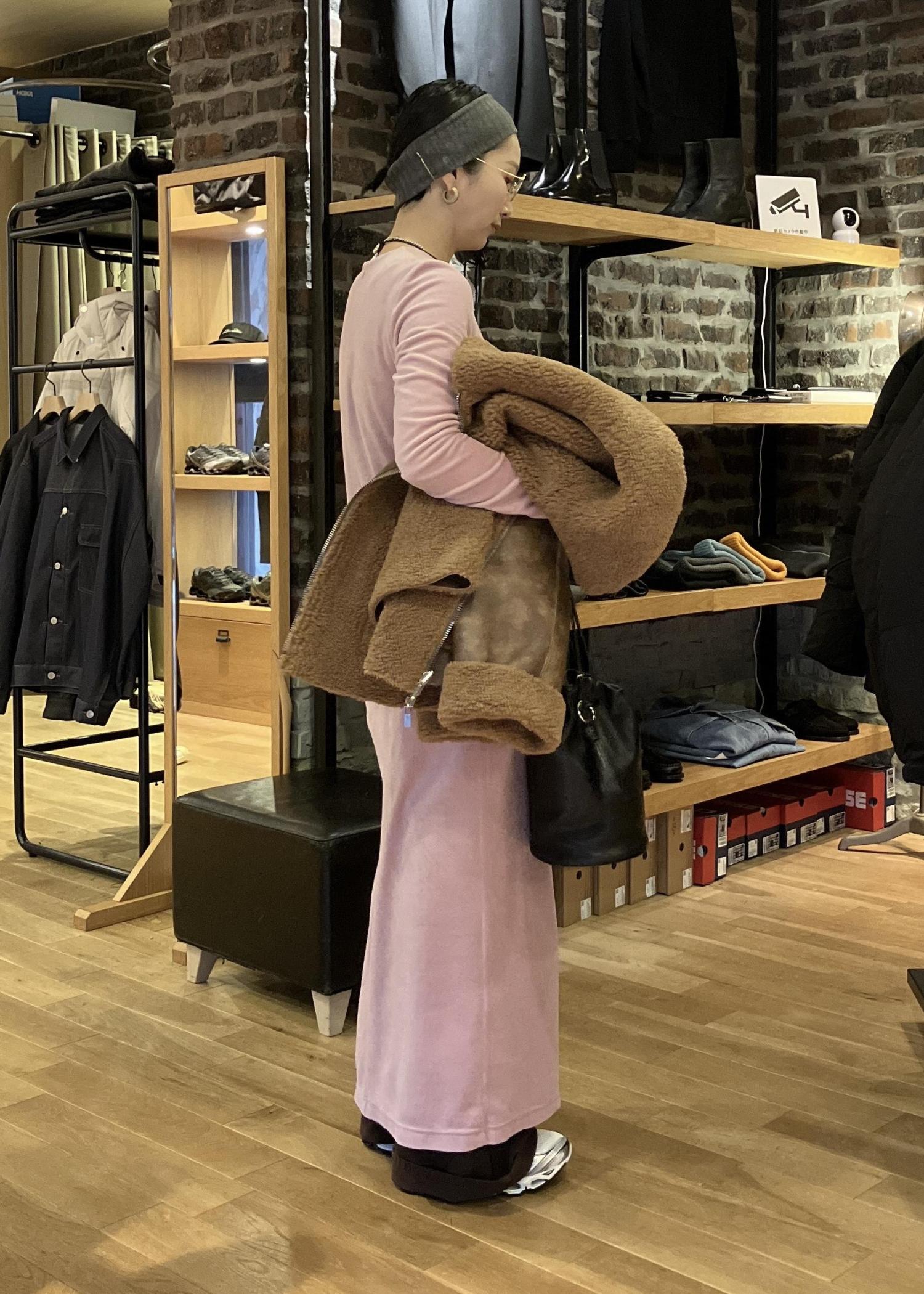 少し細身なので、上からニットやジャケット、スウェットなどを重ねてイメージを変化させて着れますよ♡