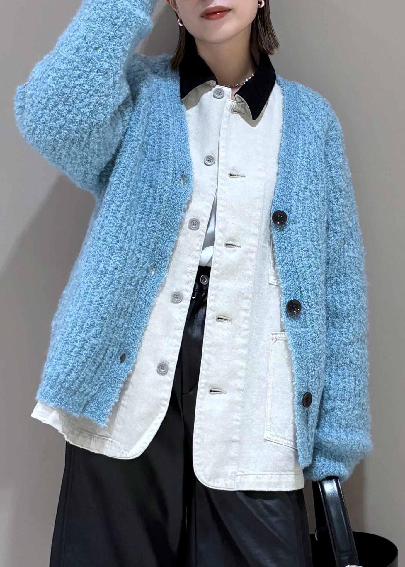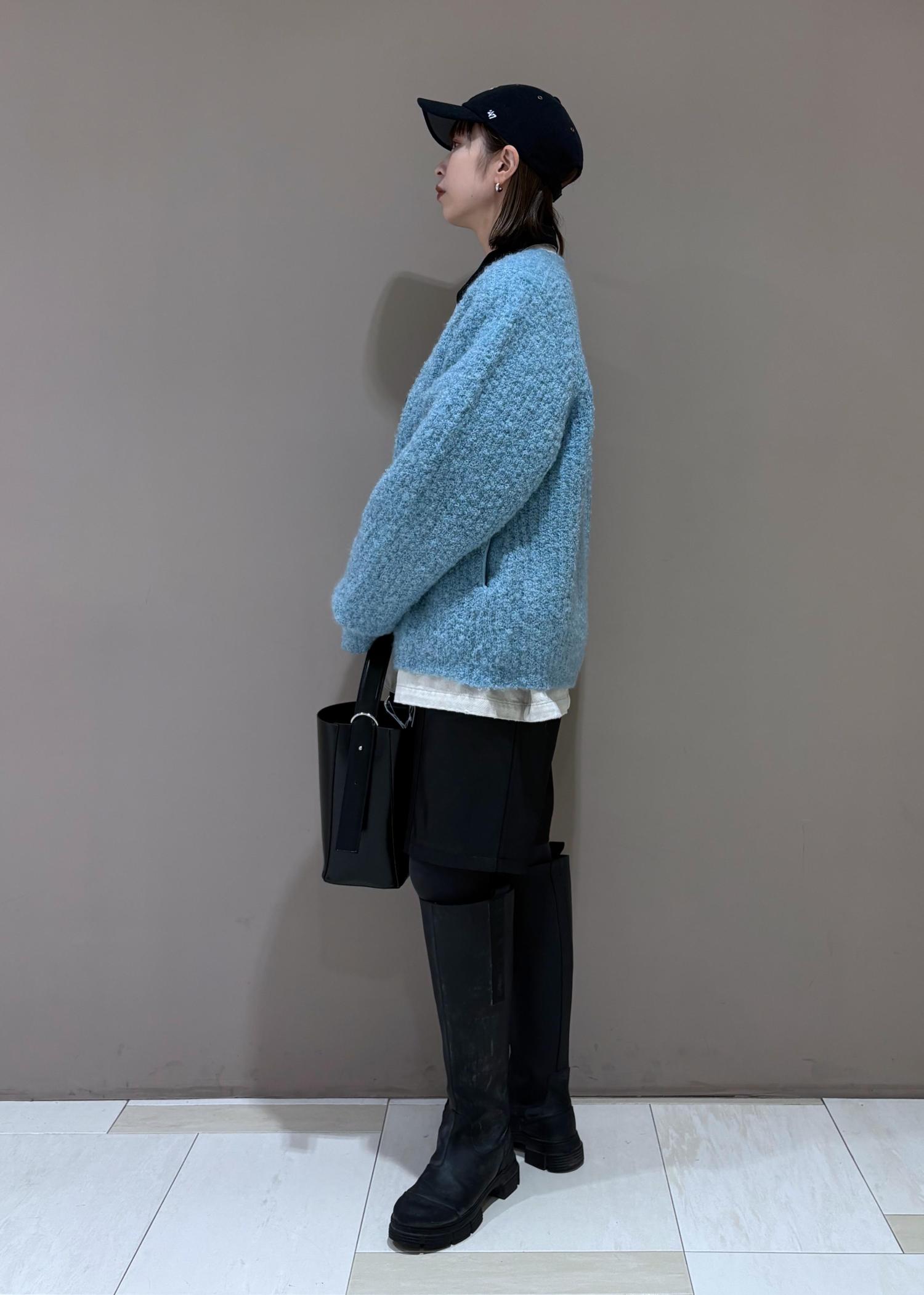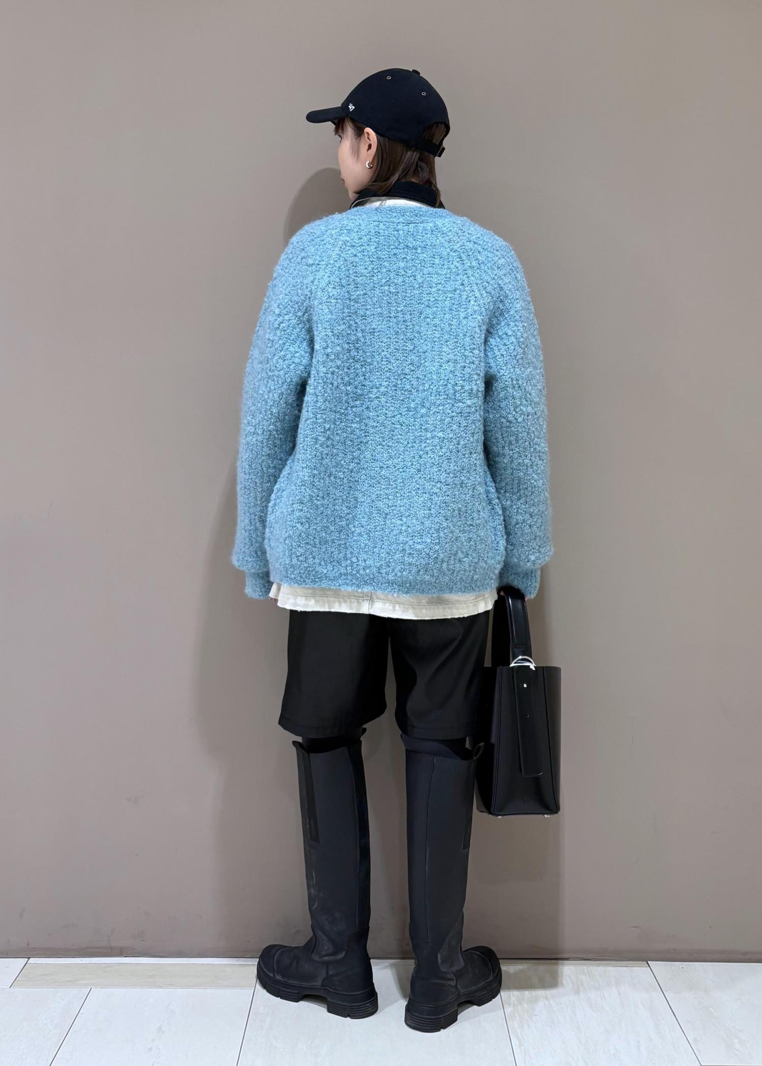 ADAM ET ROPÉ FEMMEモヘヤウールニットカーディガンブルゾンサックス / F¥31,900レビュー162cm、フリーサイズ着用。