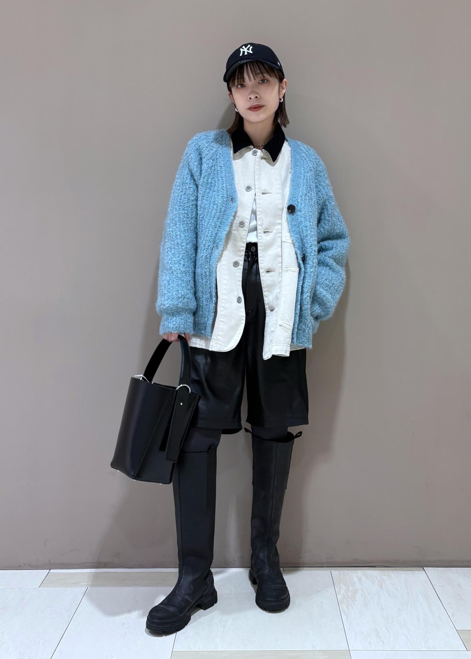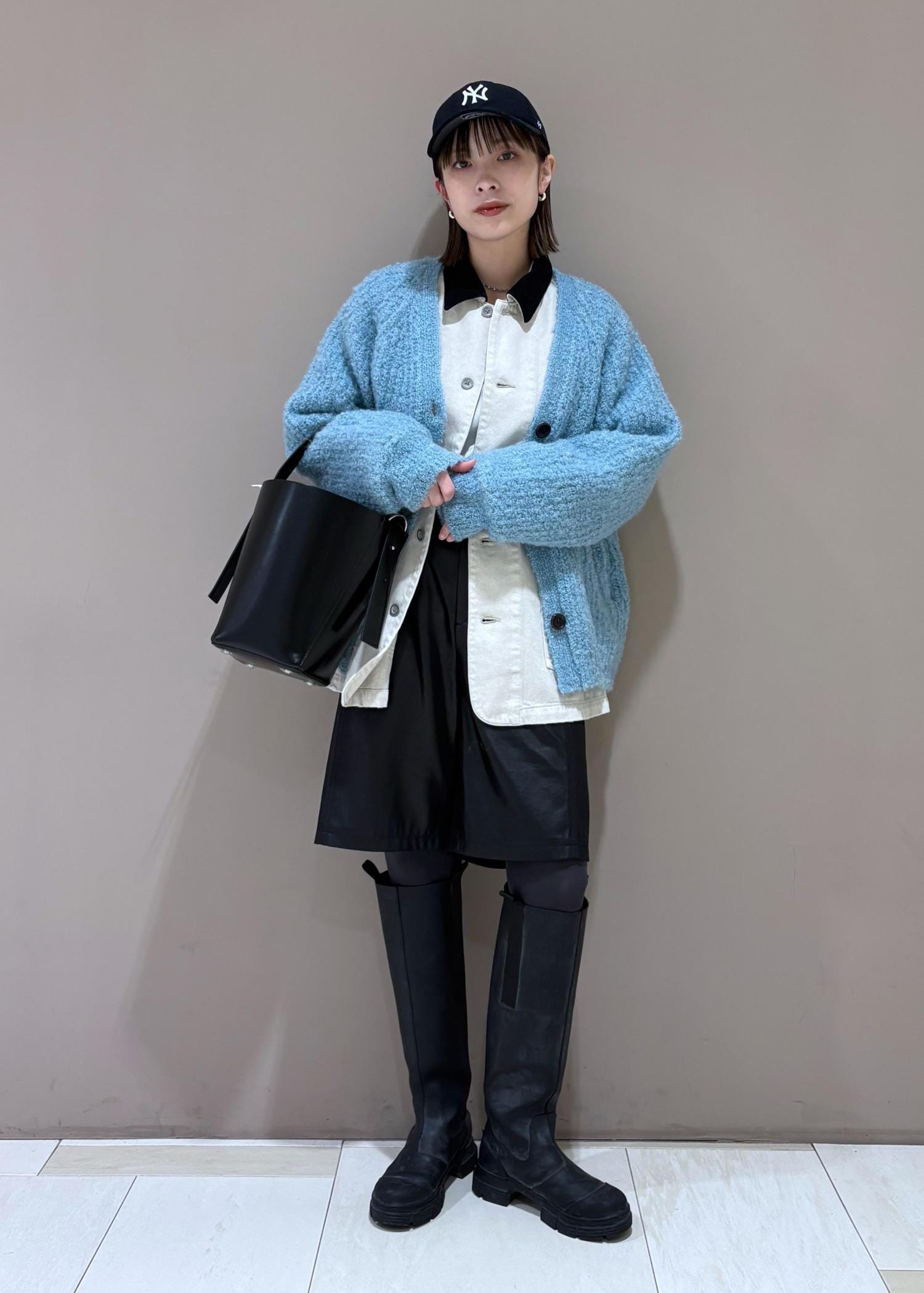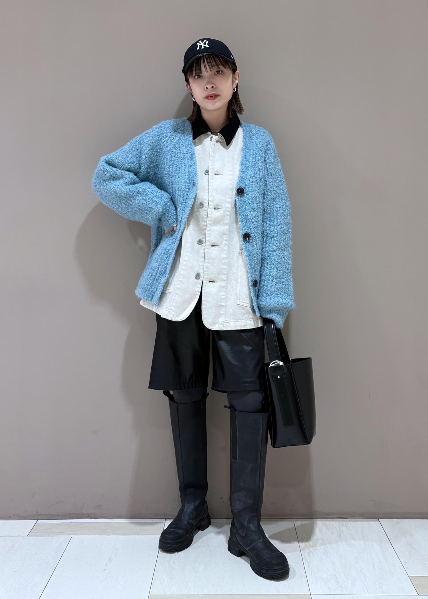 ADAM ET ROPÉ FEMMEモヘヤウールニットカーディガンブルゾンサックス / F¥31,900レビュー162cm、フリーサイズ着用。