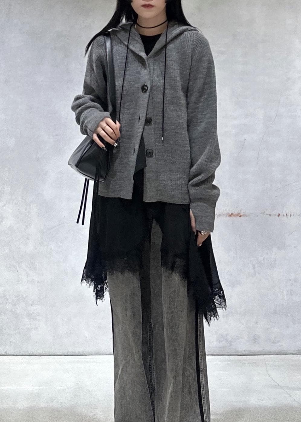イタリアンウールフーディーカーディガンは春や秋は羽織りとして、今の時期は上からアウターを着ても可愛く着用できます♡