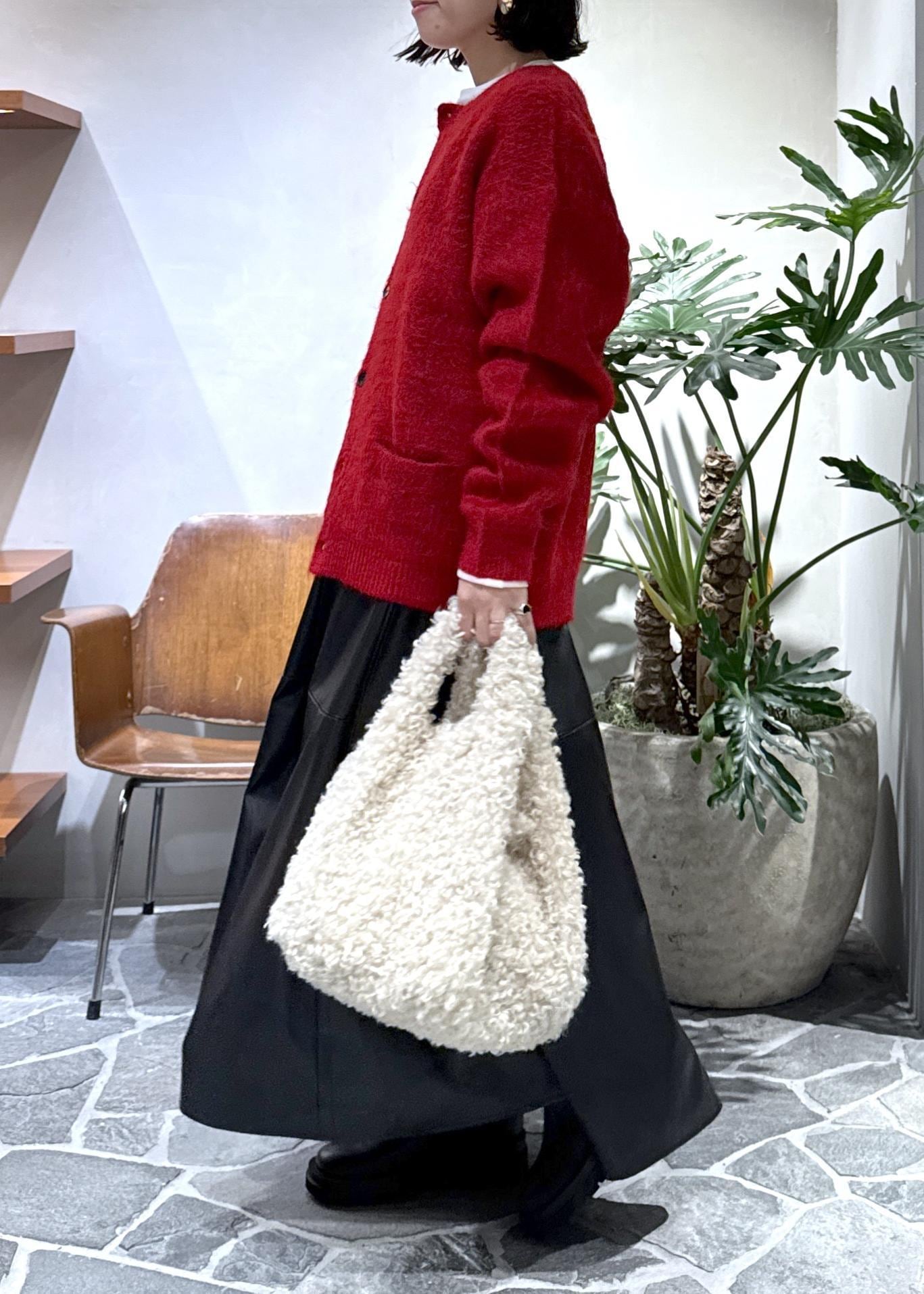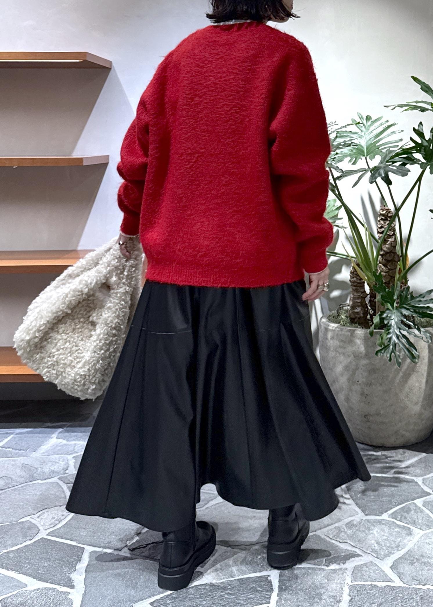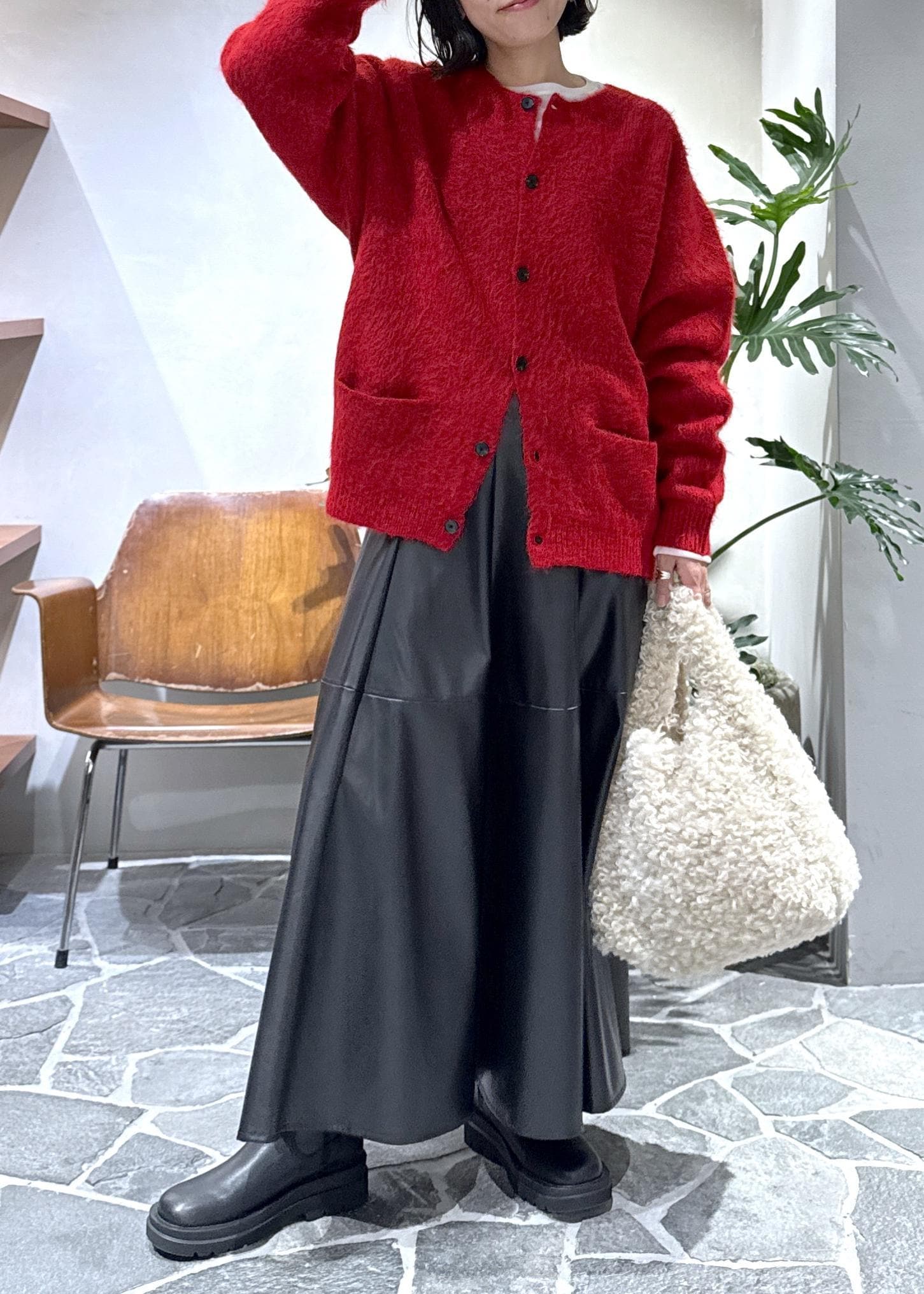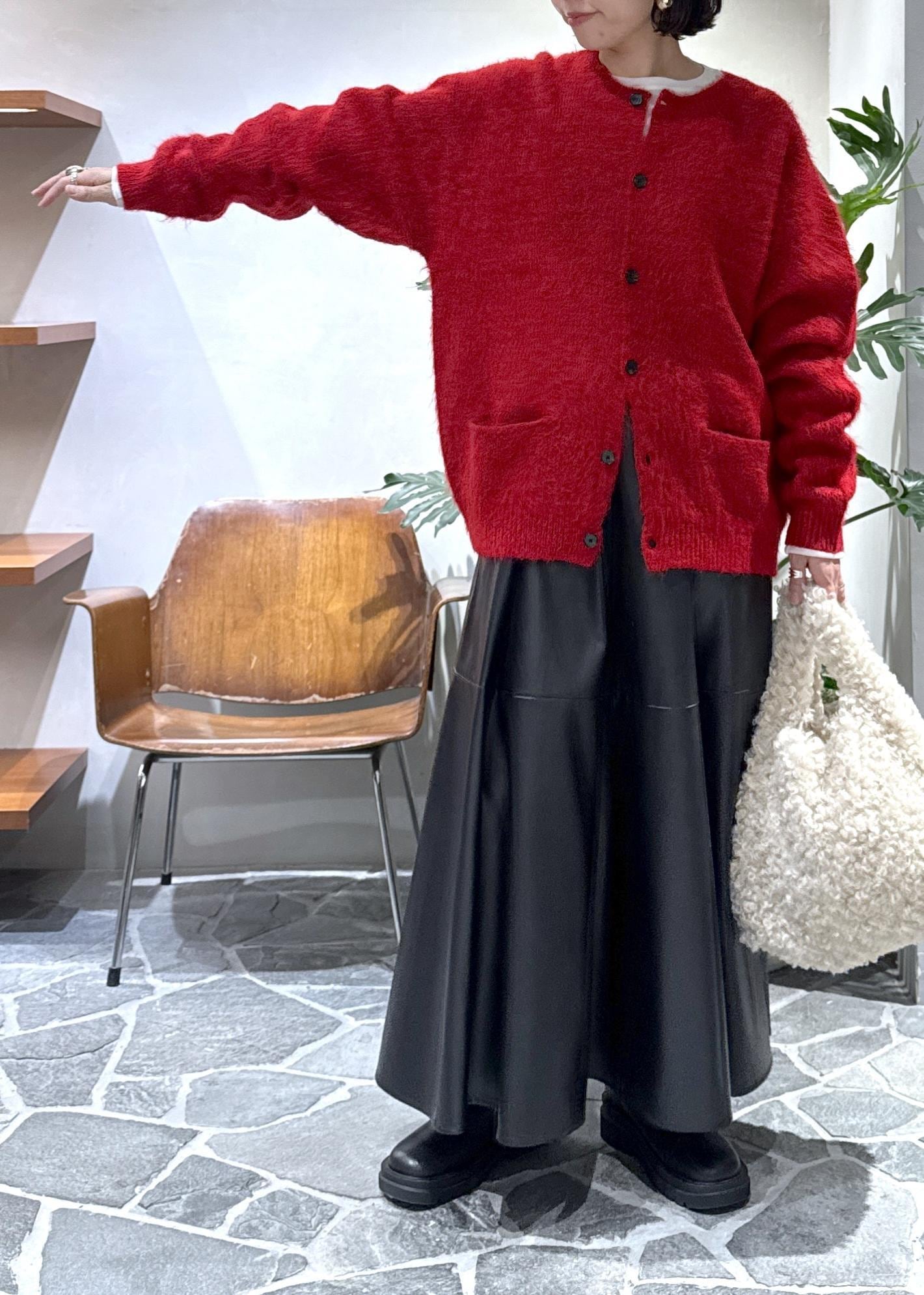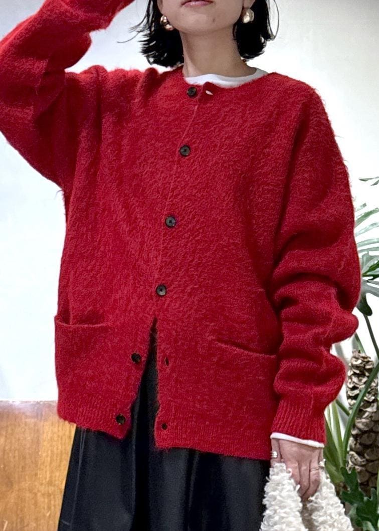 綺麗な赤が可愛いモヘヤ素材のカーディガンです。