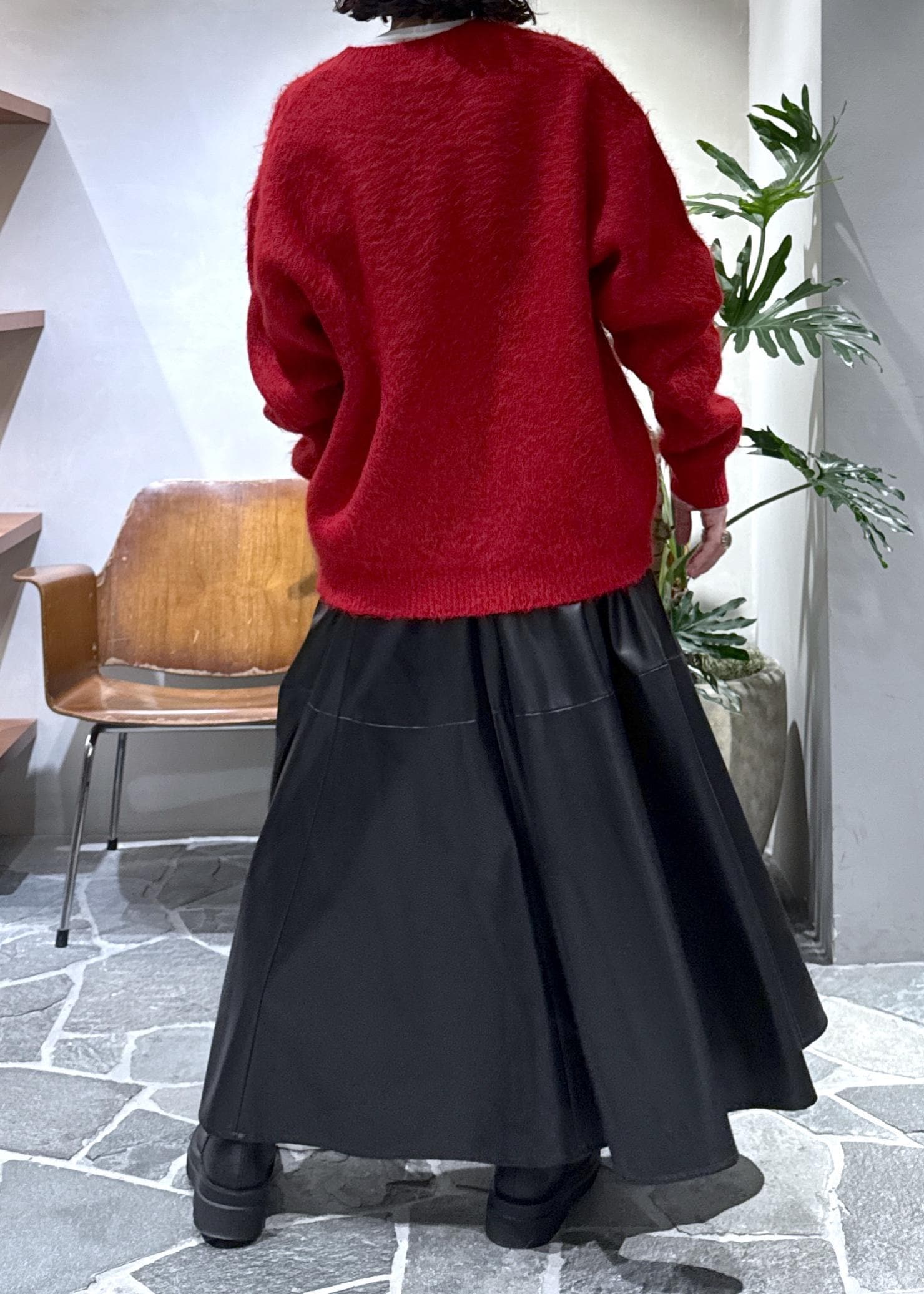 ADAM ET ROPÉ FEMMEシンセティックレザーフレアスカートブラック / 36¥24,200レビュー腰回りはスッキリしているので、トップスを上にかけてもシルエットを潰さずに着用頂けます。