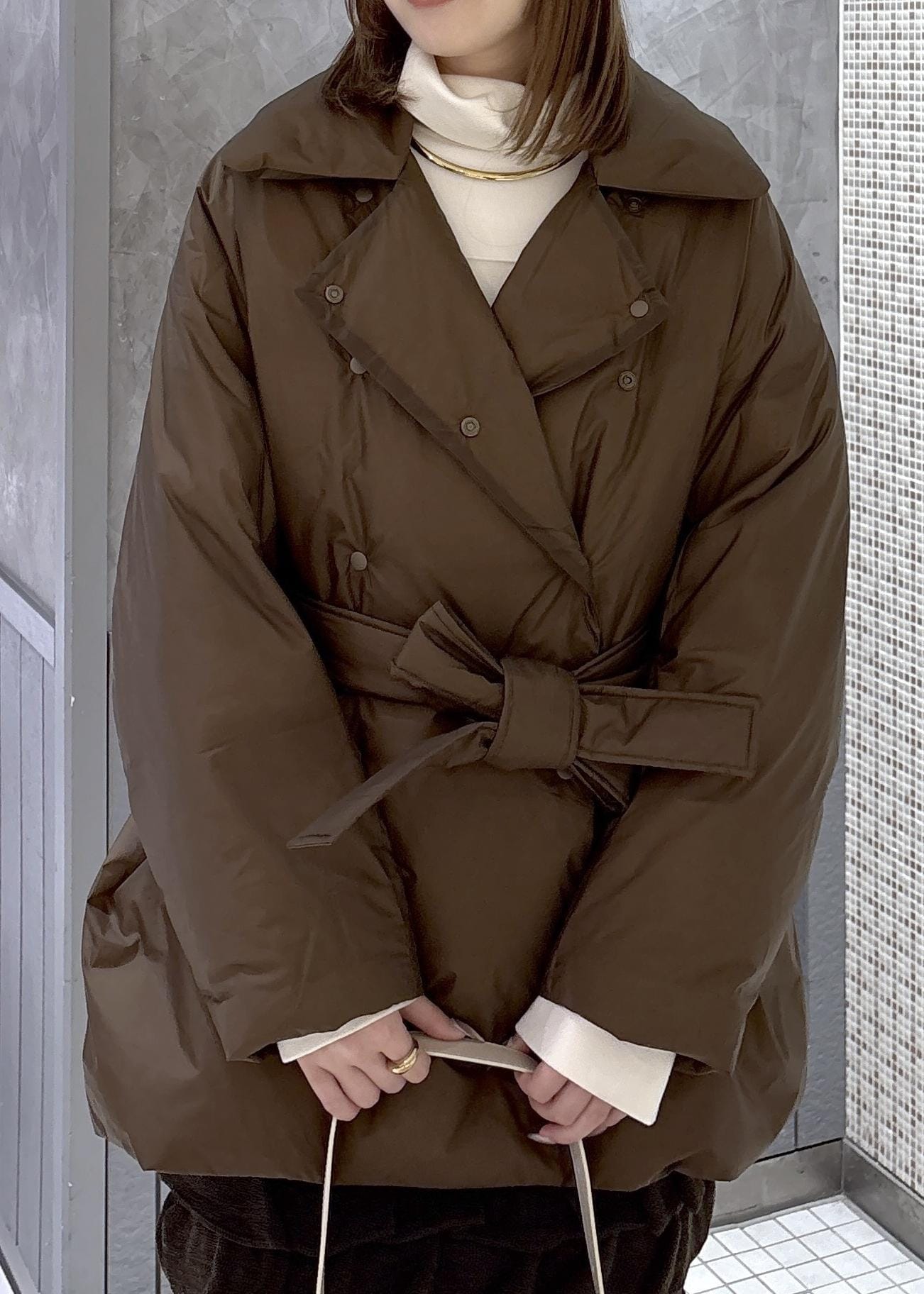 ウエストマークができ綺麗目にもカジュアルにも変えられるアウターです。