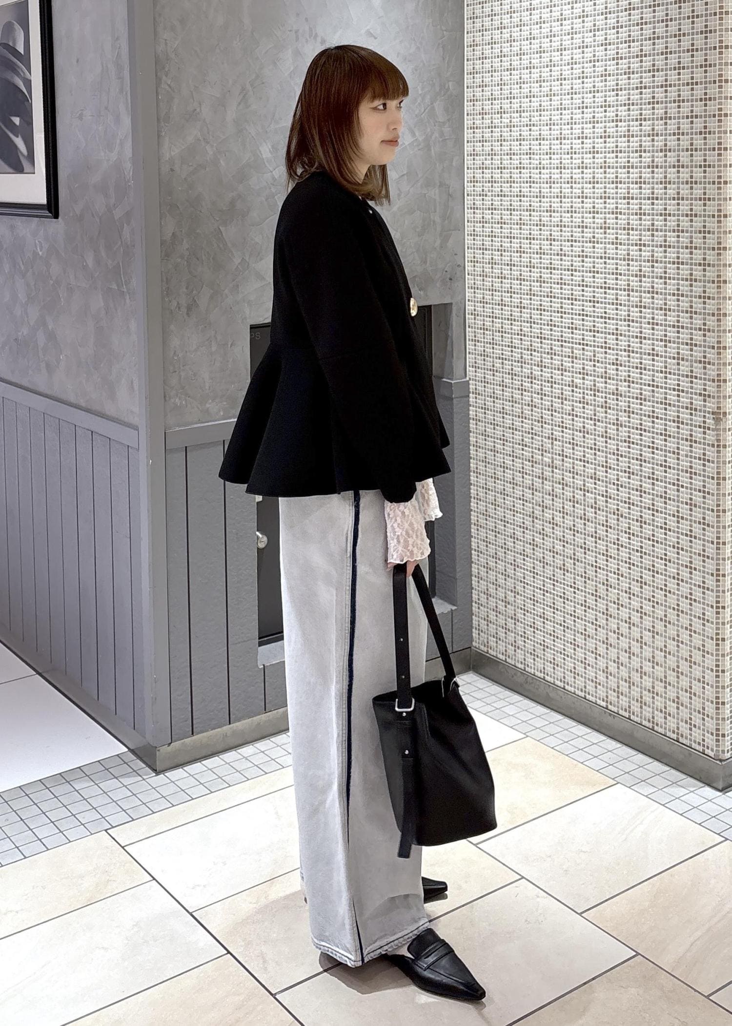 EMOELLE【EMOELLE】・【サステナブル】ドレスデニムパンツサックス / 38¥22,000レビューかなり太めのパンツです。ウエストの黒い部分が綺麗見えしてくれます