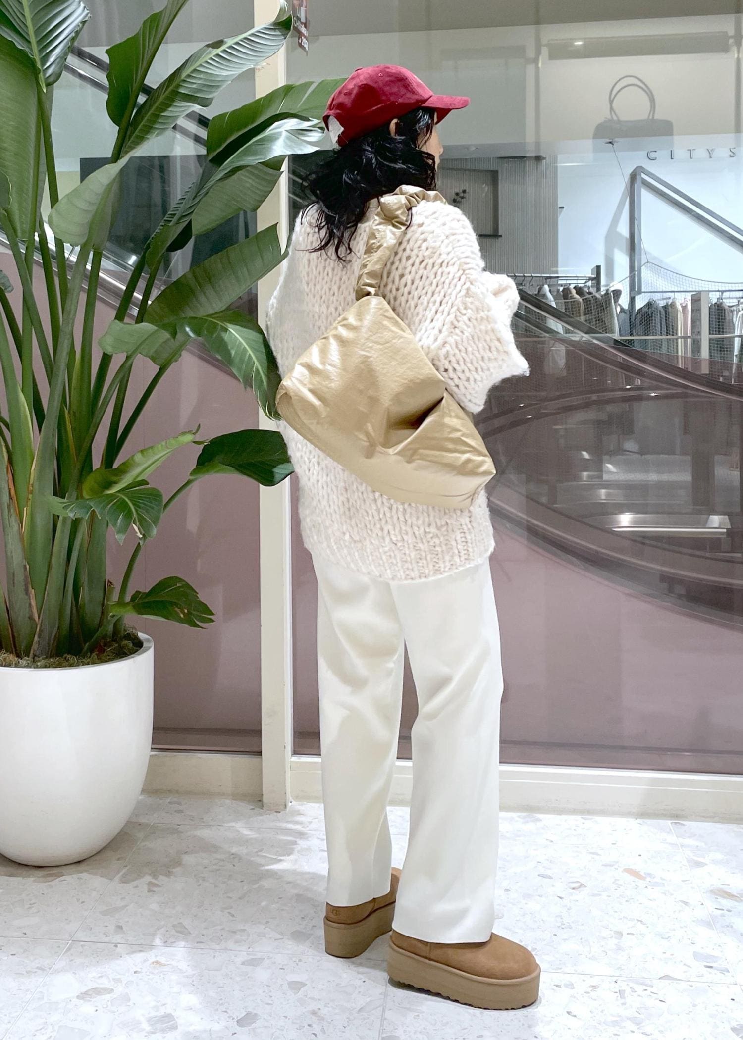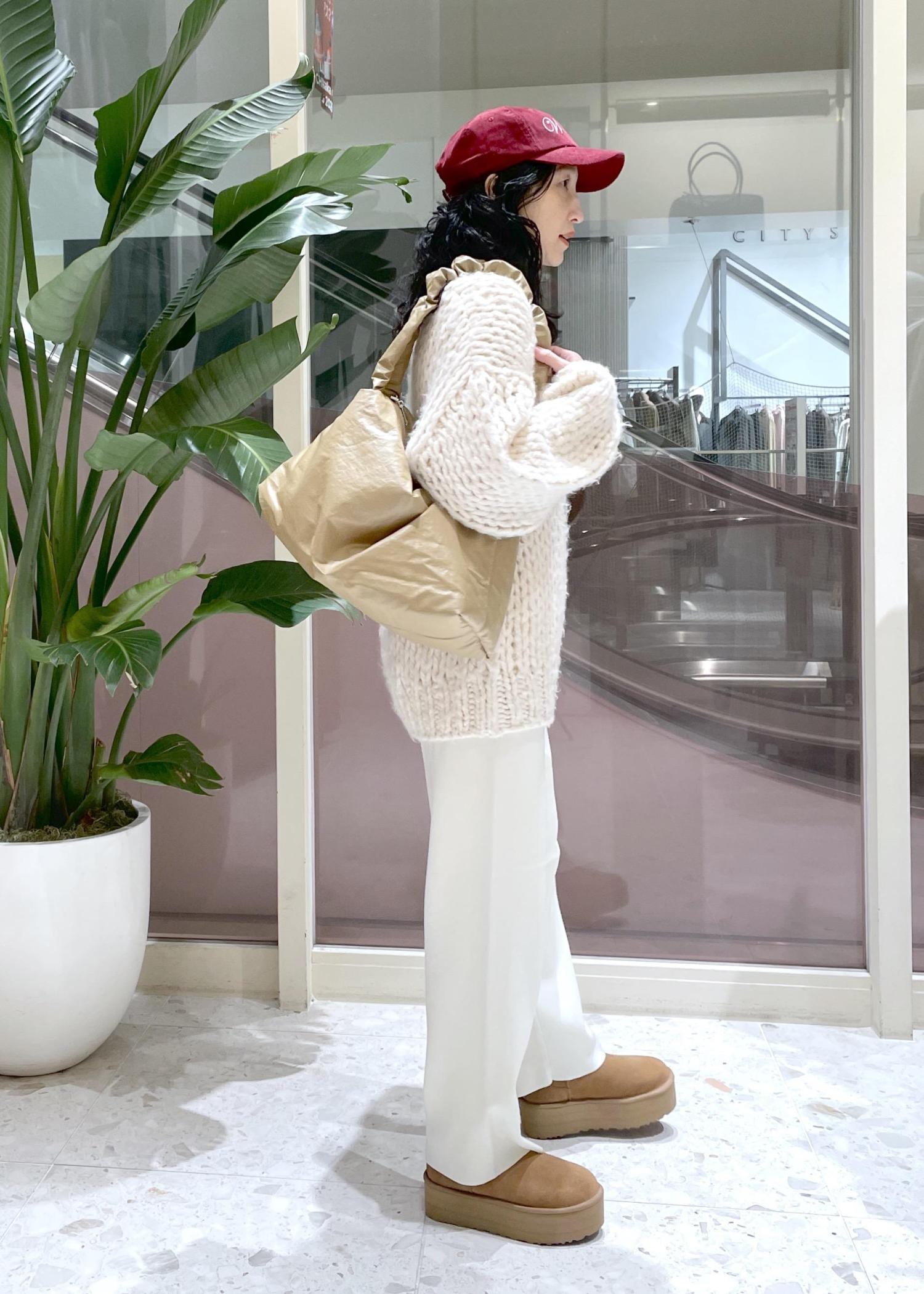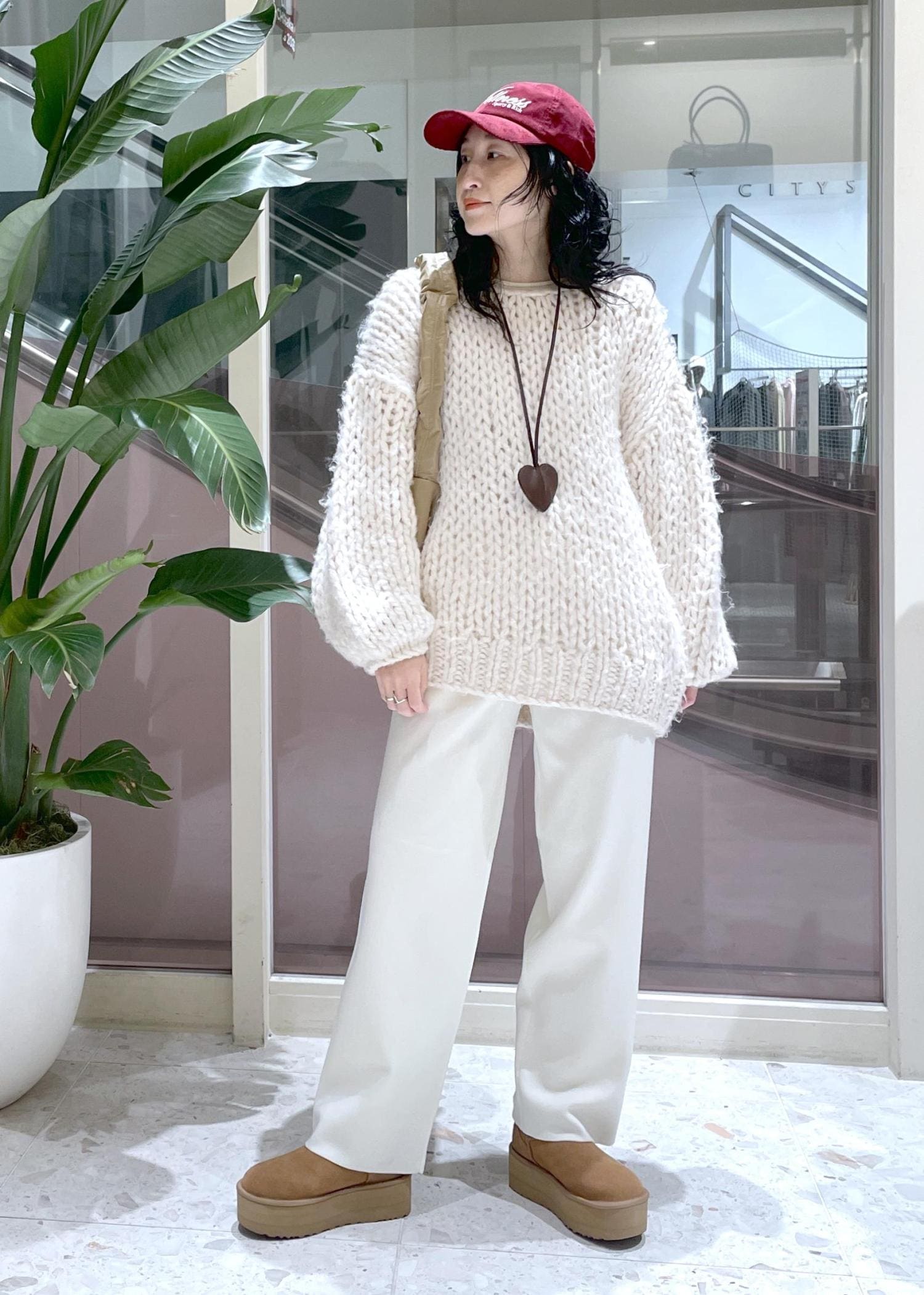 リラックス感のあるニット素材で、カジュアルに合わせてみました。