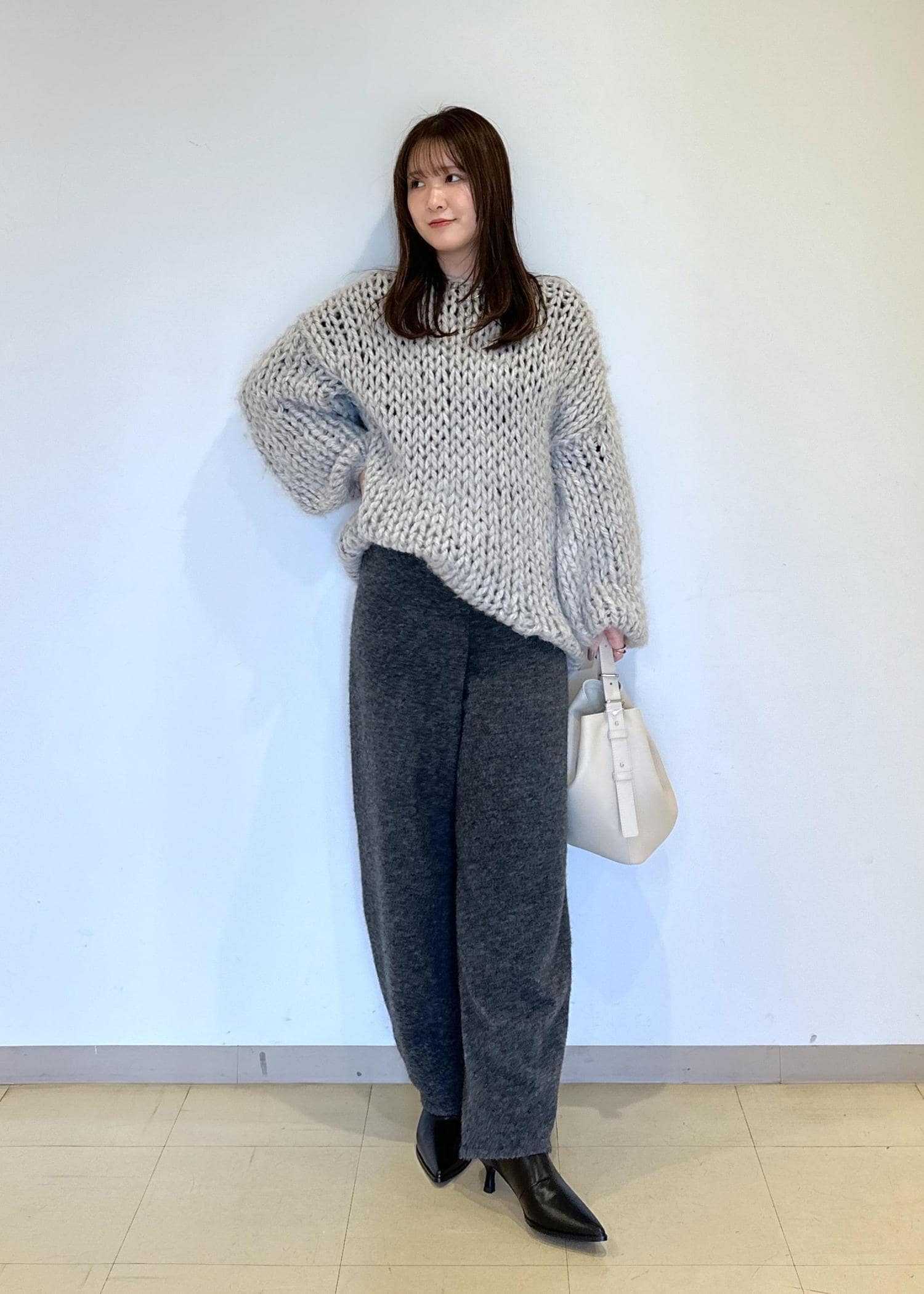 ADAM ET ROPÉ FEMMELINEAPIU ヤクMIXリラックスパンツチャコール / 36¥29,700レビューヤクのニットパンツ。とっても履きやすくてビックリしました!竹は少し長めだったのでヒールを合わせました:)ヒールなら問題なく履けます〜