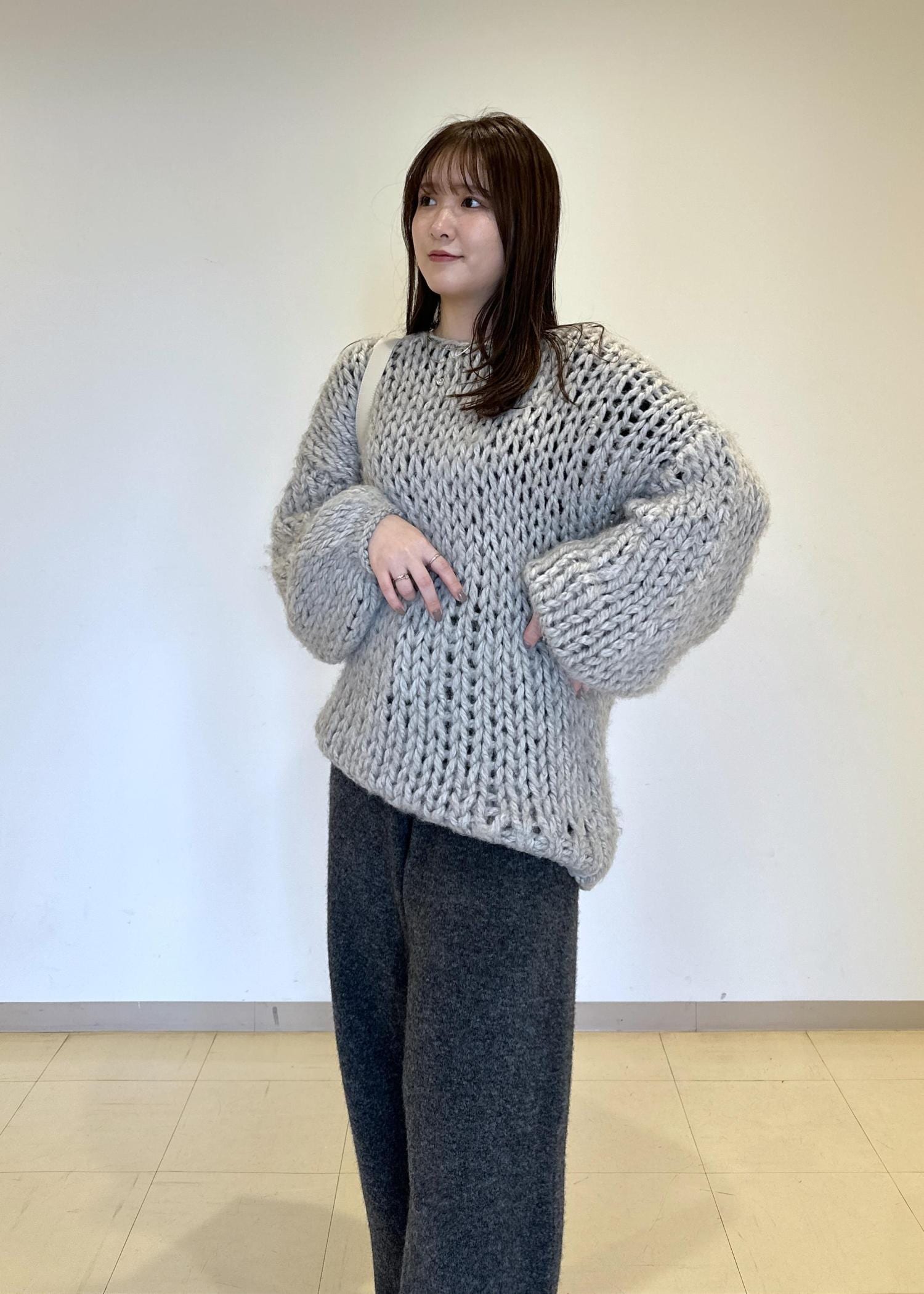 EMOELLE【EMOELLE】ローゲージニットプルオーバーグレー系 / F¥28,600レビューローゲージがとっても可愛いニット。袖も裾もたっぽりとしていて抜け感がでてくれます。